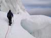 Våknet opp til godvær på Monte Rosa-Hütte. Planen i dag var i utgangspunktet en rusletur oppover mot Monte Rosa massivet til 4000 moh, men bena var tunge så vi valgte heller en bretur til den oppsprukne Zwillings Gletscher. Gikk først ned til Grenxgletscher og krysset denne og fulgte brelabyrinten opp til Zwillings. Ifølge bøker skal det nesten være umulig å krysse Zwillings Gletscher sommerstid på grunn av enorme tverrsprekker, men med to Petzl Quark isøkser, stegjern og godt mot fant vi en rute. Fint med litt nysnø oppå blåisen slik at vi fant veien tilbake når vi skulle snu. Utrolig varmt i dag, sola reflekterte mye varme i nysnøen så det var som å gå i en bakerovn. Et lite øyeblikk vurderte vi å gå så langt opp mot Felikjoch som mulig, skaret mellom Castor og Liskamm Westgipfel. Om vi fant en vei opp dit kunne vi neste natt starte på en evt todagerstur over Liskammtraversen. Men da kom opp på flaten rundt 3200 moh var det mer snø og snøbruene var pill råtne. Etter å ha gått gjennom sprekker tre ganger på ett minutt var valget tatt om å snu. Uansett ble dette en fin og morsom dag på en av Alpenes mektigste isbreer. Turdata: 4t 30min 515 hm Flere bilder her: http://peakbook.org/tour/17197/Breleik+opp+til+Zwillings+Gletscher.html