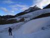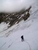 Bilder og kart her: http://peakbook.org/tour/17007/Regntung+tur+mot+Galenstock.html Dagen før, etter en lang og varm kjøretur gjennom Tyskland ankom vi Furkapass sent på kvelden. Vi hadde planer om en liten akklimatiseringstur til Galenstock neste dag. Overraskende nok kunne vi kjøre opp til en parkeringsplass ved Matten 150 meter høyere enn Tiefenbach. Betalte noen få sveitsiste franc for å stå her. Neste morgen startet vi å få opp den gode stien til Albert-Heim-Hütte. Møtte hyttevakta på firhjuling nedover stien, skulle vel sikkert hente forsyninger og materiell. Etter en snau time var vi oppe ved hytta. Strengt tatt hadde vi ikke trengt å gå helt opp dit, men vi ville ta en titt. Jeg benyttet også anledningen til å ta en tur på toalettet. Spurte en nepaleser om ruta til Galenstock, og han pekte og forklarte hvor det var vanlig å gå. Vi fulgte en fin sti i moreneområdet bort mot Tiefengletscher. Et sted svingte stien til høyre, men vi valgte å heller gå bort til bretunga, så vi dro mot venstre. I ettertid fant vi ut at stien som svingte til høyre nok gikk opp til breen, men kom innpå ved pkt 2765. Plutselig så vi et lite pelsdyr som sprang over stien og gjemte seg i ura. Aner ikke hva det var, men artig å se litt dyreliv. Ved breen tok vi på oss stegjerna og spaserte oppover. Det hadde så smått begynt å regne og det dannet seg små smeltebekker i breen som var litt gufne å gå i. Ved 2700 moh måtte vi over noen bresprekker, ved å gå litt på kryss og tvers kom vi over uten større problemer. Vi hadde fin blåis oppover, så vi behøvde ikke tau med det første. Lenger oppe kom vi til slutt inn i tåkeheimen. Begge merket en svak trøtthet. Vet ikke om det var pga lite søvn i natt eller høyden. Da vi passerte 3000 moh dreide vi i u-sving mot venstre og traverserte i den bratte breflanken øst for Galenstock. Her var det mer snø og til dels store og lumske sprekker, så vi valgte å ta på oss tau. Nå begynte det å regne noe voldsomt, og ovenfra begynte det å rase ned løse steiner. Ikke moro! Tåka var tett, og det var vanskelig å finne den korrekte oppgangen til sadelen nord for Galenstock. Jeg hadde trodd at det var en snørenne opp dit, men det viste seg å være svært løs klatring. Etter litt leting og prøving på å klatre opp valgte vi å blåse i toppen. Fjellet var meget glatt og råttent og det raste ovenfra på grunn av regnet. Den er dog gradert til AD, samme som Matterhorn via Hörnli-grat, så det var ingen skam å snu. Man skal jo kose seg på tur. Vi hadde jo kommet over 3300 moh, så litt akklimatisering hadde vi vel fått. Returen ble en våt og kald opplevelse. Jeg hadde bestemt meg for at kvelden skulle tilbringes på et tørt og varmt hostell. Buste ned breen og på en annen sti tilbake mot hovedstien ved hytta. Vel tilbake til bilen kastet vi de våte klærne i skiboksen, skrudde på full varme og kjørte ned til Brig der det ventet en McDonalds-middag. Nå var alpeturen godt i gang!