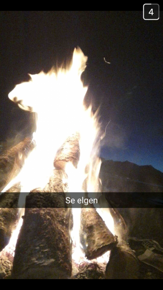 Bildet som to kompiser og jeg tok igår kveld: Flammene viser en elg. Dumt at det var i Snapchat og ikke vanlig kamera siden slike bilder er sjeldne.