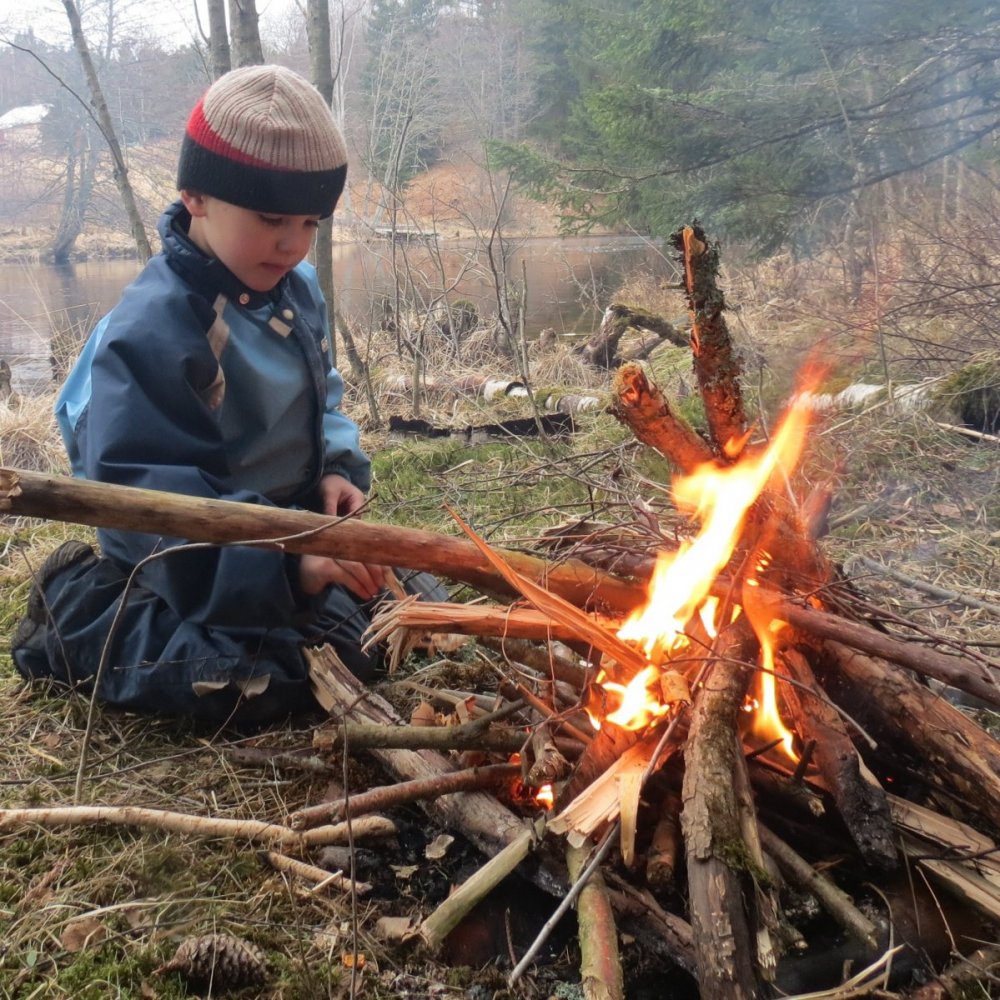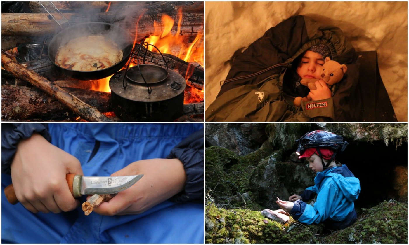 10 tips til en vellykket tur med barna Mine beste ideer Her har jeg samlet mine beste ideer til hva man kan gjøre for at turen blir vellykket sammen med barna. På de mange turer med barna har jeg lært en helt ny måte å være på tur. Før jeg fikk barn var jeg opptatt av å gå langt og få noen mil i beina. Barna er mer opptatt av hva der er mellom A og B og jeg har måtte lærer meg å senke tempoet. Barna er gode til å være i nuet og oppdager ofte mye spennende på deres vei. Et grunnprinsipp er å fokusere mindre på antall kilometer og mer på antall timer vi er ute. Tips nr. 1 Komme seg av sted i en fart Det kan noen gange være et tiltak å komme seg av sted. Derfor har jeg alltid en ferdigpakket dagstursekk klar. Det siste jeg gjør når jeg kommer hjem fra tur er å gjøre sekken klar for neste tur. Det eneste jeg da mangler er mat og drikke før vi er avsted igjen. Dette har jeg i sekken: Sitteunderlag Førstehjelppakke Fyrstikker + tennbriketter Knive til barna Sporboka, mineralboka og plantebok Kikkert Kamera Drikkeflaske Forstørrelsesglass Sejlgarn, 10 m tykt tau Lykt Bålkjedel Fryseposer (til å samle ting i) Kart og kompass Liten sag Øks Små esker til å samle insekter i kopp, tallerken og bestikk Tips nr. 2 10 fingrer Når vi er ute på tur spør ofte barna når vi er fremme og hvor lang der er igjen? Da kan man forklarer det på en enkelt måte som de lett forstår. Jeg deler inn dagsetappen i ti fingrer og så kan jeg for eksempel si «nå har vi gått 5 fingrer» altså er vi halvveis. Tips nr. 3 La barna få bryne seg Jeg prøver og la barna få gjøre mange av oppgavene på turen. Det er klart at alt går mye hurtigere hvis jeg gjør det selv og det kan være fristene og blande seg, men du verden som de vokser når de selv klarer det. Her er eksempel på oppgaver de kan lære seg. Orientere med kart og kompass Fyrer opp bål Lage mat på bål eller primus Sanke ved og felle trær Sette opp telt, hengekøyer og gapahuk Hugge ved med øks Tips nr. 4 Sove godt og varmt gjennom vinternatten Vinterstid bruker vi 2 tresesongers soveposer til barna av typen Helsport Alta 170cm. Med lue og «hals» holder du deg god og varm gjennom hele natten Pass på å ikke ha for mye klær på, da blir du bare svett og kald. Ett sett ullundertøy er passende på høsten og et sett med ull og fleece på vinteren. Hell varmt vann (ikke kokende) på en metalflaske med skrulokk og ta med ned i soveposen, den vil hjelpe til med å holde deg varm. Hvis du bare har et tynt liggeunderlag kan du legge dine klær under hoften og ryggen, det hjelper på komforten. Hvis du sover lett om natten og ikke er vant med å sove ute, kan det være godt å ha med ørepropper. Tips nr. 5 Overraskelse På overnatting har vi alltid med en overraskelse eller to. Det kan for eksempel være: ballonger, stjerneskudd, fakler, kinderegg, sjokolade, såpebobler eller et spill. Her er det bar fantasien som setter grenser. Tips nr.5 Wallkie talkie I fjor kjøpte jeg 2 radioer. Da kan barna dra ut på egne turer og jeg kan holde kontakt med dem. Thomas på 6 år sov ute alene i 27 minus. Da hadde vi god kontakt med han underveis på turen hans. På ski er ofte storebror Martin litt hurtigere end tvillingene. Så da suser han av gårder alene og jeg kan kalde han opp når vi skal samles til lunsj. Tips nr.6 Vannlek med en ekstra vri Vann er definitivt barnas element og de elsker å plaske i vanndammer. Da bruker jeg å tape rundt beina med sølvtape og vupti da har barna vaders. Gjett om det er populært! Tips nr.7 Naturfotograf La barna stå for fotografering. Dere kan eventuelt kjøpe et vanntett kamera som tåler en støyt. De fleste merker har spesielle barnekameraer som er enkle i bruk. Når dere kommer hjem fra turen kan dere printe ut bildene og bruke dem i barnas turdagbok. Tips nr.8 Ha med venner Vi har hatt stor glede av å ha med barnas venner og det er stor stas og dele opplevelsene sammen. Noen gange har vi også vært flere familier avsted, det er utrolig hyggelig og sitte så mange rundt bålet på kvelden. Tips nr. 9 Faktabøker Vi har alltid med faktabøker på tur. for det hender ofte at vi undre oss sammen over et eller annet og da kan barna selv finne svar i bøkene. Vi lærer hele tiden noe nytt. Tips nr.10 Fra stua til villmarka med barna i 4 trinn. Lyst å prøve krefter med villmarka sammen med barna. Her er 4 trinn som kan hjelpe dere av sted på en fin måte for store og små. Trinn 1: Dere lister dere rundt i huset på jakt med en pinne i hånden. Dere skyter en pute, flår av skinnet, og slår leir i stuen med telt og sovepose. Bål kan lages med et par sykkellykter og litt ved. Trinn 2: Dere drar igjen på jakt, men denne gang er det ute i hagen. Dere slår opp telt, tenner grillen eller bålet, og steiker pølsedyret dere har fanget. Gjett om barna synes det er gøy!? Trinn 3: Nå bruker dere erfaringer fra trinn 1 og 2 til å pakke bilen med alt dere trenger, og kjører til en fin plass i skogen. Her setter dere opp leiren. Det gir trygghet og være i nærheten av bilen, og det er enkelt å pakke når man ikke skal bære så langt. Hvis dere har glemt noe, kan dere lett kjøre en tur hjem. Trinn 4: Med all erfaring fra tidligere trinn er dere nå klare for «villmarka». Pakk sekkene og dra til en plass dere kjenner fra før. Disse trinnene gir både barn og voksne en god trygghet og mestringsfølelse. Det gjelder å starte langsomt, og heller øke i takt med de erfaringer dere får underveis. I denne filmen "vinterskogen kaller" for du gode tips og ideer til vintertur med barn. Se den gjerne sammen barna så også de kan bli inspirert