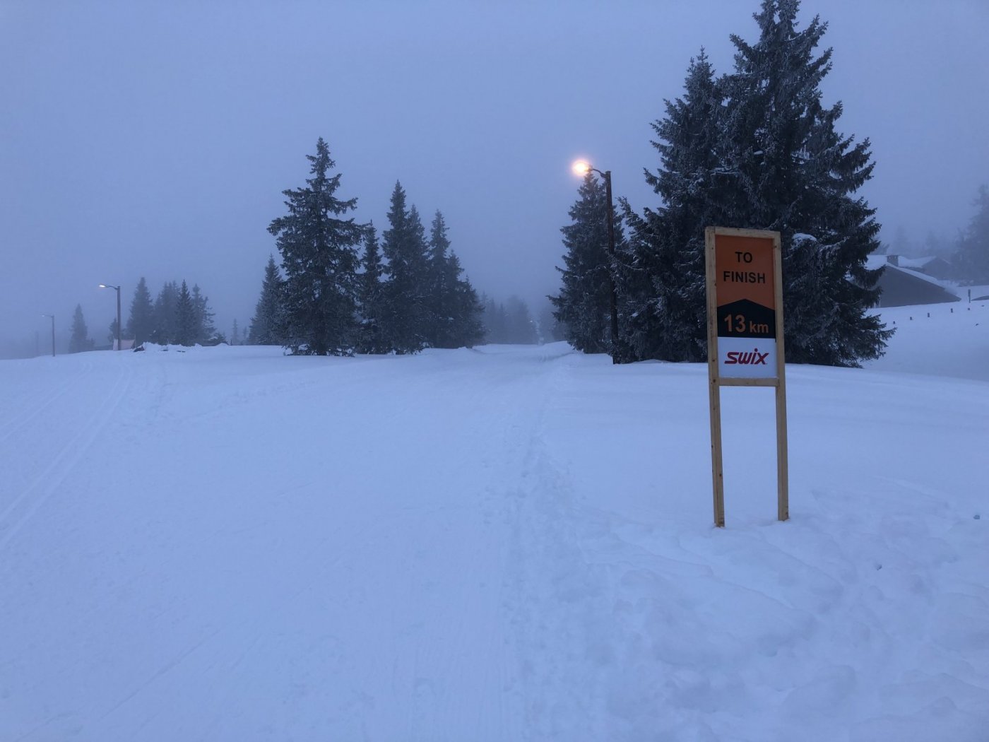 Ja, eller jeg mener nei, jeg skal ikke gå Birken i morgen. Men siden jeg er på Sjusjøen så tok jeg meg en tur i løypa etter at snøen for de siste 2 uker var fjernet.