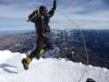 Nicolas hadde kommet fra lavlandet i Canada (Winnipeg) til høylandet her i Bolivia for bare 4-5 dager siden, og sammen planla vi å klatre den franske ruten (AD+) på Huayna Potosi. Litt vel optimistisk bestemte vi oss for å gjøre dette som en "dagstur" fra La Paz, for å redusere logistikken ettersom vi da ikke trengte å pakke/frakte noe utstyr for overnatting i fjellet. Vi fikk et turistbyrå i La Paz til å arrangere en taxi for oss. Vi ble enige om at taxi'en skulle plukke oss opp kl 22:00 (Jul 31) fra hotellet i La Paz og hente oss neste dag ved Zongo Pass klokken 12:00 (Aug 1). Prisen for denne taxi-pakken var 300 Bolivianos (230 norske kroner, dvs 115 kr på hver av oss). Forøvrig hadde vi ingen andre kostnader med å klatre en 6000m topp !!!! Taxi-turen opp til Zongo Pass (4800m) tok vel en time i nattemørket, og med hodelykter tente, begynte vi vandringen kl 23:15. Det gikk ganske raskt oppover stien til hytta (5200m), som vi ankom kl 0:35. Der viste det seg å være fire små grupper som overnattet, alle med hver sin lokale guide. Noen av disse var nå allerede stått opp og var igang med å gjøre seg klare. Vi ble værende i hytta i omlag 1.5 time for å spise vår medbrakte niste, samt få oss litt hvile før vi begynte på neste etappe oppover. Vi kom oss igang igjen like etter et par andre grupper. Bare 50 meter bortenfor hytta bar det ut på breen og vi måtte derfor ta på oss stegjern og binde oss inn i tau. Det var veldig gode spor på breen og dessuten fulgte vi etter lysene fra de andre gruppene, så rutevalg på breen var aldri noe problem. Etterhvert fant vi ut at de andre beveget seg altfor sakte, så et stykke oppe på breen bestemte vi oss for å passere dem. Da vi nærmet oss 5500m begynte vi å se etter eventuelle spor som ledet mot den franske ruten. Men vi så ingen tegn til dette, dessuten var det stummende mørkt og ingen måne. Vi prøvde å tråkke oss i vei utenfor normalruten ved et par anledninger, men vi sank umiddelbart ned i snøen nesten til knærne. Nei, nå fristet det veldig lite å forlate hovedtråkket, og enda mindre å bevege oss inn i ukjent breterreng. For utenfor rekkevidden av våre begrensede hodelykter, så vi nemlig ikke konturene av noe som helst i den måneløse natten, og derfor ville det bli vanskelig å finne en linje over breen som ledet til den franske ruten i sørøst veggen. Derfor begynte vi etterhvert å innse realitetene, og at det var greiest å holde seg til normalruten. Ettersom vi nå hadde endret rutevalg, fryktet vi at vi kom til å nå toppen før soloppgang med den kulden det vil måtte medføre. Kl 04:00 og i ca 5600m høyde innså jeg altfor sent at det ble for kaldt med en tynn fleece og goretex jakke utenpå. Jeg skiftet derfor om til dunjakke, men i denne prosessen eksponerte jeg mine fingrer altfor lenge i kulden, bl.a med å rette opp i en lekkasje jeg hadde fra en vannflaske i sekken. En del av innholdet i sekken var blitt vått, og fingrene mine kom i kontakt med denne frosne væsken. Etter bortimot 15 minutter med omkledning inkl tilhørende komplikasjoner var vi igang igjen, men fingrene mine var blitt ubehagelig numne og jeg hadde ikke noe varme igjen i kroppen. Den neste halvtimen var fryktelig for mitt vedkommende, spesielt smertene som kom når blodet begynte å gjenvinne tapt terreng. Jeg kjente denne voldsomme smerten som strålte til langt oppover skuldrene i begge armer. Disse omstendighetene resulterte i at jeg fikk en forbigående periode av slapphet (null energi). Med to isøkser hver, strevde vi oss opp et kort men meget bratt parti som topper ut på en markert rygg i ca 5700m høyde. Det bratteste punktet var bortimot 70 grader, men her var det hogd inn gode trappetrinn i snøen. Dette partiet ble etterfulgt av slakkere partier oppover breen som fortsatte i det endeløse. Mens jeg følte meg betraktelig bedre, merket jeg at det begynte å gå veldig mye tregere med Nicolas nå. Tempoet ble redusert kraftig, taudraget fra Nicolas økte og ropene om å ta pauser ble frekvente. Men vi hadde godt med tid, så jeg sa til Nicolas at han bare kunne ta den tiden han trengte. Dessuten var jeg god og varm innenfor dunjakken, så jeg hadde ingen problemer med å vente. Soloppgangen uteble, det var for mye skyer i horisonten til det. Da vi etterhvert nådde toppryggen tittet jeg på klokken, og kunne overraskende konstatere at den allerede var blitt 07:30. Fremfor oss hadde vi en kvass rygg som ledet mot toppen. Denne relativt korte ryggen tok evigheter ettersom Nicolas trengte en del pauser. Egentlig var han mer utslitt (tom for energi) enn han var høydesyk. Jeg var imponert over at han i det hele tatt hadde kommet seg så høyt etter bare 4-5 dager i La Paz inkludert en bestigning av Pequeno Alpamayo (5410m). De andre fire gruppene på fjellet derimot, var det ikke noe tegn til. Vi fant senere ut at alle disse hadde snudd, og det selv om de hadde hatt en mye kortere dag enn oss (dvs de startet fra hytta, og hadde derfor 400 høydemetre mindre enn oss). Toppryggen så ganske eksponert ut nedenfra, men vi droppet litt ned på venstresiden og unngikk dermed både kraftig vind samt den meget eksponerte is/snø-flanken på høyresiden. Vi ankom et flatt parti på snø-eggen ca kl 08:00 og fortsatte nærmest krypende i 5 minutter ut på en kort men veldig eksponert snørygg for å nå det absolutt høyeste punktet på Huayna Potosi (6088m). På denne ustabile knivseggen av snø og is ble vi ikke sittende lenge, så vi returnerte raskt til det flatere toppunktet hvor vi kunne få tatt en ordentlig pause. Solen steg etterhvert over skyene i horisonten, og det ble straks en mer behagelig temperatur. Vi tilbrakte derfor over en time på toppen før vi begynte returen. Nicolas var naturlig nok utslitt så vi tok oss god tid nedover. Etter å ha unnagjort den eksponerte ryggen og det lange flatere partiet nedenfor, traff vi på en liten gruppe som var på vei oppover. Det viste seg at disse hadde startet 
