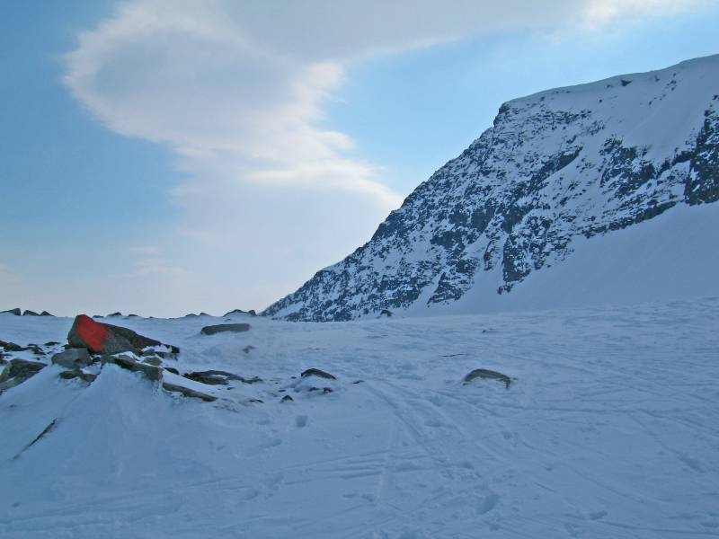 Det ble en vakker og verdig avslutning på skisesongen og april 2006. Startet fra Gråhaugen i 4 pluss i 9 tida, i strålende sol og deilig kramsnø med feller fra bilen, det var mange ivrige toppgåere idag. 2-3 timer senere kom følget til Svartvatnet, for matpåfyll og lengre/breiere feller, men vinden hadde økt og det hadde skyet mer på. 2 -3 timer senere var storparten nedkommet til breen igjen, da var jeg oppå breen og i ferd med å gå opp Snot-ryggen. Vel oppå ryggkanten var vinden økt voldsomt og jeg fikk østavind rett imot, iblandet et heftig snørokk. Så ingen mulighet for å gå til topps pr. ski, så med den største kraftanstrengelse slet jeg meg fram til toppunktet. Drøyt 5 meter fra varden sto østatrekken i kuling, jeg fikk alvorlig problem med ganglaget, og valgte en usikker retrett framfor å bli blåst utfor stupet i vest. Ned igjen gikk det greit, aldri har det vært mer moro å renne på raske feller på ganske våt kramsnø. Dog jeg ble noe sen, så siste stykket gjennom skogen ble en lidelse i søkkvåt gjennomslagsføre. 28 km, 5 timer opp, 4 ned, raske løpere brukte ikke mer enn 2-3 timer ned.