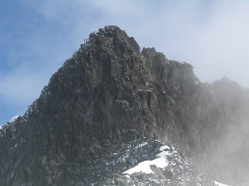 Nok en dag opprant med møkkavær og temperaturer på istidsnivå. Nok en dag måtte alle planer om Smørstabbtraversen legges på is og andre turmål finnes. Vi landet på Skagsnebbene. Ved Geitsetri fikk vi beskjed av den danske budeia om å holde oss unna geiteflokken hennes oppe i lia på andre siden, for de var, som hun sa det, så fæle til å følge etter folk, og da måtte hun evt. langt til fjells for å hente de. "Ja da", og "ikke noe problem" sa vi og durte i vei, Tor Erik som sistemann sørget samtidig for å glemme å lukke igjen grinda på brua før vi trasket opp den venstre av de gamle sidemorenene til Hurrbreen. I korte solgløtte lyste den skarpe Skagsnebbeggen over oss. Tor Erik var lysten på å gå eggen rett på, jeg klarte å styre min begeistring, så vi trasket inn i kant av Hurrbreen, mens vi beundret en bratt snøfonn som strakte seg helt opp til toppeggen. Sikkert fin for folk som er glade i bratt snø, men utglidning burde man ikke ha! Etterhvert som vi kom til et hjørne, omtrent 1600 moh, var det tydelig at bresprekkene strakk seg langt inn mot kanten så vi var litt ekstra forsiktige. Videre opp gikk vi på en mindre bre, som ikke er merket av i det hele tatt på kartet. Litt dumt, den har til og med noen sprekker! (Sammen med breen i siden på Rasletind Ø er dette den største breen i Jotunheimen som ikke er merket av på kartet som jeg har sett). Det gikk imidlertid greit opp til det laveste punktet på eggen mellom fremre og bakre Skagsnebbb. Tor Erik kløv over en liten nubb på eggen mens jeg rundet på snøen til høyre før vi var opp ved foten av hammeren på bakre Skagsnebb. Denne ser ganske markant ut på avstand og kan få noen og enhver til å lure på om det lar seg gjøre å komme opp her, men bortsett fra et (syntes jeg da) litt ekkelt opptak i starten (et opptak rundt grad 3 et par meter før det ble adskillig lettere). Tåka og de såpeglatte steinene gjorde det hele mer uhyggelig syntes nå jeg da. Veien videre var overraskende enkel ut i siden til venstre for hammeren og så opp på toppeggen. En fasinerende prekestol passerte vi på veien. Sett ovenfra ser det ut som om den heller ut mot stupet. Bort til fremre Skagsnebb var det en del småklyving og smale passasjer som krevde litt forsiktighet, men det gikk alt i alt veldig greit. Toppeggen har flere små toppunkt, og uansett hvilket man står på, så ser de andre høyest ut, men med høydemåler fikk vi bekreftet at det som er merket av på kartet, også er det høyeste. På det fremste toppunktet var det stupbratt utsikt ned mot Leirdalen og veien nedenfor hvor knøttsmå biler kjørte. Returen gikk samme vei og det tok ikke lange tida før vi var nede igjen ved brua. Her stod den danske budeias tyske mann og hilste oss velkommen og lurte på om det var vi som hadde glemt å lukke grinda siden alle geitene hadde "rømt over". Etter noen "Vet ikke", "husker ikke", fant han ut at det kanskje kunne ha vært noen andre og samtalen med den svært så pratsomme tyskeren dreide inn på hyggeligere temaer. I min nysgjerrighet lurer jeg på om det er noen som har gått rett opp eggen fra Leirdalen Er det også noen som har gått opp det bratte rennesystemet som kommer opp på toppeggen mellom de to toppunktene på 2003 moh eggen? Alt. opp omtrent ved foten av bakre Skagsnebb 2093 moh??