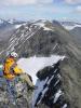 Forord Hvis du er av dem som liker å lese om behagelige turer og runde fjell, gå opp til venstre og trykk på "tilbake" i din nettleser, for dere andre, enjoy! Lørdag: Mortens Everest og min personlige lille bragd I boka til Morten blir Austanbotntind beskrevet som både Everest og morsom, luftig og spennende. Mange fra forumet har også skrytt voldsomt av denne toppen, ikke rart jeg gledet meg til denne dagen! Jeg bekymret meg ikke så mye for det luftige toppunktet, men gledet meg til det. Det jeg var bekymret for var Pinnakkelen på sørryggen. Turen ble lagt opp etter denne hindringen, og jeg ville ha det vanskeligste på vei opp, det betydde hovedtoppen først, så ned sørryggen og til slutt forhåpentligvis stå på S2 etter å ha passert denne pinnakkelen. Hovedtoppen i seg selv var faktsisk litt skuffende, hadde forventet at det var luftigere. Har da vært på luftigere toppvarder enn detta. Det som derimot ikke skuffet var veien til videre til S2 Først ned på selve sørryggen var hakket vanskeligere enn forventet, jæ.... luftig til tider der ute på eggen mot vest! Hadde hørt at det var ett 3'er punkt, men det kan ikke være langs eggen nedover, for her var det stadig vekk noe syns jeg. Værst var det en siste hammer før man var trygt nede på eggen, her måtte jeg slippe meg ned en meter på skrå på en svahylle som gikk ut mot veststupet, og dette er høyt! Med litt sjelvende pust fikk jeg listet meg i god stil ved hjelp av det meste på kroppen ned, opp og bort til eggen igjen, puh! Nå ble det småjogg over neste topp, og jeg var spent på neste hindring. WÆÆ, der nede var pinnakkelen, men hva var dette da? Dette 20m høye stupet hadde ikke jeg hørt om! Heldigvis kunne Arne fra tinderangling.no rope at jeg måtte gå østafor. Arne og Turid, samt Gråbein fra forumet her satt nemlig på andre siden av pinnakkelen Ned på østsiden var det fint i starten, men så var det noen meter med våte sva, dette syns jeg ikke er noe gøy, og jeg liker meg dårlig når det blir slikt! Ganske uforsvarlig fikk jeg krysset og var nede ved hovedutfordringen min. 3t hadde jeg brukt hit. Det var et taulag på Pinnakkelen, så jeg måtte vente. Satt og kikket, studerte hver en detalj, og ble egentlig bare mer og mer redd for at dette ikke skulle gå. Da taulaget var ferdig med rappellen hadde jeg begynt å se på andre muligheter enn rett opp, men det så jo ikke akkurat lett ut det heller. Jeg roper til Arne, som holder på oppover på andre siden, om han har hørt om noen omgåelser, nei var dessverre svaret. Roper til Gråbein og spør om hvordan det ser ut å komme opp til skaret fra øst på den sida, joooda roper han, det kan kanskje gå! Greit, da måtte jeg se om jeg kunne finne en vei: Klyver meg ned på noen hyllepartier med litt mose/gress på. Til tider løst, men gode tak. Jeg klarer å runde under pinnakkelen, til jeg står i øststupet. Nå var det bare en vei som gjaldt; opp til Gråbein og Turid i skaret! Klatring opp var det, og ikke en veldig mye brukt rute dette! Jeg måtte grave vekk mose i alle riss for å finne tak, men de var stadig vekk dype og fine. Jeg kan si jeg var en glad gutt når jeg sto i skaret, selv med noen skader på solbrillene og halvblind fra all mosen som hadde funnet veien inn under øyelokkene mine Jeg måtte nesten oppom pinnakkelen også, noe tinderanglerne satte pris på, da jeg måtte hjelpe litt til med det tautullet de holdt på med Litt mer tullprat før vi skiltes lag, og jeg kunne stikke videre på min ferd, klokka var blitt 11 når jeg forlot S2, altså 1,5t ved pinnakkelen. Flere topper Siden sola ikke hadde bikka vest enda, kunne jeg ikke gi meg for dagen, altfor bra vær til det! Det ble til at jeg kom meg til bilen, flytta den et par kilometer lenger nord, for å så sette kursen mot Solebotntindane. Overraskende gøy over Lauvnostind og opp til Nørdre. Så var det fin klyving videre til Store, jeg krysset snørenna rett over og kløyv opp ved siden av denne. Plagsomt løst i skaret mellom Store og de søre, men en fin tur ut mot den mektige sørvestveggen til Store Ringstind! Her vinket jeg til to taulag som var oppe på Store Austanbotntind, men de så meg ikke. Ned igjen var det bare å slippe seg løs, og det ble en rask og pinfull retur, men litt morro er det jo også og presse seg litt ekstra. Etter store slitasjer på kroppen kunne jeg stoppe klokka på 3t og 15min ved bilen igjen, etter at jeg forlot den. Syns det var bra etter å ha gått Austanbotntraversen først på drøye 5t. Litt rar følelse å sette seg i bilen 15.45 og tenke på at to traverser er gjennomført, ikke igjen Søndag: En tur som seiler opp til toppen av turopplevelser Klokka ringer 05.00, å fy dæven for noen lår, STØL! Men det var greit, skulle være kosetur i dag sammen med Håvard, Turid og Arne. Tinderanglerne hadde bedt meg med på tur, og vi tenkte vi kunne være snille å ta med Håvard også da.. La meg bare si, jeg er meget takknemlig for invitasjonen, dette var en knallbra tur, ja, hvis ikke min beste tur noensinne! Jeg var litt sherpa og bar tau for Turid, ikke rart at folk blir slitne når de drasser med 60m + utstyr opp i høyden Opp til bandet, bort til Berges chausse (eller no sånt) som ga klare alpeassosiasjoner, og videre bort til Slingsbybreen. Her knøyt de fornuftige seg inn i tau, mens jeg dinglet etter som en annen susekopp. Ikke helt bra å krysse denne breen usikret, tar den, men MEG om det. Fra breen fulgte vi snørenner nesten helt opp til ryggen. Merket på kroppen at den var utolmodig nå, jeg var veldig spent på disse rapellene som ventet meg. Jeg gikk litt foran, og fikk sjekket ut det jeg ville, omgåelser var en fin ting, fant en fin snørenne man kunne følge ned mellom S2 og S1 og rundt og opp til hammeren igjen. Videre til S1 og til hovedtoppen ble det plunder, men takket være Arne og rapporten fra eaa her inne ble jeg sendt bort til svapartiene på sørsiden av hamrene oppover. Bort på et snøparti, no