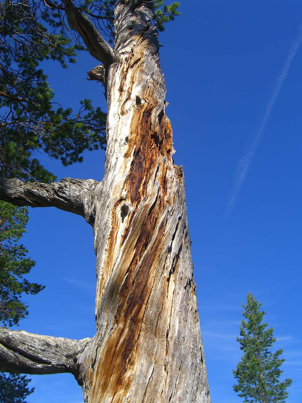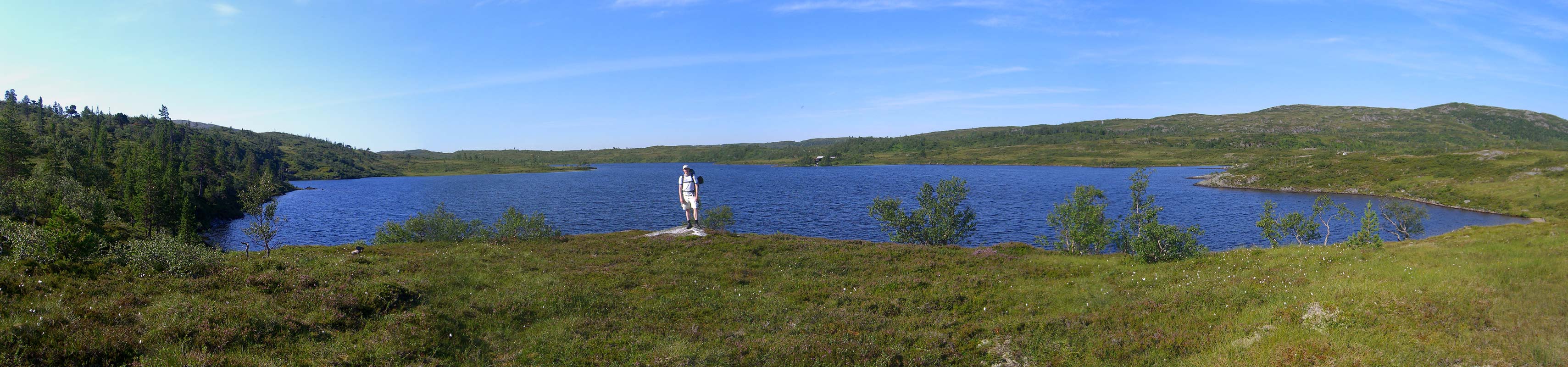Det var meldt finvær og vi bestemte oss for en ny tur i Brungmarka. Sist sykla vi fra Trondheim til Brøttem, gikk opp brattbakken og tusla innover over stier og langs myrer; denne gangen skulle vi ta buss til Brøttem og så sykla innover skogsveien mot Tangvollsjøen til vi kom til en fin teltplass. Fredag 25. juli - Regnklegg Sola stekte fra skyfri himmel da vi klokka 17 gikk av bussen på Brøttem, sykla over Trongsundet og tok til venstre bortover Moan. Etter bare noen få hundre meter stiftet jeg bekjentskap med en ny av naturens eiendommelige skapninger - regnkleggen (Haematopota pluvialis). Jeg trodde ikke det var noe annet enn en litt pussig, dog smått irriterende, flue, og ble overrasket da Marie fortalte at den biter. Det tok ikke lange tider før jeg fikk oppleve dét også. Hele sykkelturen fra Trongsundet nesten frem til der veien stopper, var vi omringet av en liten sky regnklegg. I nedoverbakkene forsøkte vi å sykle fra dem men de omsvermet oss ganske raskt igjen. Eneste muligheten vi hadde var å ta på langbukse og genser med lange ermer. Ikke mye behagelig med temperaturer godt over 20 i et par timers stort-sett oppoverbakke. Ved hver stopp gikk jeg iltert til motangrep og etterlot en håndfull falne klegg på stien, men det monnet lite mot den summende hæren. Dette forumet har vært gjenstand for mange debatter rundt irriterende dyr men etter min mening slår regnkleggen alt. Kanskje var det værforholdet som gjorde den spesielt tallrik akkurat denne dagen, ikke vet jeg, men det var like før den sendte oss på retrett. Etter å ha kommet til bekken mot Skjeftestjønna bestemte vi oss for å droppe syklene og finne en teltplass. Vi studerte kartet og satt kursen mot Langsjøen (553 moh) - et ganske stort vann merket med en stor, rød fisk. Perfekt! Det ble en litt slitsom tur (mye på grunn av den heldekkende munduren) over myrer, knoller, bekker og kratt før vi kunne ta Langsjøen i åsyn. Et riktig vakker vann idyllisk plassert ved foten av Kråkfjellet. Vi pitchet teltet på en liten odde omtrent vis-avis hytta som ligger der. En flott teltplass med god utsikt over hele vannet. Etter litt mislykket fiske (sikkert for varmt for ørretten) var det godt å krype til sengs i det insektfrie teltet vårt. Lørdag 26. juli - Kråkfjellet En ny vakker og svært varm dag i Trøndelag. Etter litt mislykket fiske (sikkert for varmt for ørreten) satte vi kursen mot Kråkfjellet (817 moh), et fristende fjell ikke langt fra Langsjøen og det høyeste innen rekkevidde. Dette ble en riktig fin tur. Insektene lot oss være i fred og utsikten var nydelig. Etter litt vierkratt og småbjørk i starten åpnet det seg opp og ble svært lettgått med stadig bedre utsikt i alle retninger. Vi gikk omtrent direkte fra enden av Langsjøen mot toppunktet. Utsikten fra toppen var nydelig. Mange minutter i kikkert ikke avslørte noen større dyr, verken elg eller rein var å se (bortsett fra et reinsgevir). Vi var de første på toppen den dagen, men den hadde hatt ganske bra besøk dagene før. Turen ned igjen gikk fint og resten av dagen gikk stort sett til mislykket fiske i langsjøen (varmt som sagt) og insektmassemord. Vi måtte dessverre ty til Real turmat til middag og ikke ørret med jasminris. På kvelden trakk en del barmhjertige skyer over og ga oss litt fred fra den stekende sola. Teltet var godt og varmt og det rant svette nedover underlaget. Søndag 27. kuli - Retrett Etter å ha konkludert med at ørreten sannsynlig lå ihjelkokt på bunnen og at vår del av verden besto av brennende sol og bitende insekt, pakket vi teltet og bega oss i retning av syklene. Vi valgte en ny rute mot syklene (fulgte Kjerringbekken nedover) og fikk en riktig fin tur. Vi ble også godt kjent med en Heilo som antageligvis hadde kyllingene sine i nærheten, for den var svært høylydt og oppjaget over vårt nærvær. Det var deilig å sett seg på sykkelen og la gravitasjonen dra oss nedover bakkene - hui hvor det gikk! Sannsynligvis var vi for raske for regnkleggen denne dagen (eller så hadde svermen dødd ut) i hvertfall kom vi frem til Trongsundet nesten uten bitt. Vi var tidligere ute enn planlagt og orket ikke vente flere timer på avtalt skyss, så vi syklet liksågodt videre og stoppet ikke før vi var hjemme i Trondheim. Fin tur, men neste gang drar vi kanskje ikke til Brungmarka når Trøndersommeren er på sitt heftigste. Og regnkleggen må dø.