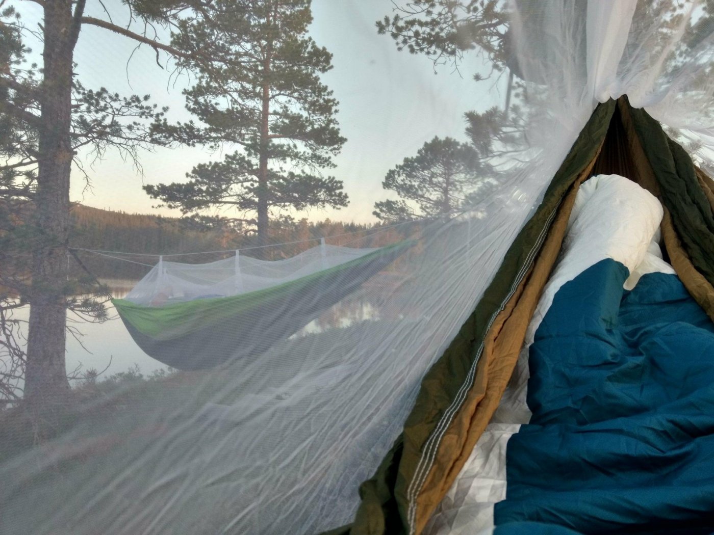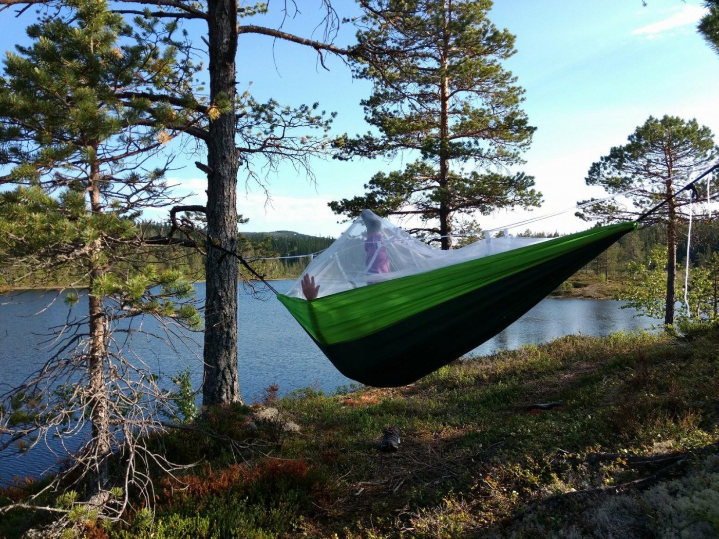 Jeg og datteren på 8 fikk plutselig en ettermiddag et illebefinnende og bestemte oss for å ta turen opp til Sikatjønna i Klæbu kommune. Parkerte ved Brøttem parkering. Vi passerte bommen og gikk "rett frem". Videre var det en oversiktlig skogsvei og etter hvert sti. Vi brukte vel ca. 2 timer opp - men det var godt med pauser underveis for å titte på alt mulig man fant på veien. Vi var ekstremt heldige med været og det var derfor "mye" folk å treffe på stien, tror vi traff på hele 3 turgåere totalt.. Når man har passert det bratte partiet kommer man over på et myrområde, anbefaler derfor godt skotøy. Vel oppe fikk vi nyte et fantastisk område og et fiskevann som tydeligvis var fullt av fisk - vi så fisk som hoppa hele kvelden/morgenen, men på tross av all den fristende fisken fikk vi ikke napp. Den ene lokale vi traff sa at vi måtte ha vært utrolig uheldige, for her fikk man visstnok fisk uansett hva. Fisk eller ei, vi hadde en super tur. Lett tilgjengelig og ikke minst overkommelig for barn. Dette var også vår første tur med hengekøye. Jeg har merket "Ticket too the moon King Size" samt myggnetting, mens min datter faktisk har ei fra ebay som funka knall! Link; https://www.ebay.com/itm/152371296863?ul_noapp=true Fordelen synes jeg med hengekøye, er at det er ekstremt lett vekt på samt at det går uhorvelig fort å sette opp og ta ned. Ulempen er vel kanskje for noen at man ikke får ligge helt flatt, men er du av typen som meg som har et godt sovehjerte og ikke har noe imot litt rare stillinger så vil du nok synes dette er en utrolig fin måte å sove ute på.