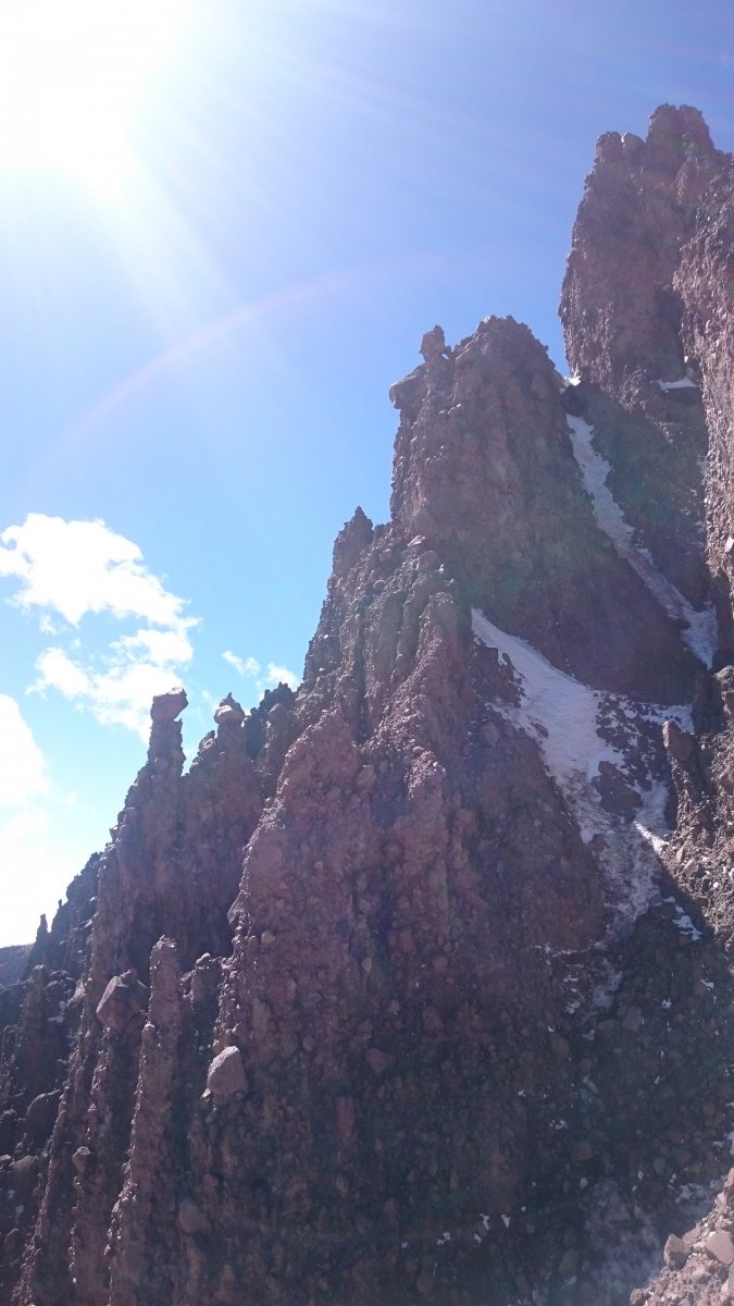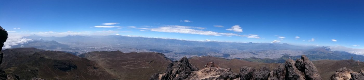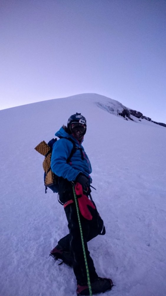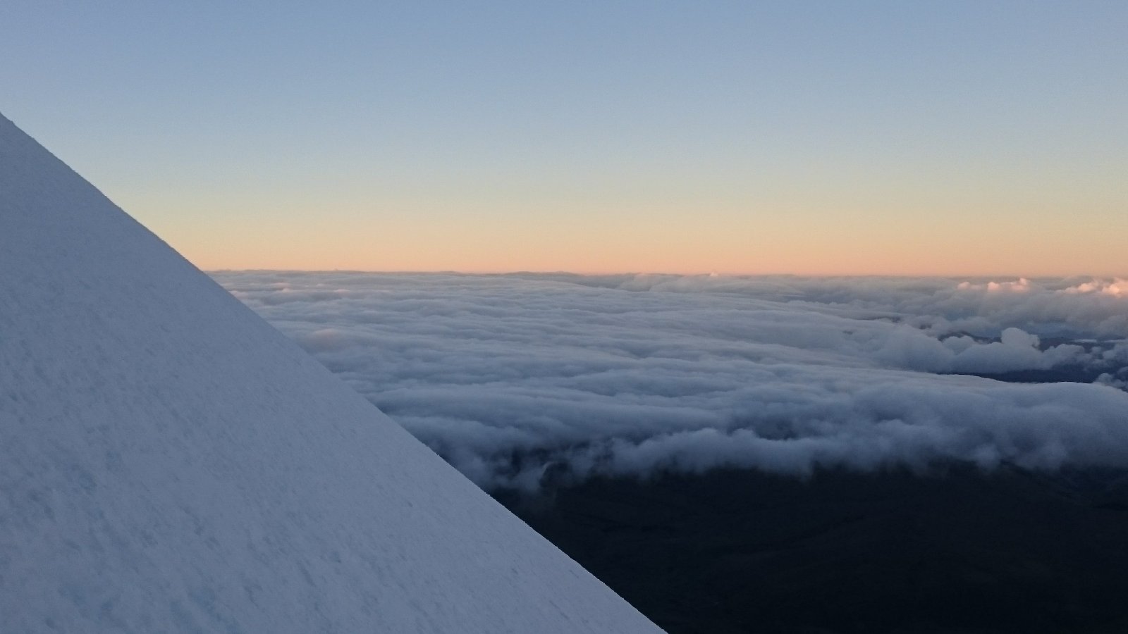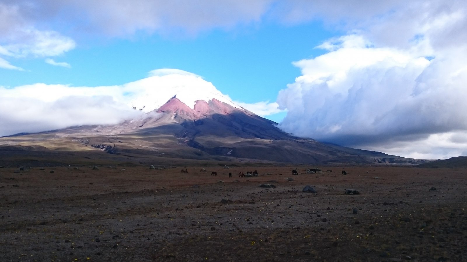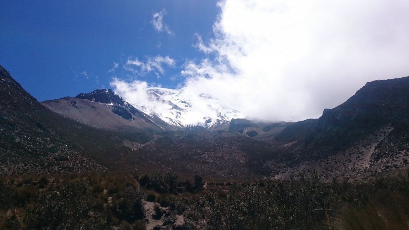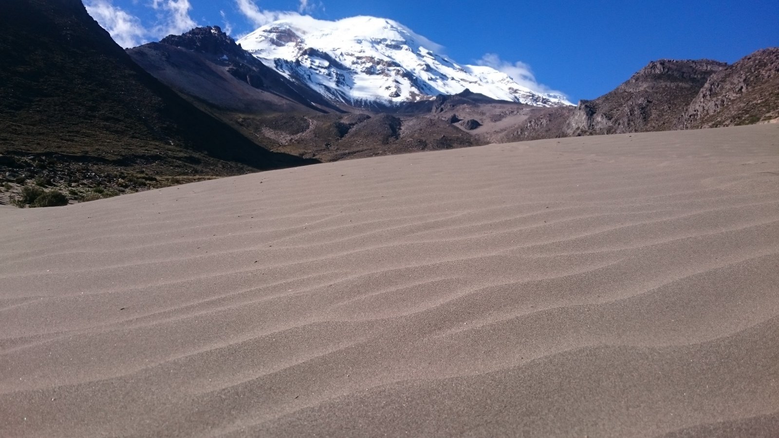 Etter å ha bestemt meg for å reise til Ecuador, vart det også tidleg klart at eg ville prøve meg på eit høgt fjell, når eg først var i området. Tenkte først at det hadde vore spennande nok med 5000moh, men fann ut at 6000 også var tilgjengeleg. Då Chimborazo i tilegg viste seg å vere verdas høgaste fjell ( https://no.m.wikipedia.org/wiki/), vart turplanen gradvis meir fjellorientert. Etter å ha tråla nettet etter diverse turrapportar frå spesielt Chimborazo og Cotopaxi, kombinert med lesing om akklimatisering, virka det som Chimborazo var oppnåeleg med 10 dagar akklimatisering. Sidan slowmotion-fjellvandring åleine ikkje frista spesielt hadde eg ei litt anna tilnærming til akklimatisering enn normalen. DAG 0: Landa, fann hostellet på 2800 moh. i Quito. Kjente at høgda var annleis enn heime når eg gjekk i trapper. DAG 1: Sightseeing, "klatra" alle dei 3 tårna i katedralen i byen og reiste til ekvator. (totalt ca 1,5t buss, 60 cent!) Relativt luftig trapp, passe akklimatiseringsaktivitet, dag 1.. Kryssing av ekvator DAG 2: Sidan eg neste dag skulle køyre bil til 4500moh, så følte eg at eg måtte sette ein personleg rekord til fots først. Den gamle rekorden var på 4167 (quiz: kva fjell er det?). Eg tok Gondolbana frå 3000-4000 moh over byen og starta på rusleturen mot Cumbre Pichincha (ca 4700moh). Med berre to netter på 2800 var eg ikkje uventa dårleg akklimatisert, men låg fart og fint vær fekk meg til toppen. Tegna på mild høgdesjuke kom etter kvart då eg nærma meg toppen og vart verre på veg ned att. Med gondolbana som fjernar 1000 meter på 10 min, følte eg ikkje det var spesielt farleg med litt høgdesjuke. Haudepina slapp taket etter ein time på senga på hostellet. Panoramabilde frå toppen av Rucu Pichincha. Kan ane fleire kvite toppar, som dermed er over 5000 moh. Kunne sjå Cayambe, Antisana, Cotopaxi og Chimborazo frå venstre mot høgre. To tyskarar eg slo følge med ned frå toppen. Quito og Cotopaxi 5897 moh i bakgrunnen DAG 3-5 Gjennom eit lokalt selskap, flowbikerental, hadde eg booka 3 dagar med downhillsykling, der eg gjerne ville vere litt i høgda, sidan dette var ein del av akklimatiseringa. Her fekk eg som bestilt, guide, sjåfør, topp downhillsyklar, og sykling på høgder mellom 4500-2800 i tre dagar (130$/dag). Eg merka dag for dag at eg lettare og lettare hang med guiden på flatene etter kvart som eg vart akklimatisert. Siste dagen var vi i tillegg innom Quilotoa, som er eit stort vulkankrater med ein innsjø i midten, som "alle" turistane på hostellet anbefalte. Her sprang vi ned og opp dei 2-300 høgdemetrane mellom 3500-3800moh. på 38 minutt. Det var vesentleg fortare enn dei uakklimatiserte turistane rundt oss var i stand til! Cruising på flotte stiar, totalt drøyt 8000 vertikale meter ned på 3 dagar! Her med Quito i bakgrunnen Omtrent på 3700 moh. på veg ned dei 1500 høgdemetrane frå 4000-2500 moh. Frå opent fjellklima til tropisk klima på 40 min! DAG 6: Skulle eigentleg reise tidleg på morgonen frå Quito, men sidan eg vart invitert med på joggetur på morgonen vart avreise litt utsatt. Deretter tok eg buss til Machaci (1,50 $) og taxi (20$) til Tambopaxi lodge (3750moh). Her kunne vi ha hatt perfekt utsikt til cotopaxi, om ikkje skyene var i vegen. Tok ein times spasertur i området før middag. Dette var det meste eg fekk sjå av Cotopaxi på nært hald. Svært fjell, bildet er tatt på ca. 3800 moh, med villhestar i framgrunnen. Cotopaxi Refuge på 4864 moh. Delar av det kvite oppe til høgre og venstre for hytta er isbre. Ved godt vær kunne ein truleg ha sett toppen frå dette punktet. DAG 7: Planen for dagen var å bestige midt-toppen på Rúmiñahui (ca4600moh), men på grunn av dårleg vær gjekk eg heller langs vegen dei 13 km opp til Cotopaxi refuge på ca. 4850 moh. Ny høgderekord der altså. Farten var framleis god i forhold til turistane rundt. Fekk haik ned att, dermed sparte eg knea for 1000 høgdemeter nedoverbakke. Møtte på ein nysgjerrig Andes-rev på 4600 moh, rett før eg fekk haik ned vegen! DAG 8: Planen var eigentleg å bli på Tambopaxi lodge ei natt til, men sidan eg fekk veggdyr natta før, kombinert med dyre prisar, diaré og skodde, fann eg ut at eg ville ha eit komfortabelt døgn i Riobamba (2700 moh) i staden. Spleisa på taxien med roomien frå sovesalen og hoppa på ein buss mot riobamba. Litt annleis type buss-stopp her enn i Norge! For å komme meg på bussen måtte eg krysse ein 4-felts motorveg og deretter stille meg opp "kor som helst" (om eg forstod spansken riktig) og stoppe bussen. Det funka fjell. Generelt kostar buss mellom 1-2 dollar i timen i Ecuador. Med den prisen hadde eg nok køyrt vesentleg mindre bil i Noreg. Eit noko uvanleg skilt å møte i fjellheimen for min del! Plasseringa på Chimborazo Lodge er mildt sagt gunstig for fjellentusiastar! DAG 9: Med litt mindre kløe og litt mindre diaré, var eg klar for meir akklimatisering. Tok ein lokal buss frå Riobamba til hotellet Lodge del Estrella, som ligg strategisk til i nasjonalparken til Chimborazo på 3950moh. Gjekk til fots på ein utydeleg sti frå hotellet og peikte meg ut ein ryggformasjon på veg mot Chimborazo som såg artig ut å gå på. Etter kvart som eg passerte ca 4700moh. vart det stadig luftigare oppover, så i frykt for å gå meg vill bygde eg eit par småvardar på nokre utsette punkt i tilfelle eg måtte ned samme veg i skodde. Skikkeleg eventyrfølelse! Etter kvart smalna ryggen av og endte i eit stup. Då eg såg ei slynge rundt ein stein byrja eg å tru at eg måtte snu, men med litt klyving på høgre sida av ryggen kom eg meg ned i eit skar på ca 5000 moh. Veldig stilig geologi her, der både isbre og vulkanen prega utforminga av landskapet. På bilder på hotellet kunne ein sjå korleis breane har trekt set kraftig tilbake dei siste 100 åra. Etter eit halvhjerta klyveforsøk vidare frå skaret konkluderte eg med at dette var idioti, så eg tok lunsj, pusta inn mest mogele