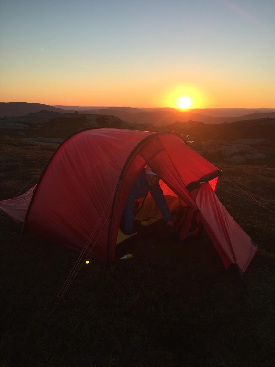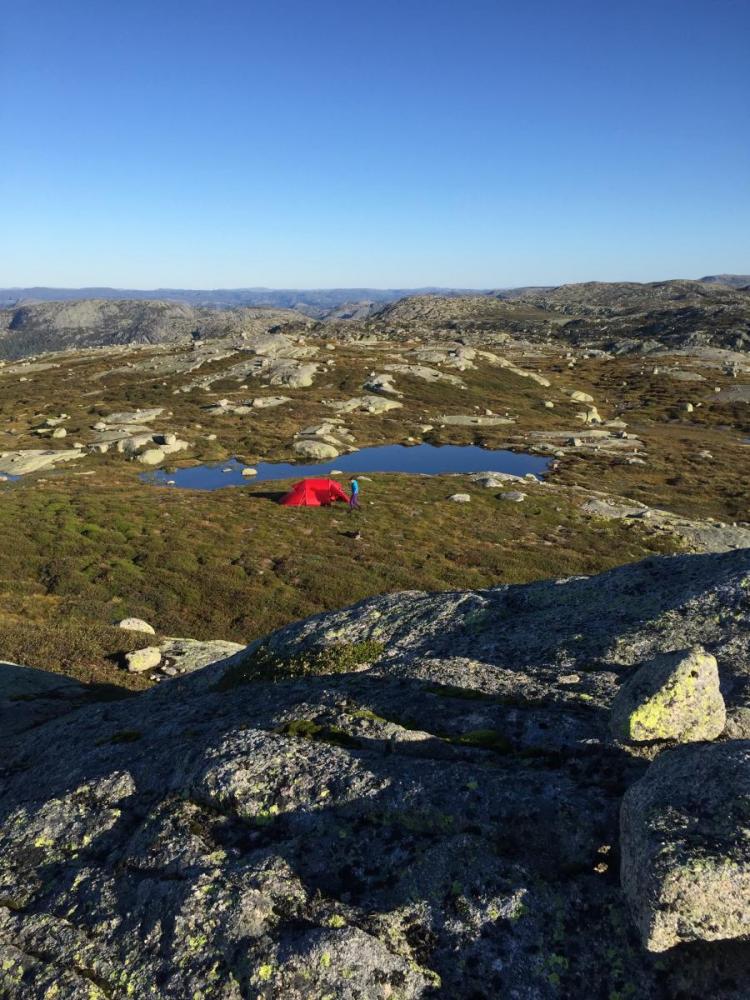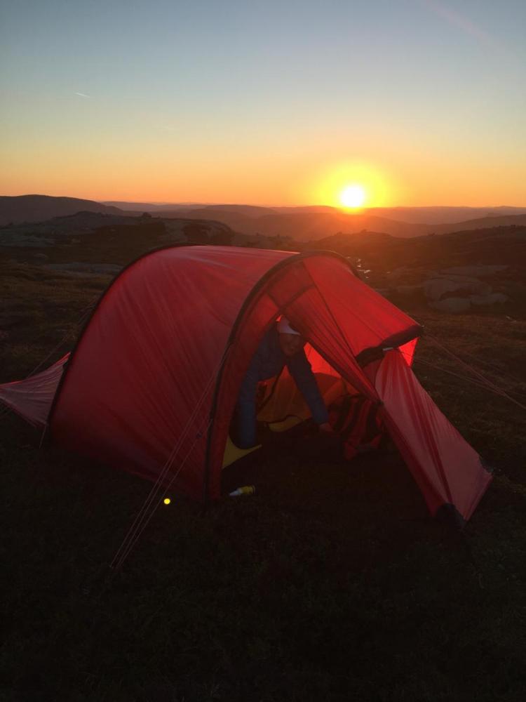 Kort men flott fjelltur på sørlandet Vi går daglige turer i fjellet hjemme på Hommersåk og på fjellhytta på Knaben. Vår Tervueren, en belgisk fårehund på 10 år, liker naturen like godt som oss. For noen år siden forsøkte vi oss på telting sammen med barna. Lavoen fra Helsport er tipp topp på alle måter. Men etter at hele familien ble oppspist av mygg på en overnatting på sommeren med fuktig natur uten trekk så har lavvoen dessverre ikke blitt brukt. Nå er det kona, meg og hunden som går turer sammen. Derfor ble det i sommer investert i et solid 3 manns fjelltelt med myggnetting på inner og ytterduk. Et greit nok fortelt som ivaretar hunden på 22 kg og et par store men tomme ryggsekker. 1 på 65 ltr og 1 på 110 ltr. Utstyret oppbevarer vi tørt inne i teltet for enkel tilgang. Etter mye regn i nesten 3 uker kom endelig opplettet vi hadde ventet på. Sekker ble pakket på morgenen med telt, 2 stk Ajungilac Igloo soveposer med h og v glidelås, Bamse liggeunderlag, siste utgave av Primus Omnifuel og restene av stormkjøkkenet. Ettersom dette kun skulle bli 1 overnatting tok vi med frosset laks og tørr ris ++ samt frokost og rastemat inn og ut av fjellheimen samt noe frysetørket mat. Vi fikk også kjøpt ei vannflaske med NASA filter som vi tapper alt vann oppi til både helling over i personlig drikkeflaske og til matlaging. Det går sauer i området og det er partikler i vannet. Turen startet fra Gruvebyen på Knaben. Vi satte kursen sørover. Knabejakta, årlig turorientering med 15 poster, var satt ut på forsommeren. Vi hadde kun 4 poster igjen. Disse ville vi ta ila denne turen. Praktfullt område med snaufjell og blå himmel hele veien. Vi fant den første posten. Ikke lenge etterpå fant vi den andre også og rastet der før stigningen opp på fjellrekka til post 13. Herlig endelig å være på skikkelig tur igjen. Man kjenner at man virkelig koser seg og nyter hvert åndedrag av det. Dette er livet. Etter en stund er vi oppe på taket og nyter en fantastisk utsikt i klart og nydelig vær. Så kjekt! Det sies at man ser over til 8 ulike kommuner fra Grunnevassnuten på klare dager. Dette kinne ikke være noe særlig dårligere. Nå hadde vi gått fra øverst i Kvinesdal kommune til Eiken i Hægebostad kommune. Post 13 lå nydelig til ved et tjern. Her ville vi telte. Etter en kort sondering fant vi et snauspist og stort område som ei fjellhylle oppe i høyden. Midt i blinken. Utsikt med 300 grader. Morgen og kveldssol. Trekkmuligheter når den kommer. Jevnt og mykt underlag med teltfeste alle steder. Teltet ble satt opp på få minutter selv om dette var første gang vi hadde satt opp et slikt telt. Alt var gjennomtenkt. No fuss. Alt utstyret ble plassert på sine plasser. Vi var like stolte nå som da vi bygget hytta vår. Omnifuelen, panne, gryte, vann, ris og laks ble funnet fram. Koker opp risen og setter den til sides mens vi freser opp nytint laks og div annet. Nå er vi faktisk midt oppi drømmen vår. Enkelt, godt, flott og fredelig liv på vår måte med våre prinsipper. Maten smaker fantastisk. Vannet like så. Etterpå plukker vi litt molter til dessert. Vasker opp og brenner plastemballasjen. Rydder opp og tar oss en kveldstur før vi har lyst å prøve teltet og sengene våre. Kvelden blir til natt. Vi tar oss en tur ut før vi legger oss. Solnedgangen er bare nydelig og total. Vi satt og så på dette himmelfenomenet. Av alle ting overtok en stor, hvit og klar fullmåne som lyste opp fjellheimen og vannene rundt. For en opplevelse. Bildene vi tok får ikke gjengitt dette. Minnet er allikevel uslettelig og vil tas frem i pannebrasken igjen ved behov. Kona frøs selv om soveposen skal dekke ned mot 0 grader. Tempen var over 10 grader ila natta. I etterkant har vi sett at et skikkelig Exped Downmat 7 cm sikkert vil bidra positivt. Tester av ulike soveposer leses flittig. Alle posene er gode med sine kvaliteter. Spørsmålet er om vi skal ha soveposene vi har til rene sommerposer. De er store og veier en del. For vår, høst og vinter kjøpe en ny dunpose som er tynn, liten og lett ift varmen. Ser at det er tester på Warmpiece Viking. Prisen fra Hekta På Tur er jo helt glimrende. Dette virker for oss som kun trenger utstyr som er godt nok til vårt ønske og behov, til å være midt i blinken. Neste morgen kommer sola inn teltinngangen. Hunden har ligget godt og stille selv om sauer har passert i nærheten. Nå smetter hun ut først slik at vi kommer oss ut. Sola varmer raskt opp teltet og fordampet fukten fra overflaten. Ventilasjonen inne i teltet var enestående selv uten vind. Store og åpne ventiler med myggnetting plassert høyt oppe i begge kortender gjør tydeligvis susen. Frokost lages mens vi prater om den fantastiske opplevelsen og turen hittil. Kaffelukt og straks mat i flott vær og natur "e magalaust". Etter nedpakking ser vi oss om en siste gang før vi returnerer til Knaben. Dette skal vi gjøre igjen og igjen og igjen. Det er derfor supert å lese på Forumet her om all kunnskapen alle besitter og deler med hverandre. Herlig! riktig god høst og mange flotte turer til store og små, unge og gamle.
