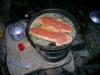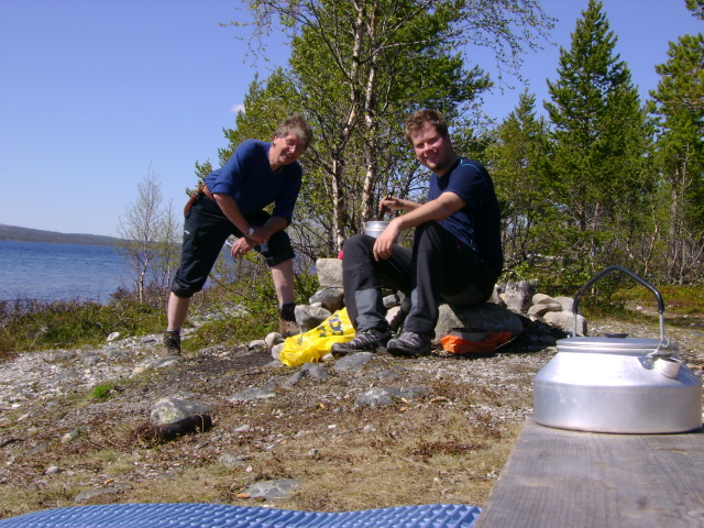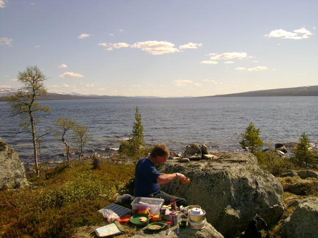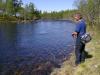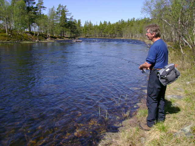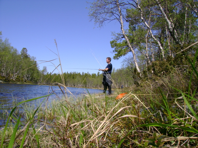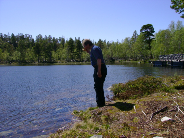 Ta gjerne turen innom bloggen vår for å lese om flere turer https://turhistorie.blogspot.com/ lørdag 6. juli 2013 På jakt etter storfisken i Femundsmarka Vil vi klare å lure storfisken? 22.06.2013 - 04.07.2013 Endelig var dagen kommet. Sekkene var pakket, siste dag på jobben før ferien var fullført og alt var klart for å sette kursen mot Jonasvollen som skulle være utgangspunktet for vår to ukers tur i Femundsmarka. Da vi tidligere i år skulle bestemme hvor årets langtur skulle finne sted vurderte vi blant annet Lierne, Tafjordfella og Finnmark. Valget falt til slutt på Femundsmarka. Vi hadde hørt om både positive og negative opplevelser fra andre som hadde vært på tur her, uttalelser som "alt for mye folk etter Monsen var der", "mye søppel" hadde vi hørt flere ganger. Vi ønsket å finne ut om hvordan vår opplevelse av dette området ville bli og valget ble gjort. Det hjalp også med "røverhistorier" om fangst av stor ørret og røye. Dessuten fristet det å utforske mer av Femundsmarka etter vi var på padletur i Rogen-området i 2011 og var bare en snarvisitt over på norsk side. Etter ei natt på hytte på Jonasvollen tok vi båttaxi til Storvika, strålende service. Vi tok båt med en far og sønn som hadde feriert her de siste syv siste somrene, de fortalte at den såkalte Monsen effekten hadde roet seg betraktelig og man kunne få store deler av marka for seg selv, spesielt utenom fellesferie perioden. På veg mot Skogtjønna En kort pause ved Røvoltjønnan Planen var å slå leir med Skogtjønna, vi hadde en avtale med Bjarne og Jan Erik om å møtes her. Da vi kom hit tok det ikke lang tid før fiskestengene var i bruk, men noe fangst ble det ikke. Ut på kvelden kunne vi skimte to karer som kom gående langs sørsiden av Skogtjønna, da de kom nærmere så vi at det var Bjarne og Jan Erik. Nå bør kaffen være klar var det første som ble sagt, før en kjapp hilserunde. Resten av kvelden ble brukt til kaffe slabberas med kake (takk for den Jan Erik) og noe sterkt attåt (takk til Bjarne for det). Ivrig etter å prøve fiske. Leir ved Skogtjønna. Neste dag ble det fokusert på ørret og røyejakt i Skogtjønna og Abbortjønna, men heller ikke i dag ble det noe fangst å snakke om. Ut på kvelden fyrte Jan Erik og Bjarne opp St. Hans-bålet og siste rest av de edle dråpene ble drukket. En fantastisk kjekk kveld der vi fikk høre om flere av turene til Bjarne og Jan Erik, de gutta har mye spennende å fortelle. Håper det ikke blir siste kaffebålet vi deler. Fullt fokus. Jan Erik kan skimtes i bakgrunn. Kathrine prøver lykken i Abbortjønna. Kathrine går slukøret tilbake mot Skogtjønna. Fin dag. Det ble en fin kveld selv om fiske var dårlig. Feiring av St. Hans Da vi våknet neste dag hadde de andre karene brutt leir og vi satte kursen mot Grislehåen, når man er i Femundsmarka må man ha bløtt en sluk i denne legendariske fiskeplassen. Da vi hadde etablert leir ikke så langt unna oppsynsmannhytte kunne vi se Jan Erik kom gående opp langs elva, han fikk seg en kaffekopp og jeg slo følge opp til innoset. Her fikk han en fin ørret, mens undertegnede ikke fikk noe som helst. Det ble flere turer hit i løpet av kvelden uten så mye som et napp. Kursen settes mot Grislehåen. Veldig greit med bro når elven skal krysses. Ingen fangst i Grislehåen. Fin leirplass i nærheten av hytten til oppsynsmannen. Alt dette fikk vi nesten helt alene. Neste etappe ble til Stortjønna i Grøtåadalen. Vi gikk på nordsiden av Grøtåa og dette ble en slitsom etappe før vi kunne slå opp teltet på den eneste teltplassen som var å finne her. Det sto en tre, fire andre personer å fisket da vi kom, men de gikk etter kort tid. Hadde sikkert leir nede ved elven. Fisk fikk vi en del av i Stortjønna, men snitt størrelsen var vel på ca 150 gram, noe skuffende, men det var da hvert fall fast fisk. Dagen etter ble en teltdag siden det stort sett regnet hele tiden og tåka lå tett over vannet. På veg mot Stortjønna. Kathrine er ikke fornøyd med rutevalget. Kathrine har fortsatt troen. Kaffepause er viktig. Denne ørreten fikk livet tilbake. Ny dag, nye muligheter. Det var fortsatt en del tåke, men det hadde stort sett sluttet å regne. Vi satte nå kursen mot Stortjønna i Krattland, nå skulle storfisken på land! Vi fulgte tråkket som gikk fra Grøtåadalssetra opp til Kratltjønna, vi tok av mot Stortjønna og slo leir mellom Stortjønna og Rundtjønna, der Bjarne hadde vist oss på kartet. Det ble en del fisking første kvelden, men alt vi fikk var en hallkilosabbor i Stortjønna. Neste dag skulle vi prøve noen av de andre tjørnene Vi kastet,kastet og kastet i timevis, ikke et napp. Humøret mitt ble ganske labert og frustrasjonen økte. Da foreslo Kathrine å fiske på sørsiden av et av de andre tjørnene som sagt som gjort. Vi fant oss ei vik og kunne nå kaste ut med vind i ryggen. Vi ble begge enige om at her blir vi stående til noen av oss har fått fisk. Etter en liten time roper Kathrine, "fisk!"Jeg tar håven og springer mot henne, fisken raser ut med senen og snella hyler. Plutselig retter stanga seg ut og Kathrine ser skuffa bort på meg,"den gikk". Surt, men nå visste vi at fisken var her, det var tegn på liv, trua var tilbake. Etter enda en time så jeg bort på Kathrine, stanga hennes sto i bøy og hun var stiv i blikket."Har du fisk ?" ropte jeg, "ja, men tror den er liten". Så brøt et beist av en fisk overflaten, vi så det var ei røye, dette er kilosfisk tenkte jeg og sprang bort til Kathrine med håven. Etter noen lange minutter lå fisken trygt på land og begge jublet. Vekten viste 1,5 kg, ny rekord for Kathrine, veldig kjekt, hun slo min rekord på 1,3 kg, ikke så kjekt. Joda, neida, joda. Mye stein, men målet nærmer seg. En av veldig få plasser det var greit å slå opp teltet. Utallige kast utenså mye som et napp. Dårlig fiske kan gjøre noe med psyken. Kathrine er på sporet av storfisken. 1,5 kg og ny rekord. En så fi
