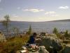 Midt i september i Rørostraktene.. hvem skulle ha trodd - makan til vær. Var shorts-føre fra start til mål (dog bare dagstur) - og jeg har ikke sett Femundsmarka i finere drakt (ok da - er ikke så verst på senvinteren heller). Gikk fra nord-enden av Feragen langs en gammel traktorvei, så gjennom et gammelt kromgruvefelt. Gruvene er sikret og godt merket med navn for de som er steingale Turen tok litt mer tid enn beregnet da vi var to med geologifag på turen Denne turen var for min del en test på om ankelen holdt til en flerdagerstur i Femundsmarka utpå høsten - så jeg gikk med en oppakning deretter. Det gikk overraskende greit helt frem til den siste halvtimen - men da stivnet det godt til Får spørre dr. dyregod om det kanskje kan være en løsning å fjerne de siste 6 skruene også. Eneste jeg angrer på denne turen, var at jeg ikke tok med sovepose og telt - for makan til fin sandstrand midt på fjellet Kunne godt tenkt meg å campe der noen dager og gå dagsturer derfra. Prøvde også å se etter kantareller, men så nok ikke godt etter. Dog fant vi et par schvæære sopper på turen.