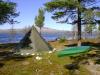 Jeg hadde lyst på en padletur på Femunden og med pinsa så bød det seg mulighet for en langhelg. Jeg klarte å få lurt med meg min far og turen var et faktum Vi padla fra Synnervika og målet var å nå Røoset. Det skulle vise seg å ikke være noe problem for Femunden stilnet på kvelden og vi nådde Røoset etter bare 2 timers padling. Jeg dorget på turen, men eneste livstegnet på stanga var et kraftig napp i starten, rett utenfor Fæmund II. Vel framme kom vi i snakk med en småfull lokal fisker som fortalte mye om hvordan fisken skulle tas, og hvilket agn som som var best. Etter å snakket med karen ga han oss en flott fisk han hadde tatt tidligere på kvelden, og det ble kveldsmat på oss Dette skulle faktisk vise seg å være eneste fisken vi fikk på turen Vi lå ved Røoset i to netter hvor vi fisket og gikk tur opp langs Røa. Været var topp, sol og noe kald vind. Søndag vendte vi hjemmover og padlet med vinden i ryggen. Helt nord i Femunden ved holmen Jabben blåste det kraftig opp og vi tilbragte et par timer værfast før vi kunne fortsette tilbake til Synnervika.