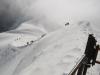 Endelig var et høytrykk på vei og jeg trykket på bestill knappen på SAS sine nettsider. Etter jobben tok et forsinket fly Helge og meg ned til Zürich. Med hjelp av leiebil kom vi fram til Chamonix rett etter midnatt. Den store planen for de fire dagene opp i høyfjellet var GRAND JORASSES traversen. Fra Torinohytta via bivacco Canzio til hovedtoppen. Her trengs det stabilt vær og gode forhold, leste vi. Været var det ikke noe i vei med og forholdene kunne knapt vært bedre. Fortsatt litt snø i rutene men stort sett bra. Etter mange turer til hjemlandet mitt, og mange bestigninger av 3000 topper i løpet av våren /sommeren var akklimatiseringsprosessen kommet godt i gang for min del. Helge, etter flere måneder på havnivå i Oslo, var nok litt mer skeptisk. Men vi begynte med en aldri så liten akklimatiseringstur. MIDI-PLAN traversen. Etter 2 timers venting i kø kom vi endelig opp med gondolen. Ikke hvilken som helst gondol, men en av verdens kuleste, Aiguille du Midi. Traversen fra toppstasjonen og over til hovedtoppen Aiguille de Plan kan til de grader anbefales. Noe av det flotteste en eggtravers kan by på Og ikke spesielt vanskelig heller. Noen punkter med III-er klatring. AD. Dag 2: Etter en natt i Argentiere kjørte vi gjennom den svinedyre tunnelen under MB til Courmayeur. Enda en gondol og vi var opp epå Torinohytta. Derfra gikk vi nok en akklimatiseringstur til en veldig pen topp. Tour Ronde. Pen er den å se på. Bestigningen er derimot ikke av den fineste sorten. Masse løsgods og fallende stein. Dag 3: Med litt norsk charm og Helges italiensk kunnskaper klarte vi å få plass på en full booket Rifugio Torino. Dagen etter skulle altså Jorasse traversen starte. Kl 5.30 var vi i gang og alt gikk etter planen fram til steggjernet til Helge valgte å ta en snarvei i retning Courmayeur. 500 meter nedstigning på null komma niks. Da røyk traversen. Vi har ikke kommet lenger enn halvveis til Aiguille de Rochefort, 4000 topp nummer 1 på den berømte Rochefort eggen. Og den skarpe snøeggen videre så ikke akkurat ut som om man kunne ta den med bare 50% utstyr under føttene. Men, Helge mente det var greit og så fortsatte vi, gikk over A. Rochefort og videre til Dome de Rochefort. Nok en 4000 topp innkassert. Men videre retning Jorasses med bare et steggjern hadde virkelig vært hakket for ambisiøst for ikke å si dumt. Dermed var det bare å gå Rochefort eggen tilbake og ned til Torino hytta. Ved cappuccinoen på hytta (kaffen er god i Italia, uansett hvor du måtte befinne deg) begynte vi å lage erstatningsplaner. Etter noen vurderinger (Jorasses normalruta etc) valgte vi å dra tilbake til Cham for å satse på en spasertur opp Mont Blanc du Tacul. Det var da i overkant kjedelig mente Helge. Så det skulle bli Mont Maudit i stedet. Vi tok en av de første gondolene opp og ved 8 tida startet vi fra toppstasjonen. Været var fantastisk igjen men vinden blåste som faen. Hadde nok ikke vært noe særlig å klatre IV-taulengder på Jorasses eggen i morgenmørke og kuling. Opp Mont Maudit var det derimot helt fantastisk. Islandskapet og toppeggen med utsikt over 3.000 ned til Chamonix. Kl. 11.20 sto vi på Mont Maudit. Det var ikke vanskelig å overtale hverandre å satse videre retning Vesteuropas høyeste punkt. Den arktiske haugen foran oss har en viss tiltrekningskraft. Verken høyden, kulden eller vinden kunne stoppe oss. Kl 13.20 sto vi på toppen. Dagens siste taulag (av mange). Normalruta ned Gouter hadde vært enkelt men dødsrenna under Gouterhytta på ettermiddagen hadde vi ingen lyst på. Så valgte vi å gå tilbake samme vei. Den store utfordringen: Rekke siste gondol kl 6. Og vi var ikke de eneste som hadde dette målet. Det pågikk et race opp Aiguille du Midi. Alle skulle rekke det. Og fra høytaleren hørte man en irosnisk stemme om LAST RUN NOW. Og last runs ble det flere av. Så det holdt akkurat at vi var ved stasjonen kl kvart over 6. Vi rakk da den virkelig siste gondolen og ut fra vinduet så vi de desperate taulagene som kom for sent.