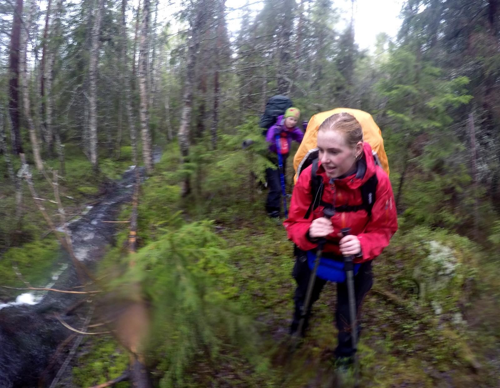 Jeg har vært på en liten friluftstur med to venninner og en husky fra Elverum. Turen gikk i Finnskogen, trivelig å traske rundt i gamle trakter. Turen startet fra Bergeberget i regnvær. Heldigvis litt mindre en meldt, for det var sendt ut flomvarsel i område. Det ble litt rot i stivalget i starten. Det hadde vært en del tømmerhogst i område, og på grunn av det gikk vi litt feil. Derfor valgte vi å ta ut GPS kurs mot en geocache, og fulgte den til Bergsætra. Til sammen gikk vi 18 km til Renosdammen og overnattet i telt der. Vi våknet til nydelig vær, frokosten ble spist i det fri før vi pakket sammen campen. Første hinder på veien var en elv som måtte vades over, godt å ha med crocs som vadesko! Etter 1 mil i myr, kom vi fram til Steintjernkoia. Jeg hadde litt vondt i kneet dagen før, det kjentes greit ut på morgen, men smertene hadde kommet tilbake i løp av dagen, så vi bestemte oss for å være ved koia. Veldig trivelig plass, et lite myrtjern og masse skog. Koia var godt bevart, med fire senger og en stor ovn, så vi fikk fyrt litt og tørket våte sko. På kvelden koste vi oss med yatzy og prating. Teltene ble satt opp, og det ble en natt med søvn. Turen var veldig koselig, utrolig deilig å komme seg ut i skogen litt! Og myggen hadde ikke våknet enda, så vi kunne sitte ute hele tiden uten å bli plaget av disse. Jeg har laget en liten film fra turen som ligger her https://grensedager.wordpress.com/2016/05/27/video-finnskogen/ .