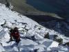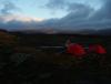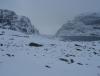 En tirsdag morgen kom jeg aleine til Finse, og etter litt dilldall på stasjonsområdet begynte eg vandringen langs merket rute mot Ragsteindalen. Poenget var å sette opp teltet litt innforbi, for så å møte en venn på stasjonen på kvelden. Været var fint, og ettersom påsken nettopp var forbi (og det tydligvis hverkan hadde snødd eller blåst siden da), var ruten godt opptråkket. Jeg satte pris på dette der og da; med all maten i sekken var den på 25 kg, så det var greit at den første oppoverstigningen ikke var verre enn den måtte være. Ruten går under Jomfrunuten, og gamle minner dukket opp da jeg passerte området hvor speiderne i sin tid hadde snøhulekus, og hvor jeg lærte mine første telemarksvinger. Nostalgien forsvant raskt da det dukket opp en enorm høystpentledning som krysset traseen. Men sånn er det med den saken. Planen var å sette teltet opp i området rundt et mindre vann ca 4 km fra finse. Kartet hang i mappen sin rundt halsen, og jeg fulgte med så godt jeg kunne. Forvirringen økte likevel etterhvert. Vannet kom ikke, og plutselig sto jeg på toppen og så ned på krysset til Geiterrygghytten eller hva den nå heter. Kartet snus her og der, og forvirringen øker til mild panikk da det skyer til og Hardangerjøkulen forsvinner i tåke. Tanken på å sette opp teltet alene i kuling langt vekk fra folk var jeg ikke helt komfortabel med. Uroen var unødig. Været forble stabilt slik det var meldt. Heldigvis; det muliggjorde en krysspeiling for å finne ut hvor jeg var. Da kom jeg på noe jeg hadde lest; "traséen kan variere"... Krise var det jo aldri, for ruten var jo tett staket hele veien, men alt dette resulterte i at eg satt opp teltet bare 50 m fra løypen. Da jeg innså at det var skammelig nært orket jeg ikke flytte på det. Vennen ankommer, og ca. kvart på syv drar vi nå sammen fra finse. Det mørkner til etterhvert som vi går, men det er igjen blitt klarvær så det er ren fornøyelse. Uvitende om at vi får en tøffere kveldstur dagen etter, nyter vi det spesielle blåaktige lyset mens vi labber innover. Vi har hørt at natten før var det 30 blå på finse. Vi er derfor noe spent på natten som kommer, selv om det ikke var meldt så fryktelig kaldt. Siden har jeg funnet ut at det var rundt -20 på det kaldeste den natten. Inni teltet har det nok vært enda varmere, for kameraten min hadde hevet snø oppetter teltduken, og snøret igjen alle ventilasjonsåpninger for at å holde varmen inne. Tror heller ikke at kondensen fra pusten frøs på soveposen. Noe som var litt spesielt var at, da det var blitt skikkelig mørkt, det "snødde" fra skyfri himmel. Med hodelykten på glinset det i superlette snøfnugg som seilte med den lille brisen som var, nærmest for å understreke stjernenes glimt fra oven. Om det var føyk fra langt vekke, eller luftfuktighet som frøs vet vi ikke, men vakkert var det i hvertfall. Dagen etter får vi en skitur som jeg ikke kan beskrive. Solen stråler fra skyfri himmel, og ikke et vindpust er å ane. Det har visst snødd ila natten, for det ligger 10 cm ny pudder. Turen fra finse og gjennom Raggsteindalen må oppleves. Mer vil jeg ikke si om den saken, bortsett fra at når man kommer ut av Kyrkjedøren, så må man snu seg og se tilbake. Det er et syn som har festet seg for livet. Føret var rett og slett konge. I Raggsteindalen har det snødd mer, slik at i de to nedoverbakkene som fins kunne man skikkelig leke seg med telemarken. Det tar litt i lårene med tung sekk på, men det får man heller ofre. Det eneste jeg angrer på er at jeg konstentrerte meg om å kjøre sikksakk mellom stakene, i stedet for å ta ut til siden å nyte det uberørte. En lunsjpause på myren under Raggsteinnuten gir påfyll til oppstigningen som ligger foran, trodde vi. Tanken var å ta av fra løypen, og ta snarveien inn mot Folarskardet. Det er da jeg får ideen om å krysse over, i stedet for under, Grønehallnuten, som ligger på 1415 moh i forlengelse av Folarskardnuten ned mot Strandavatnet. På den måten håper vi å spare noen kilometer. Planen videre var å enten telte under Folarskardet, eller oppi, eller sove i Lordehytten. Den siste biten opp mot Grønehallnuten viser seg å være tyngre enn antatt. Men det går. Og når vi kommer opp er det verdt det. Skrenten opp mot Folarskardnuten står stor og mektig med skavler på mens man rusler bortover flatene. Det viser seg imidlertid at man ikke sparer så mange mye likevel, blant annet for å ikke gå farlig nær under skrenten, og for det andre fordi det har bygget seg opp mindre skavler som strekker seg ut fra skrenten som man likevel må gå rundt. Men dog; opplevelsen av fjellet er sterkere der oppe enn under så jeg angrer ikke. Så er klokken blitt ca fem, og er det bare knappe fem km igjen til Lordehytten. Derfor satser vi på å overnatte der. Imidlertid viser det seg at vi er blitt slitne av den siste oppstigningen. Tom for energi bruker vi tre timer frem til Lordehytten. Antagelig var det feil kombinasjon av fett og karbohydrater i kostholdet, pluss den harde oppstigningen, som tok knekken på oss. Jeg hadde planlagt maten, og visste at det er fler kalorier per gram i fett. Ergo masse fett og mindre karbohydrater. Men stakkars oss er visst ikke innstilt på å brenne fett... Likevel er naturopplevelsen fantastisk. Mens vi langsomt trasker inn gjennom dalen, ser vi solen gylne toppene i øst. Snur man seg legger skyggene seg langstrakte over heimen i nord, mens åsene og Reinskarvet skinner som gull. Så står vi ovenfor den siste bakken. nesten 200 høydemeter skal forseres. Stjernene har begynt å titte frem, fellene detter av skiene. Det går bare treigere og treigere. Til slutt finner vi ut at vi likegodt kan ta av oss skiene og tråkke rett opp. Underlaget er hardt nok til det. Krypende på alle fire, med melkesyre som river i lårene, nærmer toppen seg langsomt inntil vi tilslutt står seirende på toppen. Gleden av å være oppe bruser. Og så ser man opp. Me