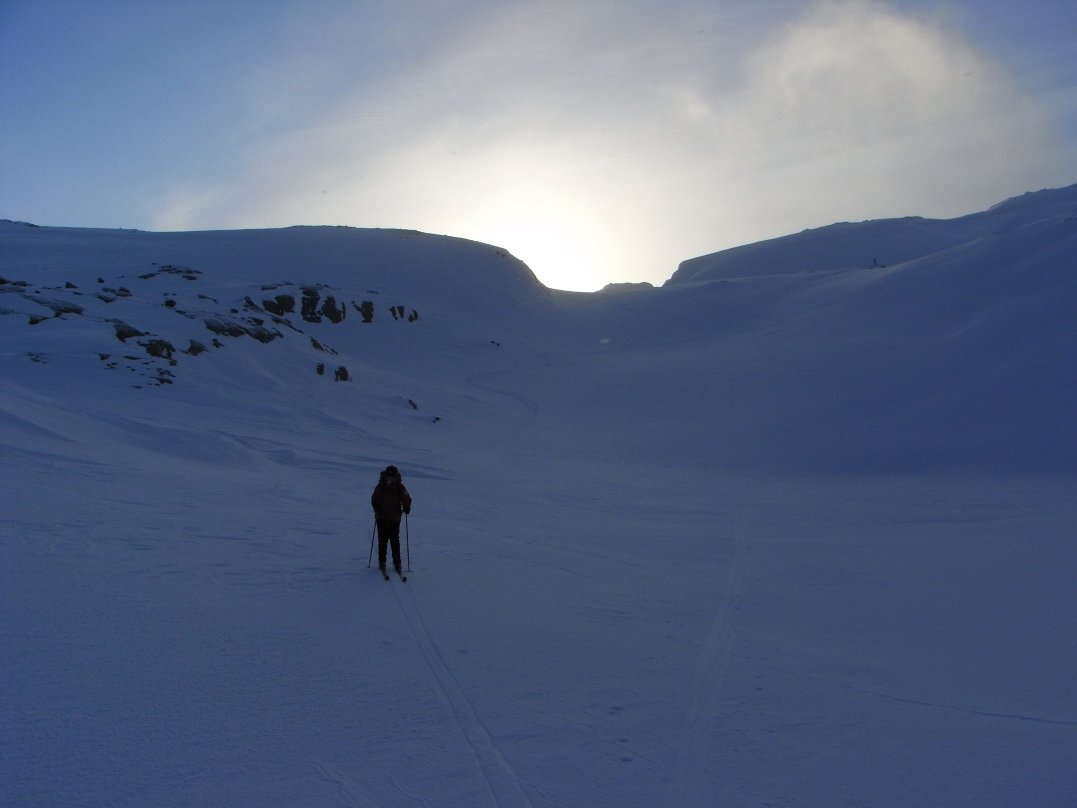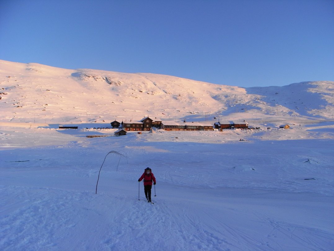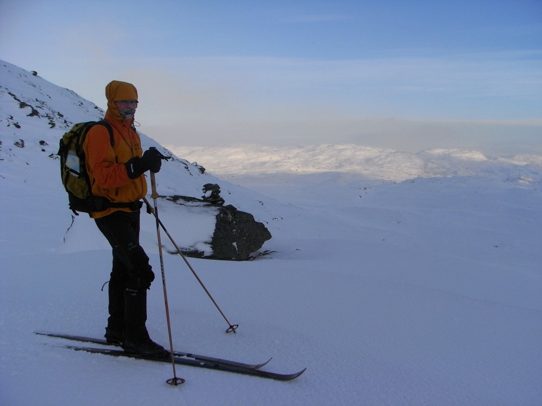 Desperat søken etter midtvinterslyset, skiføre og åpne fjellhytter førte oss til Haukeliseter. Værmeldingene var lovende, om enn noe kjølige. Etter at promillen hadde sunket til edruelige nivåer 1. Nyttårsdag dro Rødtopp og jeg oppover. Vi var fremme ved middagstider. Utpå kvelden ble det finplanlegging av morgendagens tur. Optimistiske og vel belåtne sovnet vi tidlig. 02.01.2009 Kistenut (1648 moh) Etter å sett på en fin soloppgang under frokosten smurte vi skiene og la ut over Ståvatn med kurs for Kistedalen. Smurningen varte 10 sekunder på den gamle harde snøen, men føret var trått så det gikk greit fremover allikevel. Når oppstigningen begynte måtte vi sette på feller. Inne i Kistedalen så vi at det hadde gått flere gamle snøras, men vi fant en farbar vei opp søkket på østsiden av høyde 1404. Landskapet var vakkert og lyset likeså. Vinden trakk med seg endel skyer vestfra og lagde snødrev. Vi krysset over vann 1449 og ség opp strake veien mot toppen av Kistenut. Det ble lunsjtid, men i snøfokket ble det ingen koselunsj. Vel oppe på toppen kom og gikk skydottene og vi fikk tatt endel stilige bilder. Så var det av med fellene og suse nedover. Føret var bedre i høyden, så det ble noen fine svinger inntil isskaren lagde problemer under 1200 moh. Turen tok ca 5 timer og var 17 km. GPS'en målte total stigning til 980 m. Nede på Haukeliseter var det godt med varm drikke. Til kvelden ble det en god treretters middag og planlegging til neste dag. 03.01.2009 Vesle Nup (1510 moh) Det var litt mildere, men vinden hadde tatt seg en god del opp i løpet av natten. Under frokosten fikk vi se en søt snømus sprette rundt rett utenfor vinduet. Vinden var ganske kraftig så vi ventet en stund etter frokost før vi startet dagens skitur. Planen for dagen var å gå mot Nupsegga. Vi satte på feller og gikk rett opp mot Lille Venaretjønn. På utsatte steder tok vinden godt tak. Vi valgte å gå mot høyde 1201 for å få litt oversikt. Jeg trodde Hardangervidda var relativt flat, men her var det småbuklete. Det gikk opp og ned i masse småsøkk og koller. Vi fikk den ønskede oversikten sammen med mye tårer i øynene. Toppene ved Store Nup og Nupsegga hadde tiltrukket seg skydotter og snødrev. Vesle Nup så ut til å ha ok vær så vi skiftet turmål. Vi trasket opp mot Vesle Nup fra sørvest. Bak en stor stein var det en grei lunsjplass og det smakte godt med litt energipåfyll. På toppen var det fin utsikt, men også kraftig vind – stiv kuling vil jeg tippe. Store Nup og Nupsegga kastet av seg skydottene et øyeblikk og viste seg frem i all sin snødekte prakt. Ned igjen tok vi litt mer direkte veg. Solen lagde fint fargespill på slutten av ettermiddagen. Vi brukte ca 4 timer på 14 km og 930 høydemeter. Øl smakte svært godt til trerettersen. Dagen etter valge vi å kjøre hjem via Rauland og studere sørkanten av Hardangervidda. Ett flott skue, men det er dårlig med nysnø.