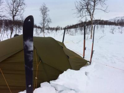 Som kjent planlegger vi et treff på Finse senere i vinter - og noen av oss planlegger ymse skiturer i den forbindelse. På chatten har diskusjonen gått att og fram om mulige planleggingsalternativer og turer - helst i Trøndelag. Men slik forholdene er der sør er det mer skogbrann (!) eller is enn skiføre. Vi fant derfor ut at sørlige delen av Helgeland burde være et godt alternativ - nærmere bestemt ved Fiplingvatnet og Bæråsen. Jeg er etter hvert blitt veldig godt kjent i dette området og har gått turen flere ganger både sommerstid og vinterstid. Vi har også hytte her. Den planlagte ruten ble også gått på sommeren for noen få år siden av meg og @TL her på forumet - den beskrivelsen finner man her. Her kommer altså noen få ord og bilder fra en kjempefin turhelg jeg, @graham og @Henrik Hadde nå denne siste turhelgen i januar. I grove trekk fulgt vi altså samme ruten som den gangen - med unntak av det var noe lengre i begge ender. Karene ankommer hytta på Torsdagen og etter en bedre middag - og mye jabbing utover kvelden - ble det noe langt utpå dagen før vi kom oss avgårde. Vi er i slutten av Januar og egentlig burde vi vel kanskje vært tidligere pån for å komme i gang i rett tid. Samtidig er det ikke noe stress siden vi har 2 dager på denne turen - som er omtrent 25-26 km De fleste bildene i denne rapporten er tatt av @graham Det er rimelig kald værtype. Østavind - og temperaturen varierer mellom minus 6 til ned mot minus 19°. Når det er på kaldeste er det lite vind, men en trekk er det jo. Værtypen har medført at føret er ekstremt hardt. Skare og is og de fleste steder bærer snøen selv en tung mann i skisko. Vi starter turen ved å kjøre en bil til Bæråseenden - og returnerer og starter altså skituren ved Ørnoddtjønna - for de som er lokalkjent. Det er møteplasser å sette bilene på og det er ingen fare for at det skal komme snø med det første Vi ser her tilbake og sørover - i mot Kvannfjellet - og bak der ligger også Tomasvann og Storelvhøgda - der vi startet forrige forumtreff. Det er virkelig en flott dag - og det har vært mange slike i det siste. Vi finner ut at det er best å gå med kortfeller denne turen. Om vi prøver å smøre går smurningen av i løpet av ganske kort tid. Vi går ca 5-6 km bortover Bæråsen før det begynner å mørkne og vi slår opp teltet på en høvelig plass. @graham lager en flott kuldegrop i forteltet så vi kan stå og lage mat og etter hvert ta av klær osv når vi skal legge oss. Gryteretten til @Henrik smakte fortreffelig. Vi lagde alt klart kvelden før - så det var bare å varme opp "klumpen i gryta" når vi skulle spise Et lite bål ble det også , men vanskelig å få det til å brenne skikkelig og lenge i den dype snøen. Det ble tidlig kveld i teltet. Nå vi holder på å køye ringer en kar som har sett bilene våre og som lurte på om vi var i nød i fjellet siden vi hadde bilene parkert der. Han hadde søkt opp navnet mitt etter bilnummeret... ***************************************************************************************************** Neste morgen var vi oppe i rett tid, men vi brukte uforholdsmessig mye tid på å smelte snø. Dette burde vi selvsagt gjort på kvelden, men det vet vi altså til neste gang og også noe med poenget med turen. Å få inn gode rutiner. Vi er i gang utpå formiddagen og har ca 2 mil med flott terreng foran oss. Mot slutten er det mer kupert og her har jeg surret med retningen et par ganger før, men mener det skal gå greit selv om det da vil være langt utpå ettermiddagen. Det er mørkt kl 1630. Uansett er det vei rett på nedsiden av der vi går på ski så ved krise kan vi gå ned til en vei og gå til parkeringen derifra. Et lite hint om hvilket flott turområde dette er. Vi har veldig god glid og festet og snøen er mye bedre oppå her enn lenger nede i starten av turen. @graham smører skiene Henrik i siget Mobildekning er det også hele veien Jeg klarer å knekke en stav her så de siste 2 timene blir ganske harde for min del - men jeg kan vel som vanlig unnskylde meg med at jeg er øyværing! På slutten av dagen blir terrenget mer vanskelig å finne frem i - snøscootersporene går i alle retninger og det er ikke noe mønster å finne. Vi må av med skiene og gå ned gjennom en skog og ned på en myr som jeg kjenner igjen - og derifra er det er plankekjøring rette veien inn mot der bilen står parkert. Men det er stupende mørkt når vi kommer frem. Temperaturen har gått betydelig opp underveis og er bare minus 3 når vi er fremme ved bilen - men betydelig østavind. Ved ankomst hytta på kvelden blir det badstu og dusj og masse hvalbiff med god drikke til. ********************************************************************************************************* Siste dagen - altså søndagen - benytter vi sjansen til å ta en tur oppi Simskaret. Statskog har en åpen hytta ca 6-7 km skitur opp fra vinterparkeringen for Børgefjell, og det kan være fint å strekke litt på kroppen etter den harde økten dagen før. Henrik og jeg helt i starten av turen. Det er veldig hardt og isete. Jeg velger etter hvert å gå uten feller og kliner noe voks under skiene, men de andre går med feller. Det blir hipp som happ. Kvigtinden ligger så flott i det fjerne der. For noen år siden var jeg på toppen der på dagstur fra sommerparkeringen. Vi ser Biseggskardet oppover. Det er minus 7° ute og noe vind. Det har ikke vært noen som har skrevet i hytteboken siden November i fjor, men dagsbesøkende har det nok helt sikkert vært her. Vi tar fellebilde med mobilen og med Graham sitt kamera samtidig - ikke tvil om hvilket som ble best Vi renner ned til veien igjen - de ca 6-7 km, på bare en times tid! Takk for en fin turhelg. Planlagt fikk vi også gjort!