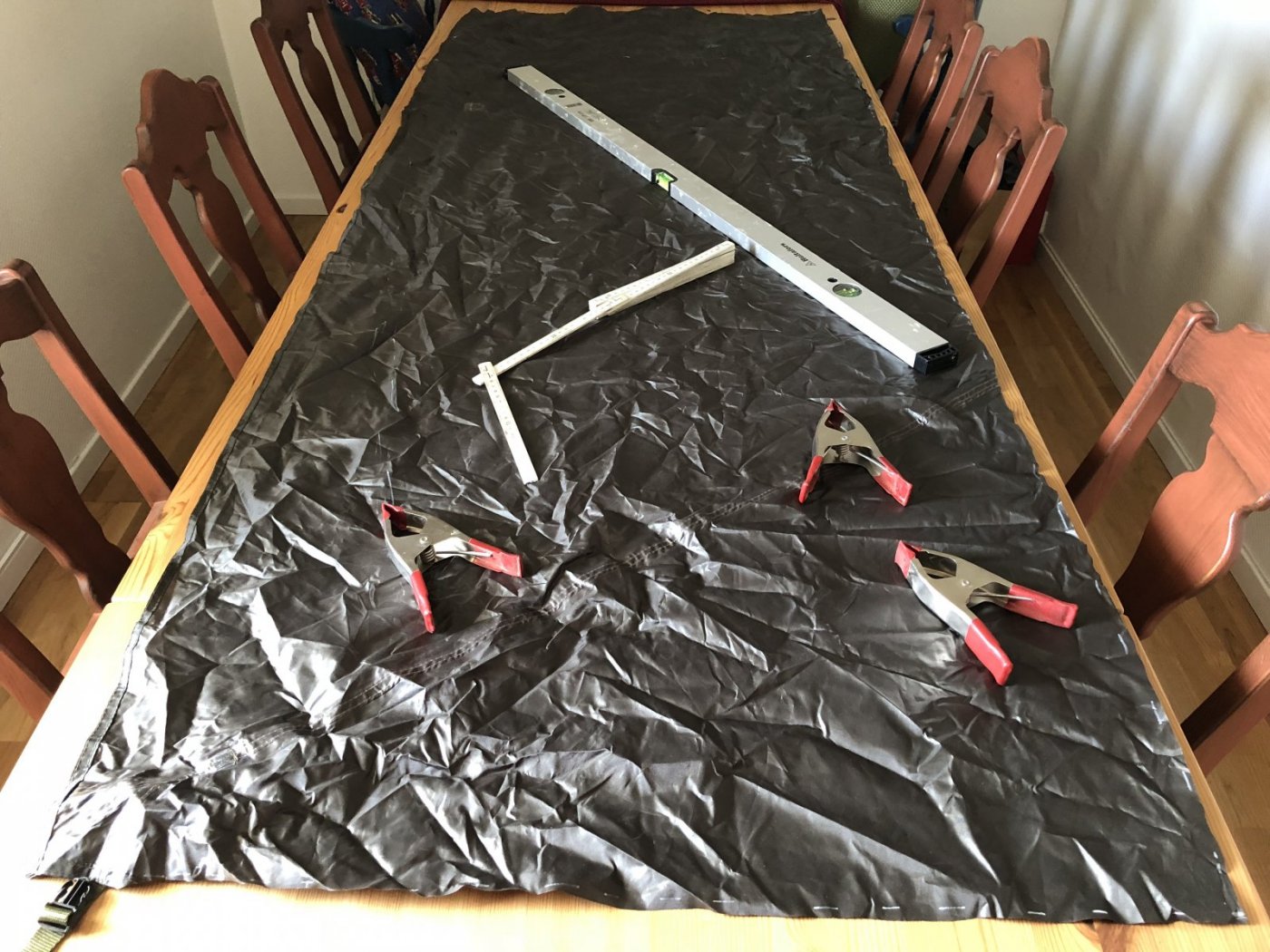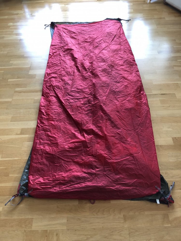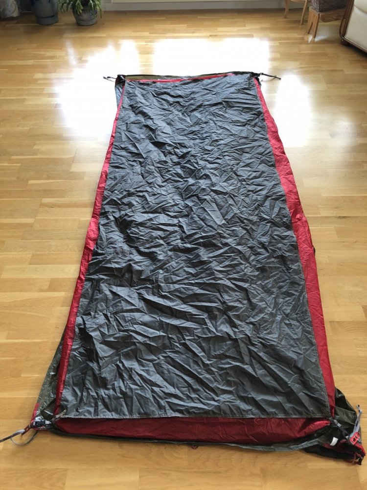 Bunnduk til MSR Hubba Tour 1 Siden jeg har fått nytt telt i hus måtte jeg ha en bunnduk til dette også. Bunnen i det nye teltet ser god nok ut som den er, men jeg bruker alltid bunnduk uansett. Fant fram teltet og rullet det ut på stuegulvet. Snudde det så det lå med bunnen opp og så var det enkelt å ta nødvendige mål. Fram med stoff og etter overføring av mål til duk var det bare å klippe i vei. Siden dette opprinnelig har vært en Lavvo bunnduk ble diverse klips og reimer fjernet og så var det hele klart for symaskinen. Etter et par- tre timer var det hele over og jeg satt der med en sprett ny bunnduk på 200 gr. Jeg pleier vanligvis å ha bunnduken pakket for seg selv, men denne gangen lagde jeg duken noen cm. kortere og smalere enn teltbunnens mål. Hvert hjørne fikk en påsydd hempe slik at den kan klipses inn på teltet og således pakkes og reises samtidig (vist jeg vil da) med teltet. Og slik ser det ut når bunnduken er klipset i teltet. Ikke helt sikker på at jeg kommer til å ha det montert, men skal prøve det ut før jeg eventuelt pakker det for seg selv.