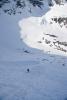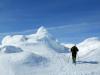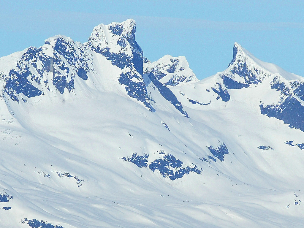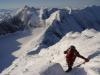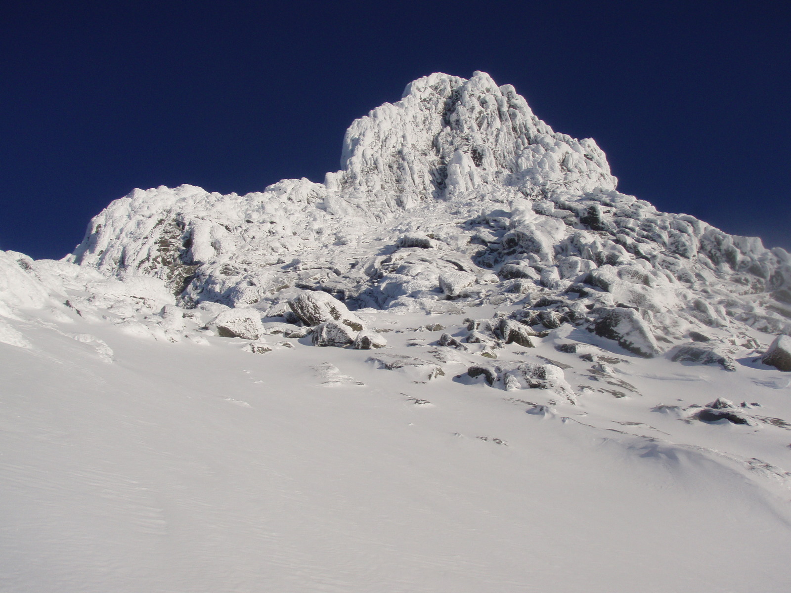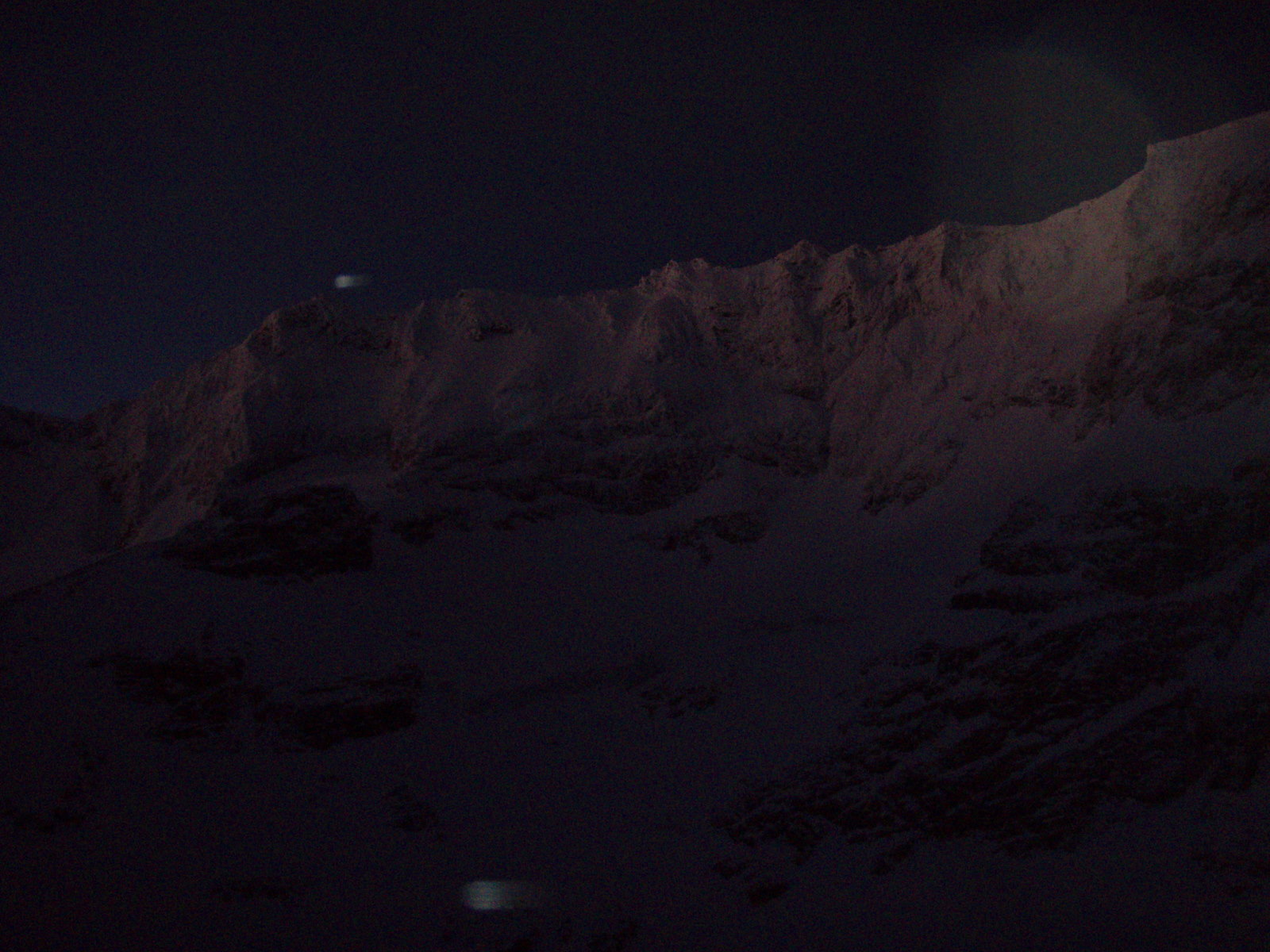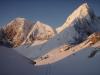 Store Skagastølstind, 2.405m (Helge og Coni, 24.01.2007) For en som meg som er glad i spisse tinder er Hurrungane det mest spennende område i Jotunheimen. Storen og naboene hans er imponerende tinder på sommeren, men de er enda mer fascinerende vinters tid. Det norske vinterlyset skaper praktfulle farger som pynter de bratte toppene enda finere. Etter noen sommerbestigninger vokste ideen i meg å prøve Storen på vinteren. Da var jeg nok ganske heldig at jeg møtte Helge på 4000 toppen Zinalrothorn i Sveits. Han hadde nemlig også planer om å klatre på Norges tredje høyeste topp i den kalde årstiden. Skal man lykkes med et slikt ”prosjekt”, må alt klaffe. Ikke minst været. Jeg har sjekket været på Turtagrø hver dag på noen uker. Og det har nesten ikke skjedd en dag med fint vær. Siste mandag sjekket jeg værmeldingen på nettet, snakket med værtelefonen og oppdaget et værvindu på onsdag. Det var meldt solskinn hele dagen over hele Jotunheimen. Jeg ringte Helge og kvelden etter (tirsdag) satte vi i bilen i retning Skjolden. Turen begynte med flaks. Vi rakk fergen fra Lærdal 2 minutter før avgang. Men bare en time senere kom det første tilbakeslag. Da vi satt opp teltet i Fortun snødde det tett. Dårlige utsikter. Vekkerklokken ringte 3:30, ikke en gang 4 timer etter vi har langt oss. Det var tøft å stå opp. Vi, eller bilen vår, klarte den første utfordringen, veien opp til Turtagrø. Kl 5.00 var vi i gang. Først gjaldt det å finne en vei opp til Tindeklubb hytta. Grunnet snørasfaren under samme hytta valgte vi å gå en alternativ rute. Vi gikk opp skråningene mot Dyrhaugstind for å traversere til NTK hytta. Månen glitret med sitt fravær, men natten var så klar at man kunne ane toppene rundt omkring. Først og fremst Storen. Det var faktisk utrolig fint å gå i mørket. Klokken har passert halv åtte når vi sto under bratthenget opp til breen. Dette henget er en typisk raskandidat. Vi kunne ikke gå den før dagslyset ga oss muligheten til å bedømme skråningen. Det viste seg heldigvis at snøkonsistensen var veldig kompakt og tryg. Vi krysset skråningen oppover, en og en. Så var det bare å spasere over breen før vi nådde bandet. På bandet var solen i ferd med å slå skikkelig gjennom. Fargene på toppene var så utrolig at vi begynte nærmest å juble. Dyrhaugstindene var oransje, Jostedalsbreen farget rosa. Og så Storen. Den var hvit, helt hvit. Et uvanlig syn for oss som kjenner Hurrungane fra sommertiden. Vi var for late til å grave fram inngangen til hytta og forberedte oss til toppetappen ute. Det blåste ikke en millimeter/sekund, så tingene vi ikke trengte på toppen lot vi bare ligge foran hytta. Etter å ha skiftet skistøvler med fjellsko gikk vi til verks. Først opp snøskråningene. Forholdene var forbausende bra. Det var litegran slit å lage spor men det kunne ha vært mye verre. Allerede kl halv tolv var vi på begynnelsen av det første svapartiet. På sommeren tenker man ikke så mye på tau på det stedet. Men på den dagen var det annerledes. Storen var helt snøhvit, men snøen var ikke tykk nok overalt slik at vi måtte etterlate noen skrapspor på svaene. Det var litt ekkelt av og til. Det viste seg at veien til innsteget var litt mer krevende enn forventet. Men vi var optimistisk allikevel. Solen skinte som bare det. Og selv om det var kaldt i lufta, skapte solen påskefølelser. Og det var så fint. Spesielt utsikten til Riings- og Austabotntindene. Selv om vi kom fort oppover, gikk klokken. Vi nådde innsteget av Andrews renna kl ett. Klokken 2 skulle vi stå på toppen, i hvert fall etter planen. Men den isete og skumle Andrews renna gjorde om på tidsplanen vår. Heldigvis var Helge i storform. Han ledet de to fulle taulengdene opp til varden. Grunnet is og snø var det helt umulig å bruke noen av takene. Hele klatringen var basert på stegjernskraping og isøkser. Sikringen foregikk på friends av alle størrelser. Og Helge måtte ta i bruk hele racket for begge av taulengdene. Kl 15:30 kom det store øyeblikket. Helge kom opp renna, måket seg opp de siste ti meter til topps og hentet meg etter. Målet var nådd. En drøm har blitt realitet. Og stemningen kunne ikke vært bedre. Fortsatt var det ingen sky på himmelen. Lyset fikk farger igjen, praktfull kveldsstemning. Men det var altfor lite tid for å nyte øyeblikket. Det gjaldt bare å komme seg ned så fort som mulig. Vi gikk ned til helikopter slyngen. Eller til det stedet hvor vi tenkte den skulle befinne seg. Men etter fem minutters graving ga vi opp og la en gigant slynge rundt en blokk og fyrte oss ned. Akkurat i solnedgangen. Nok en rappell, noen traverser og skumle nedover klatring partier og vi var tilbake i snøflanken. Vi rakk det akkurat. Men nå ble det mørkt. Ingen problem, nå var vi i sikkerhet. Vi løp ned til bandet, pakket sekkene våre og kjørte ned til Turtagrø. Denne gangen med månen over oss. Klokken halv ti på kvelden var vi tilbake på Turtagrø. Dønn sliten, fysisk og psykisk, men så fornøyd. Så utrolig fornøyd.