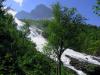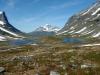 Så kom da endelig august med mindre innsekter og mørkere kvelder og årets begivenhet sto for turen - venneturen fra Storlidalen via Kårvatn og Innerdalen tilbake til utgangspunktet. Men det skulle ikke være bare enkelt; Etter en sommer med hoven ankel og minimal turaktivitet måtte jeg benytte de siste par ukene før avreise til å gå inn nye sko ved turer i nærmarka og så braket det løs med en god dose bilkjøring i turuka. Mandag 64 mil t/r Nord-Trøndelag, tirsdag 50 mil til Oslo, onsdag t/r Gardermoen og torsdag ca 43 mil til Storlidalen med retur til Oslo søndag - ser ikke tungt på en liten biltur, men dette ble i drygeste laget. Men tilbake til fjellturen som startet med en biltur over Rondevegen og Dovre til Storlidalen i Trollheimen hvor jeg rakk å installere meg i Bortistu med en pils før resten av følget kom fra Trondheim. Hjertelig gjensyn og et kjempemåltid med bassturøkt lammelår som hovedingrediens - skal det være luksus så gjelder det å slå til - og rødvinen var heller ikke ille Turen startet neste morgen(eller heller formiddag) med en liten spasertur langs anleggsveien inn mot Tovatna før vi dro opp i terrenget og fulgte merket sti inn til det innerste av Tovatna. Været var sånn passelig med lave skyer og enkelte tendenser til yr - men insekter var slettes ikke noe problem. Ned Gammelseterdalen var den merkede stien omlagt siden forrige gang jeg gikk der, og fulgte nå det gamle veianlegget på vestsida av Toåa. Veianlegget ble visstnok påbegynt ca. 1847 og hadde som mål å få til en kjerrevei mellom Oppdal og Todalen etter som oppdalingenes nærmeste forbindelse til sjøen gikk ned til Todal. Anlegget ble etter noen år avsluttet, men restene er godt synlig, og det er imponerende hva som ble utført i de bratte fjellsidene. Etter at vi krysset Toåa på ei ny bru ble terrenget temmelig fuktig, og det ble slitsomt å krysse seg frem og samtidig forsøke å unngå å fylle skoene med myr. Men vi kom da etter hvert frem til ei ny bru som igjen bragte oss over på vestsida av elva der gården og turisthytta på Kårvatn ligger. Men vi kunne ikke dy oss, noen av oss måtte forsøke et bad i elva og vi gutta dro nedover elva og badet der Nauståa kom inn i Toåa. Frisk opplevelse, men herlig etter svettingen gjennom myr og jord. Og mindre herlig var det heller ikke å komme til gårds og en kald pils. Maten måtte vi ordne selv, men med godt lager av hermetikk i selvhusholdet hadde vi ingen grunn til å klage. Med 12 stykker i følget ble det fullt på fellesrommet og det var godt besøk så det ble plassert folk litt rundt omkring, men alle fikk et sted å sove. Neste dag skulle vi gå over Bjøråskaret til Innerdalen så det starte igjen med noen km langs en vei før vi dro opp i terrenget. Men denne dagen var solen med oss, og det ble flere avslappende pauser oppover bakkene. Vegetasjonen følger med langt oppover, og etter som utsikten vider seg ut kan vi se både sjøen og innover i Trollheimen. Et herlig syn i alle retninger. Det var mye folk i fjellet, og på toppen av Bjøråskaret var det tilløp til køsitting rundt omkring. Men utsikten rettferdiggjorde trengselen - her var det mye flott fjell å se Det var bare et lite skår i gleden; En person var savnet i fjellet og vi kunne se - og høre - helikopteret som drev søk. Den savnede var visstnok slektning av vertskapet på Renndølsetra der vi skulle bo. Nedover fra Bjøråskaret er det bratt, og lårene fikk føle det etter hvert. Varmt ble det også etter hvert, så da vi var nesten nede i dalen ble det igjen bading i en kulp i Renndøla - riktig oppfriskende, men denne dagen med et varmt svaberg å gå opp på. Stort bedre går det ikke an å få det etter en dag i fjellet. Igjen fikk vi ferdiglaget mat, og rømmegrøten var så god at det igjen ble i meste laget - dette var definitivt ikke en slanketur Etter erfaringen med myr og jord i Gammelseterdalen ble det til at vi gikk om Langvatnet i stedet for via Innerdalsporten tilbake til Storlidalen på søndag. Fordelen med dette valget var at vi slapp å vasse i søla, men til gjengjeld var stigningen i starten saftig nok. Heldigvis lå stien i skygge i starten, for sola skinte som dagen før, og solhatten måtte frem for å beskytte et noe hårredusert topplokk Turen forløp udramatisk, og etter dagens siste rast valgte jeg å takke for meg og sette opp farten ned mot bilen. Tanken på 43 mil alene i bilen fristet ikke. Eneste bommert var at jeg antok at jeg kunne finne drikkevann langs veien ned fra Tovatna - men den gan ei, jeg gikk helt frem til bilen før jeg fant vann uten å måtte klatre ned til en nesten uttørret bekk. Tok Rondevegen tilbake også etter som dette er kortere enn om Dombås, men droppet besparelsen ved å kjøre over Lygna og holdt meg til E6 og anleggsarbeidene både på Mjøsbrua, sør for Hamar og i Ullensaker. Turen hadde vært topp fra start til ende, og jeg har neppe gått Trollheimen/Innerdalen for siste gang.