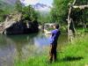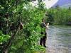 Loffet litt rundt i Innerdalen i sommer og heldigvis hadde turfølget mitt bedre kamerautstyr enn det mobilen min kan varte opp med. Her er noen bilder fra turen som foregikk helt i starten av juli. Været var knallbra hele tiden og det ble mye tid til fisking og leirkos og trasking opp og ned dalstrøket. Det ble av diverse grunner ikke noen sjanse til noen toppturer, men det har jeg lovt meg selv å ta igjen neste sommer Vi hadde booket Raudhytta, den lille hytta som ligger litt ovenfor resten av Renndølsetra, og sov der første natten. Ren luksus var det, men når det er sagt så var det jo telting, fisking og småvandring rundt i området som var planen. Så dagen etter fant vi en fin plass til teltet og valgte å ha en slags basecamp der. Dette var ikke lenger unna setra enn at det gikk fint å gå til setra for å kjøpe rømme som vi hadde til ørreten. Jeg hadde tatt med litt alufolie som fisken ble bakt i, og sammen med rømme og potetmos så ble det et herremåltid ut av det Må innrømme at det ble et par turer bortom setra for å kjøpe vafler med rømme og syltetøy også. Noe så fantastisk godt har jeg sjelden smakt...