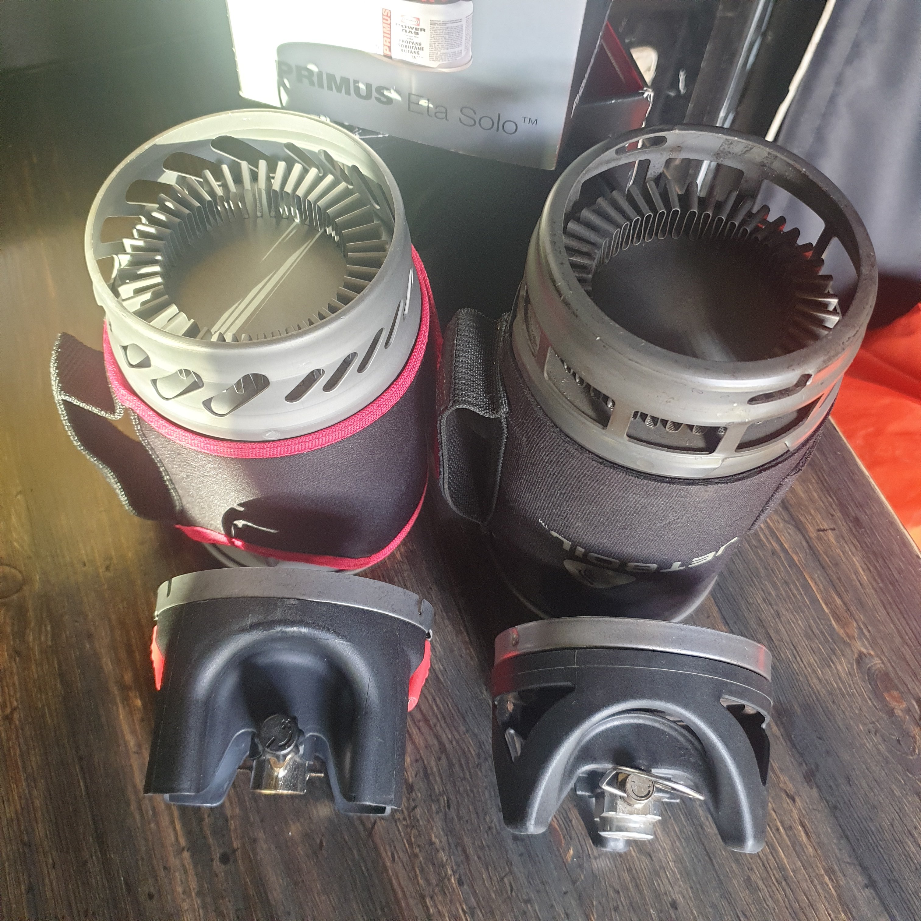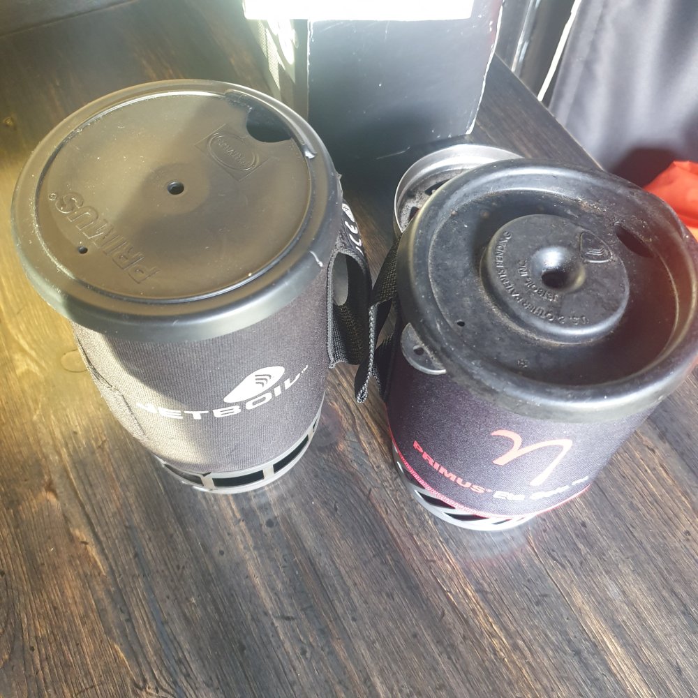 Om det er andre som gjerne skulle ha oppdatert sin gamle Jetboil, eller Primus, har jeg nettop hatt full service på mitt eget system. Uten at reservedeler finnes i dag i 2024. Som kjent smuldrer og sprekker diffuseren på brennerhodet relativ kjapt, og flere har byttet disse, flere ganger, sammen med tenneren. Tenneren gikk først i 2013 og jeg fant uorginal del på VPG. Nytt brennerhode ga ikke opp før i år, faktisk. Selv etter omtrent ukentlig og daglig bruk, og mer enn (typisk 2min) vannkoking siden 2009. (Jeg oppdaterte min Jetboil etter kort tid, med ny ventil, så i dag tilsvarer den en Flash i stedenfor en Zip. ) Primus lagde komponenter til den første Jetboil, fra 2009 ca. Og tilgang på reservedeler stoppet (i hvertfall senest) i 2014. Så her er vi: Primus ETA Solo er så og si samme kokestystemet som Jetboil "classic". Brennerhode og ventil passer rett over på Jetboil. Tenneren passer 100% Jetboil sin potstand, passer rett på Primusen, Neoprene sleeve passer på begge Lokkene passer om hverandre Koppene passer om hverandre med små modifikasjoner. En dremel på primus koppen så har du 2stk til Jetboilen. Notis om brennerhodet: Primus har valgt en skive rett under brennerhodet, og Jetboil har valgt låseskive under "chassiet" for å sikkert plassere brennerhodet. Primus sin løsning eliminerer all rakkel og slark, men løfter brennerhodet noen millimeter. (Ergo, noen gassbokser kan bli trøblete, foreløpig kun Biltema og sine.) Forbedringer: En forbedring jeg vil gjøre er; heat wrap på den isolerte delen av tenneren, som alltid sprekker. Ligger alt for nærme brenneren og tåler ikke varmen jeg utsetter den for. Der trengs en 6-8mm tube for å hjelpe på levetiden. Så får du tak i en ETA solo, har du deler til din Jetboil.