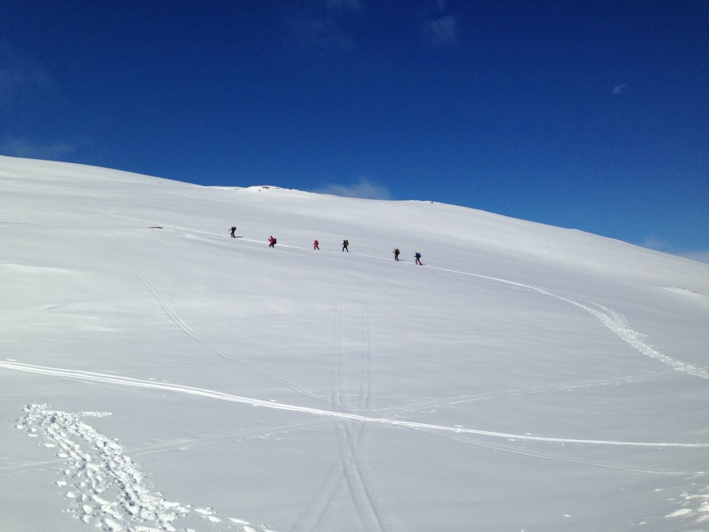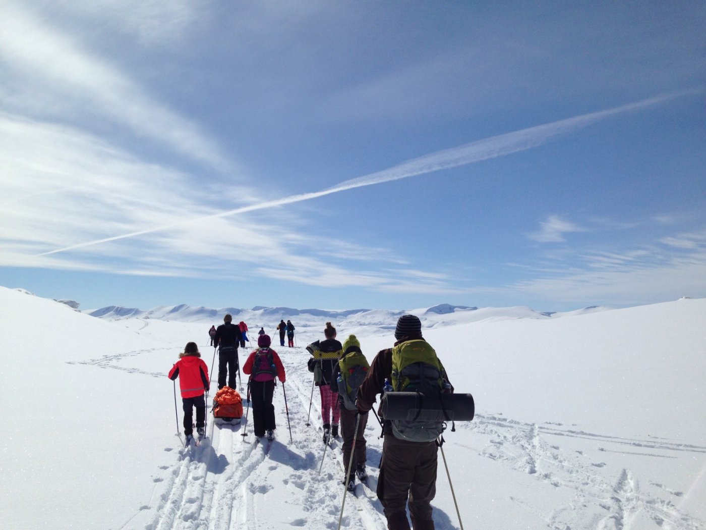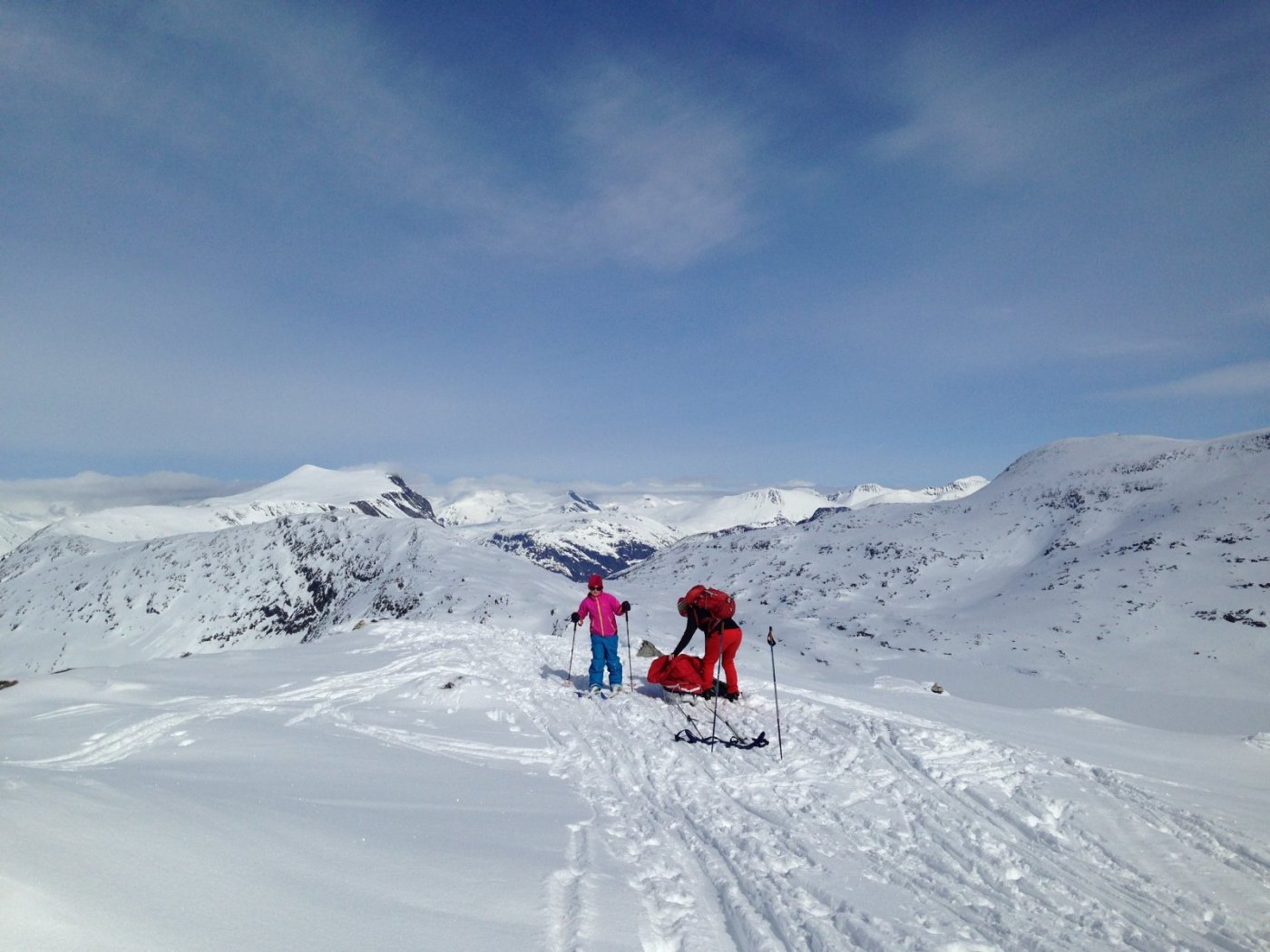 April 2016, og ein relativt stor gjeng vaksne og born er samla på parkeringsplassen ved Grotli Høgfjellshotell på Strynefjell. Det er klart for skitur med barnas turlag til Danskehytta. For underteikna si hushaldning er det også siste tur med barnas turlag, både som turleiar og deltakerar. Kids veks til og livet endrar seg. Grotli, omlag 900 moh. For å spare små føter og foreldre med tung oppakning for litt høgdemeter, nyttar me skitrekket og tek om lag 230 høgdemeter utan det heilt store kaloriforbuket. Samling på toppen av trekket, ein liten prat om å ferdast som gruppe, før me labbar innover fjellet. Foto: Tone drabløs Med nødprovianten lett tilgjengeleg Dei fleste har hatt nokre timar kjøring før ankomst Strynefjell, og det byrjar bli nokre timar sidan mat. Første pause vert av di avvikla ganske tidleg på den omlag 12 km lange turen frå Grotli til Danskehytta. Turen inn går via Tjerringtjønne og langs Fremste Vikvatnet. Mot sydvest Varmt og godt, på grensa til for varmt meinar enkelte. Lag etter lag vert effektivt skrella av, og solkremen får bein å gå på. Klaginga får imidlertid forbli usagt, med born på tur er det tross alt betre med hyppige drikkepauser enn ein tilværelse dominert av skibriller, vind midt i fleisen og raske måltid i ein vindsekk. Foto: Tone Drabløs Endeleg framme ved Danskehytta, beliggande 1450 moh. Den siste lille kneika fekk sette punktum for dagen, og både små og store har fått utfordra seg litt i sidebratt terreng, med og utan pulk, dog ikkje meir enn at gleda er bevart. Vel framme. Sosialt og mat. Rause mengder godteri og sukkerhøge kids, nett som det brukar vere når me er på tur. Når sukkeret avsluttar sin verknad, er det imidlertid ein nokså trøytt og fornøgd gjeng som sloknar, og dei omstendige hysjerundene ein nokre gonger må til med trengs ikkje i kveld. Neste dag skal me utigjen til Grotli. Vergudane har vore lydhøre, og vindstilt og lettskya gjer at me kan gå høgt utatt, over Helleggi. Denne ruta fører ein opp på drygt 1660 moh, og gir vakkert utsyn mot Tafjordfjella og Sunnmørsfjella i nord og vest, og Breheimen med Jostedalsbreen og Skridulaupen dominerande i syd. Utsikt mot Nord Gjengen i drivet. Tone legg Danskehytta under seg. Eg legg fornuftige spor opp ryggen mot eggi, men spreke kids synes dei er i overkant slake og durar rett opp. Har ein blitt gammal? Den einaste som fyl dei er Tone som kjem etter med pulk. Hint. Nordover Foto: Tone Drabløs Syd - sydvest Bortover Helleggi er det flatt/småkupert eit stykke, før ein kjem til det punkt der egga knekk markant nedover att. Der ventar ei lang og slak nedkjøring, perfekt for fjellski. Godt føre gjer det til ei sann glede, også for dei som ikkje er så komfortable på fjellski i utgangspunktet. Klar ferdig kjør! Siste km mot Grotli går som ein leik etter den livgivande utforkjøringa. Dei preppa løypene i skiannlegget, med hopp og moro, står som ei verdig avslutning for ei flott helg. Takk for turen!- 4 svar