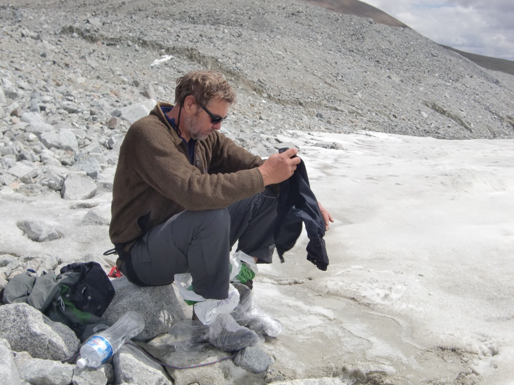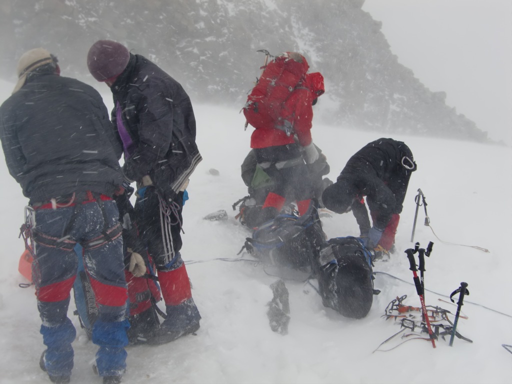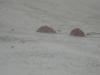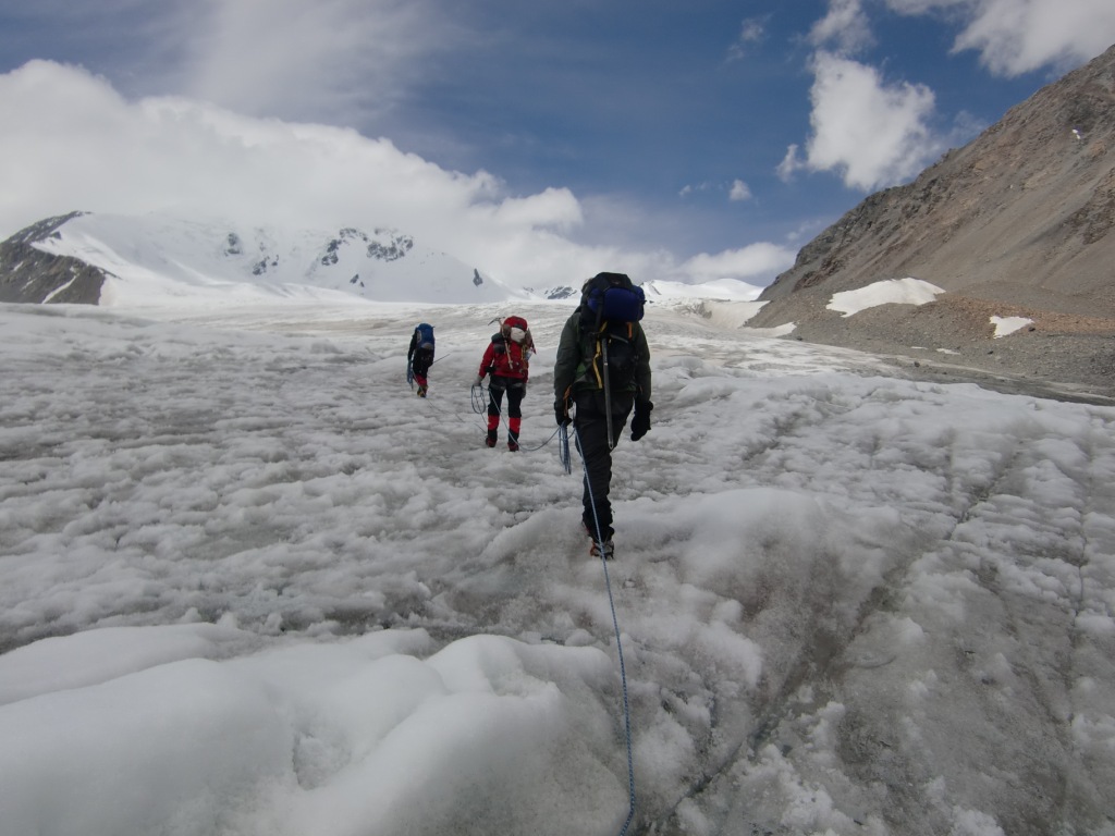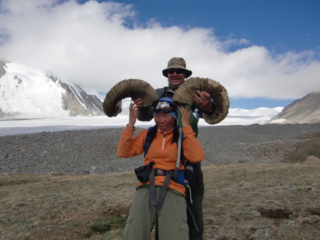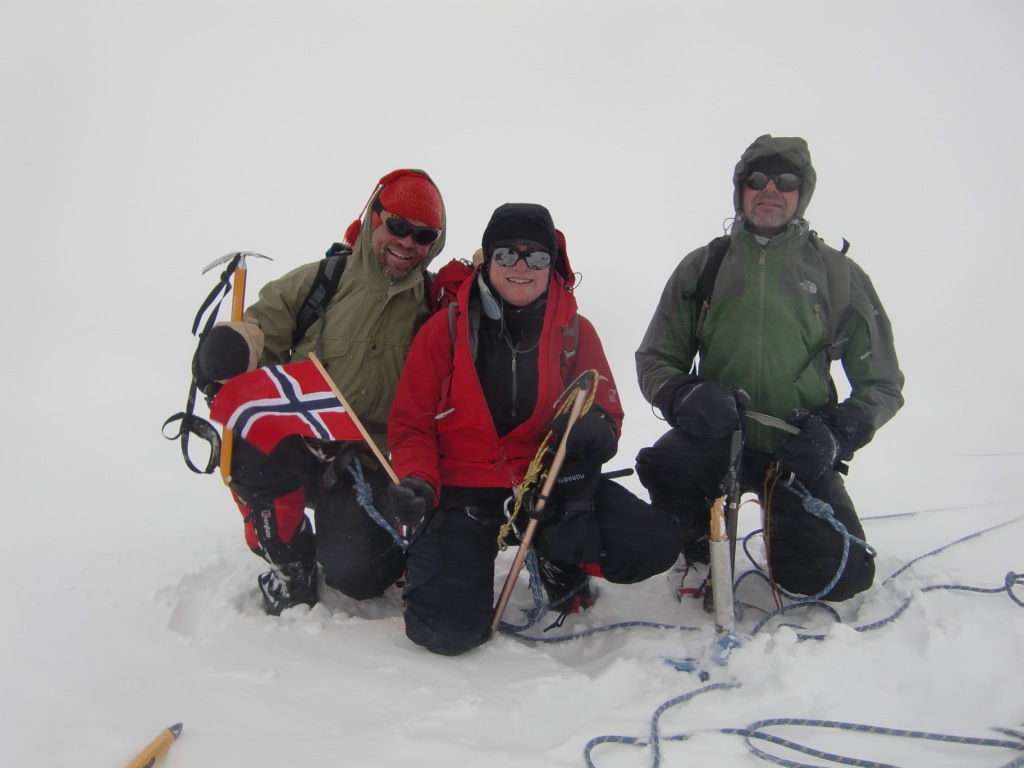 Tre nordmenn brukte sommerferien til å reise østover og besøke mongolske fjell med isbreer og minusgrader. Vi startet med stil på forretningsklasse på flyet til Ulan Bator, men det var ingen spesialsørvis for bagasjen. En av bagene våre ble borte og kom ikke dagen etter heller, så Tor måtte improvisere med lånte soveposer og liggeunderlag, samt egen patent på plastsko. Etter å ha flydd østover gikk turen vestover igjen med fly i 3 timer til den lille byen Olgii. Herfra var det 220 km kjøring i terreng med en russisk minibuss beregnet for terrengkjøring. Bussen så svært gammel ut og hadde et design fra 2. verdenskrig, da disse ble benyttet som ambulansekjøretøyer. I virkeligheten var den ikke mer enn 5 år gammel, men her hvor det omtrent ikke er veier og man er henvist til kjøring i terreng, sliter det på bilene. Mongolia har lite veier utenom byene, så her kjører man stort sett fritt i terrenget. Dessuten er det verdens tynnest befolkede land, med under 2 mennesker per kvadratkilometer i snitt. Når da nesten halvparten av innbyggerne bor i Ulan Bator, sier det seg selv at den norske landsbygda kan virke ganske bymessig i forhold. Da bilturen var slutt, gikk vi i gang med de 18 kilometerne innover til base camp(3100 moh). En liten kamelflokk bar alt tungt, så vi kom greit inn. Amerikaneren Bob som ble med i følget var nok ikke så sprek som han trodde og kom inn på hesteryggen til slutt. Denne turen var nok så absolutt i overkant for en 80-åring med dårlige knær. Fra Base camp gikk vi en akklimatiseringstur til Malchin(4027 moh). Neste dag gikk turen opp til ABC oppe på breen, ca 3700 moh. Tor fikk forsøkt sin nye patent på plastsko. De lette vandre-skoene ble surret inn i krympeplast og plastposer før de fikk stegjernene på. Breen oppover var full av skumle sprekker, men de var stort sett synlige, så det gikk greit. Gangaamaa, vår mongolske fjellfører har tatt folk på tur her oppe i mange år og var lokalkjent. Likevel ble det mye slalåm-gåing mellom sprekkene oppetter. Vel oppe i ABC ble det veldig barskt etter hvert, men vind, snøføyke og tåke. Vi ble liggende en dag i teltet og vente på bedre vær, men det var ikke forhold for å forsøke seg. Andre morgen i ABC så ikke særlig bedre ut, så vi var i grunnen innstilt på å gå ned, da Gangaamaa plutselig mente at vi burde forsøke. Et stykke ovenfor ABC ble været dårligere igjen, og vi fikk 2 valg: Gå mot Khuiten med mulighet for å nå second step, men ingen mulighet for toppen, eller å gå videre innover på breen til vennskapstoppen Nairamdal(4180 moh). Vi syntes det var bedre å få med en annen topp enn å måtte stoppe midt på et vanskelig punkt under Khuiten. Turen opp til Nairamdal gikk ganske greit opp noen snødekte partier på breen, men litt klyving og baksing i løssnø de siste metrene mot toppen. Nairamdal er den vestlige slutten av Mongolia, og toppen er treriksrøys mot verdens største land arealmessig og verdens største land i folketall. Ned igjen ble været enda verre, med dårlig sikt og hylende vind. Ingen mulighet for å se bresprekker, så vi datt stadig igjennom, men heldigvis ikke lenger enn til livet. Denne breen var ikke særlig trygg nei. Når vi så hvor barskt det var opp til Nairamdal som ikke er noen særlig bratt topp, er vi glade at vi ikke forsøkte oss på Khuiten Uul under de rådende forhold. Vind og nedbør ville nok gjøre denne toppen vanskelig og utrygg i flere dager fremover. Vi så blant annet et stort ras som gikk fra toppen etter uværet. Khuiten Uul er fra ABC en lang snøbakke på stort sett under 50 grader helning, med enkelte partier med 60-65 grader helning. Oppe på topp-ryggen er det et parti på ca 150 meter som er farlig i dårlig vær. Her er smalt og vindutsatt og langt og bratt ned på begge sider. Det hadde vært 3 ekspedisjoner tidligere i år til Khuiten. En hadde snudd tidlig som oss, en ire vi traff hadde vært 20 meter fra toppen i white-out og turte ikke mer, mens en nepalesisk ekspedisjon hadde stoppet 75 meter fra toppen, også i dårlig vær. Så denne toppen kan tydeligvis være vanskelig. Det ble en heller sur affære å pakke ned ABC før vi gikk ned. I slike stunder lurer man virkelig på hva i alle verden man bruker sommerferien på. På vei ned fra BC kom godværet, så det ble i alle fall noen fine bilder fra den siste dagen i høyfjellet. Tilbake i Olgii hadde Anneli en stor opplevelse da hun fikk fikset neglene i den lokale skjønnhetssalongen, mens 5 mannfolk sto lenge utenfor og ventet. I Ulan Bator var Tors bag ankommet, så da ble det kransekakefest. Dette er første gang jeg reiser hjem fra en skikkelig ekspedisjon uten å nå toppen. Det var ingenting å utsette på våre lokale hjelpere fra Mongolia Expeditions, vår fjellfører Gangaamaa, som nylig var hjemkommet fra Himalaya etter å ha besteget Everest som første mongolske kvinne, eller noe annet i opplegget. Det eneste måtte være å ha flere dager tilgjengelig for toppstøt Været var bare usedvanlig vanskelig, og det er vrient å gjøre noe med. Man setter ikke livet på spill, så gal er man ikke. Stor takk til Tor og Anneli for svært hyggelig selskap på reisen. Edit: La til noen flere bilder
