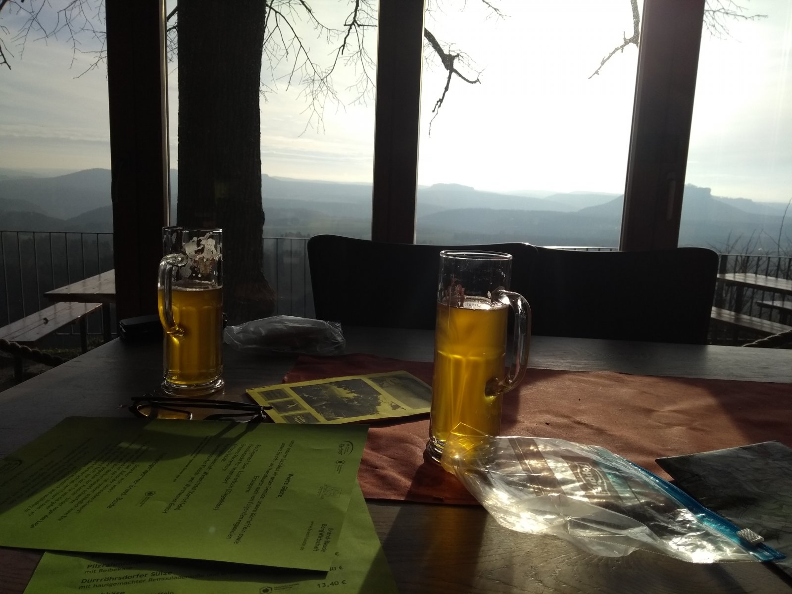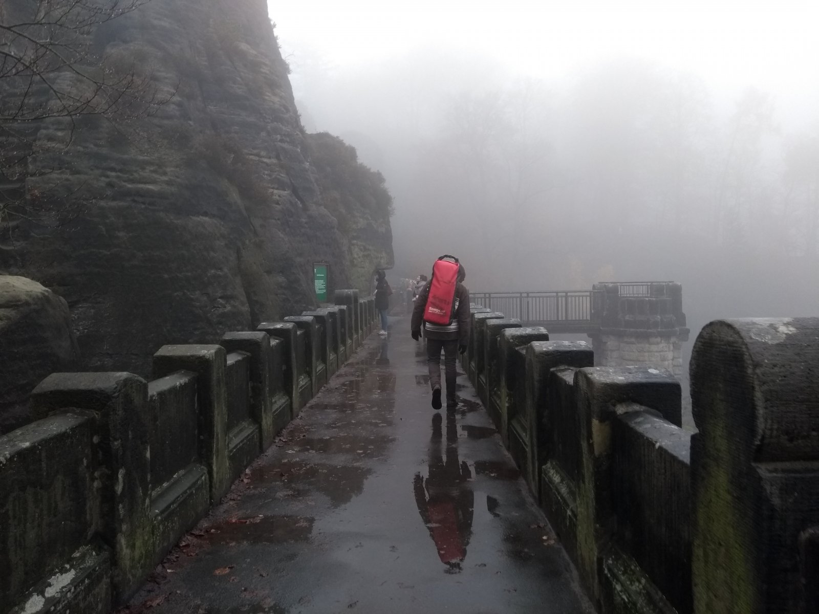 Har du vært i Tyskland, Saxony for langtur? Malerveien er basert på kulturhistorie av Kunst. Tallrike kunstnere tok seg opp over malerveien - en turvei i Elbsandsteingebirge. Caspar David Friedrich brukte motiver fra Bastei i sitt bilde Felsenpartie im Elbsandsteingebirge. Dette er mitt julkaleder innlegg. Regler: Å sove ute, ingen bålbrenning, bare kjøkkenutstyr, og bare liggeunderlag pluss puse. Drikkevann bare fra kilder eller fra elver. Og minst 3 til 4 mil per dag. Det var kjempe flott med nesten UL-ryggsekken: 13 kg hel inklusiv Planlaget var 5 dager med temperaturen -1 / +2 grader og ett dag regn. Vi begynte turen i byen Wehlen, 40 km øst fra Dresden og gikk over Festning Königstein og Squirl, til Pfaffenstein. Ikke så værst med 2.4 mil og 5 timer med pauser. Etter 12 timer pause med lukket øyene gikk reise videre. Så lang så mulig. Og vann fra hunde-kilden var fantastisk Andre dagen gikk vi helt sti sørsida elva, ganske lang ser GPSen. Med 1200 hm opp og 600 ned og 3.2 mil. Trede dag gikk vi hele nord-vest side og hadde faktisk blå himmelen. Vi bestemmte oss etter 8 timer at vi er nok frisk å gå i mørketida til en stor vegg av naturlig sandsein som heter Teufelsmauer. Der var vi over natt i nasjonalparkens "boofe". Detter er steder med tillatelse til sove ute i parken. Det var lengste tur idag med 4.2 mil. 4. dag kommet vi til fine plass som heter Brand. På tysk betyr Brand å har mye Øl- tørst. Deretter gikk vi igjen 1000 hm opp og 300 ned med 3.6 min . 5. dag litt våt været men ganske var med 6 grader, når vi kommet opp til turiststedet nummer 1 : BASTEI. - etter 1.6 mil vi kommet til start igjen og fyllte 15 mil - 150 km TAKK for turen!