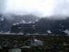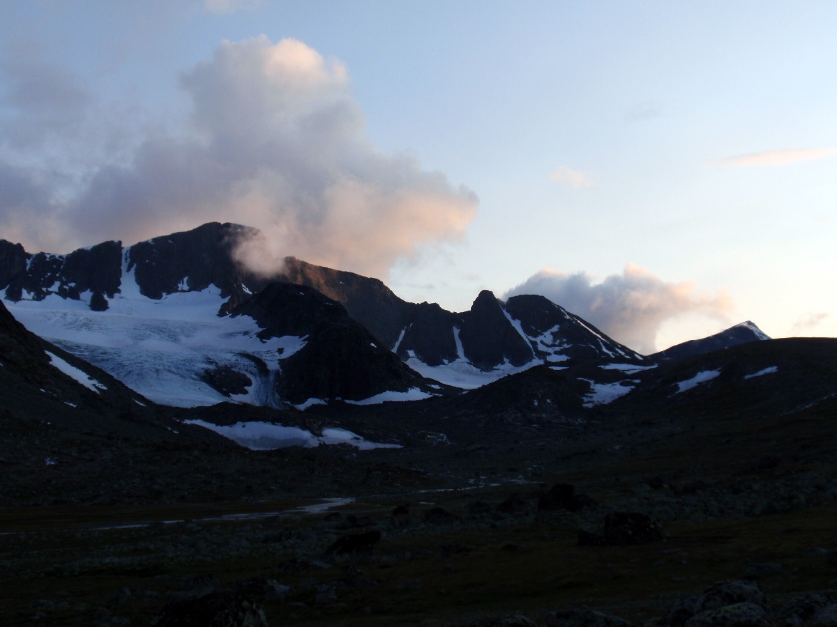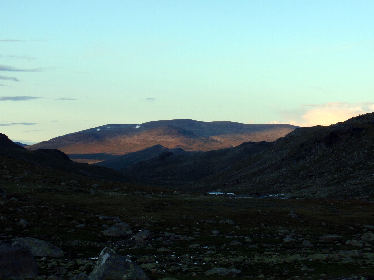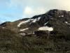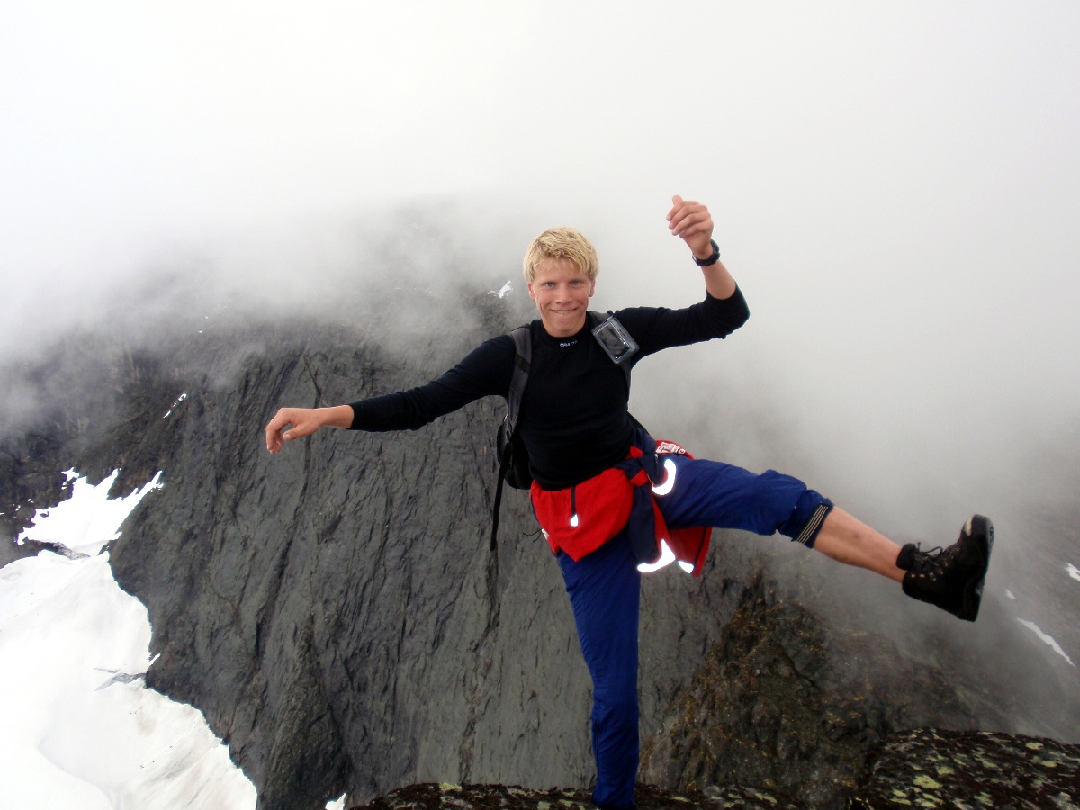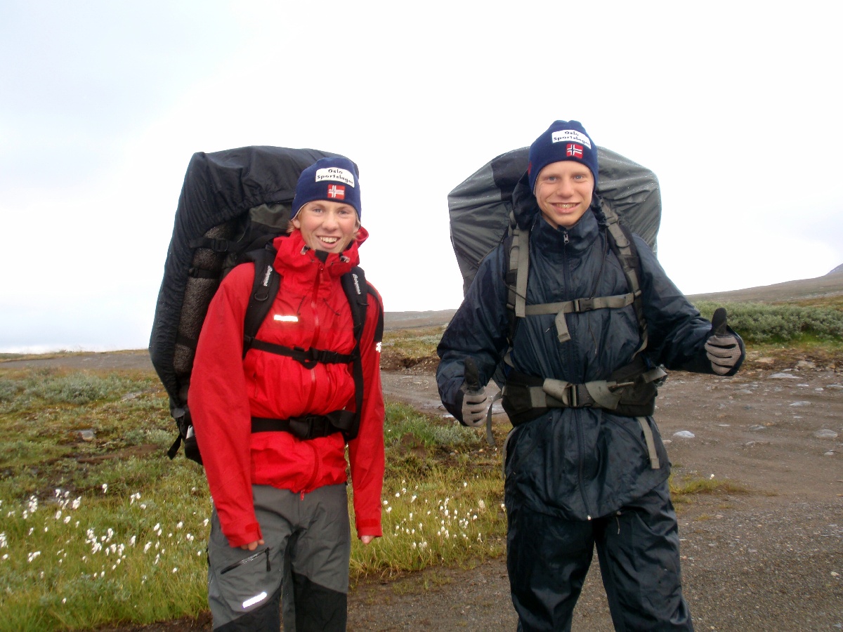 Fredag – leting etter leirplass: Carl Fredrik hadde fått fri fra jobben på Oslo Sportslager og spurte om jeg og Bjørn-Even var keen på en siste fjelltur før skolestart. Selvfølgelig var vi det, Men Bjørn-Even kunne ikke være med denne gangen. Veldig synd med fjelltur uten ”moroklumpen” og entusiasten Bjørn-Even! Vi var heldige, Onkel Halvor skulle over fjellet for å delta på Skåla Opp lørdag så vi satt på med ham til Valdresflya. Han kunne også hente oss søndag siden han skulle på hyttetur til Homborsund på mandag, perfekt for oss! Sekkene var godt pakket med klær, telt, mat, gassapparat og annet utstyr. Vi plukket opp Carl Fredrik i Sandvika, i bilen hadde jeg en badevekt vi kunne veie sekkene. Min lå på 14 kg og CF sin på 20 kg! Riktignok hadde CF 3-mannsteltet i sin sekk. Da vi passerte Bagn var vi som vanlig spente på om vi kunne skimte Galdebergstind og Slettmarkpiggen i det fjerne, de var borte i skyene, men yr.no hadde lovt oss to solrike dager både lørdag og søndag, optimismen var der. Etter å ha gaflet i seg noen boller fra Statoil ble vi sluppet av ca. 1 km sør for Heimdalsmunnen. Det var 8 C ute og småregn, Halvor var glad han ikke måtte ut av den varme, trivelige bilen. Klokken 20.00 var vi i gang, og etter bare 5 minutter måtte vi passere noen bekker. Steinene var glatte og Carl Fredrik fikk en våt start på turen da han plumpet i bekken. Sekken ble heldigvis ikke våt så turen var ikke ødelagt. Etter noen kjipe passeringer av Raslebekkene var vi oppe på bandet sør for Raudhamran. Leirungsdalen var vakker, men toppene rundt var badet i tåke. Det var nytt for begge å gå innover denne dalen og begge var spente på hvordan elvekryssingen av Leirungsåe ville gå. Elva var ikke spesielt stri heldigvis, men vi gikk oppover et stykke for å finne et gunstig vadested. Omtrent der elva fra ”Steindalsbreen” kommer ut prøvde vi oss på en vading, det tok litt tid for å finne det beste stedet. Av med skoa og krysse fingrene. Huttetu, for en kald elv! Med sekken på ryggen ble det enda verre. Midtveis, på en av sandtakene tok vi på oss skoene for å prøve å hoppe fra stein til stein resten. Det gikk delvis bra, men til slutt var vi så våte at vi like gjerne vadet med skoa på. Nå var det bare å gå så langt oppover dalen som mulig, og finne en teltplass før vi mørknet ute. Carl Fredrik fant noen fine leirsteder, men jeg ville helst gå så langt som mulig denne dagen. Grunnen var å få en kortere fjelltur neste dag. Vi ble enige om at vi skulle lete til klokken var 22.00. Til slutt fant vi en fin teltplass, slo opp teltet, spiste noen skiver og satte klokka på 07.00. Lørdag – Tjørnholsoksle og Leirungskampen: Dagens plan om været var bra var å ta Tjørnholsoksle, alle Skarvflytindene, Skarvflyløyfttinden, Austre Leirungstind, Midtre Leirungstind og Leirungskampen. Men da vi våknet hørte vi regnet dryppet på teltduken, ute var fjellene enda mer tåkefylt enn gårsdagen! Huff, vi unnet oss heller mer søvn og satte klokken på 08.30. Da vi våknet hadde regnet stanset, men skyene var der stadig. Vi kokte oss havregrøt og spiste noen skiver, og la i vei fra teltet med friskt mot og håp om klarning i været. Etter 1timer og 30minutter stod vi på toppen av Tjørnholsoksle (2145) i tåke og snø på bakken. CF hadde lovet faren sin å ikke gå på Skarvflytindene om det var tåke, men det var det. Planen ble da å gå ned Skarvflyen for så å runde ryggen og gå opp til Nørdre Skarvflytind, kanskje skyene forsvant til da. Men etter hvert da vi kom ut på Tjørnholsoksle sin nordrygg ble vi møtt med snø opp til knærne. En kombinasjon av gjennomslagsnø og tåke gjorde at vi snudde og gikk ned til Leirungsdalen igjen. Når vi kom under tåka begynte det utrolig nok å klarne mer og mer, etter hvert fikk vi øye på Leirungskampen, så Vestre Kalvehøgde, Kvitskardstind og Austre Leirungstinden! Kanskje vi kunne ta en til topp likevel. Vi tok oss GOD tid til å gå opp mot Svartdalsbandet. På veien tok vi en bedre lunsj ved Leirungstjønnin, pent ved stranda. Tre karer med fulle sekker på vei mot Svartdalen passerte oss mens vi lunsjet. Da vi kom til 1678-vannet rundet vi opp nordsiden av Leirungskampen, gikk i løs ur før vi var oppe på nordvestryggen. Etter noen hundre høydemetre stod vi på toppen av Leirungskampen N-2. Skyene drev forbi, og etter hvert dukket Torfinnstindane opp, et fristende mål for neste år! Herfra var det bare å kruse bort til Leirungskampen N-1 og Leirungskampen, litt lett klyving, men langt fra vanskelig. Det går en renne med løs grus siste stykket til hovedtoppen. Da vi fikk tatt noen photos spiste vi litt niste på Leirungskampen N-2, her fikk vi også telefondekning! På nedturen var steinene sleipe, så vi tok det helt piano. Lenger nede så vi en fyr med gul/svart jakke på sikker kurs mot oss, men da vi kom lenger ned var fyren borte, ikke hadde han passert oss heller! Turen tilbake til teltet gikk raskt da vi pratet oss bort, fremme var vi klokken 18.00. En akkurat passe tur, neste dags værmelding er sol og i natt skulle det være ned mot -7c på toppene. Det låter bra hvis det blir skareføre! Da jeg skulle til bekken for å hente vann hører jeg noen lyder bak meg, det er Carl Fredrik som roper. Jeg hører ingenting pga bekken og prøver å åpne ørene, han trodde jeg prøvde å holde meg for ørene! Han skulle fyre primusen, og da fyrstikken ble tent flerret en gedigen flamme opp. Han var redd gassboksen skulle sprenge og kastet apparatet bort fra seg. Ingen var sikre på grunnen så vi lot boksen brenne opp. Selve brenneren var smeltet i stykker da det hele var over. Det rare var at gassen ikke ville slukne da han prøvde å skru gassen ned. Heldigvis skjedde dette etter vi hadde kokt vann til middagen. Men frokosten neste dag bestod av havregryn, vann, salt og syltetøy (ukokt), det var ikke like godt når den var kald. Søndag – Tjørnholsoksle (igjen!), Tjønn