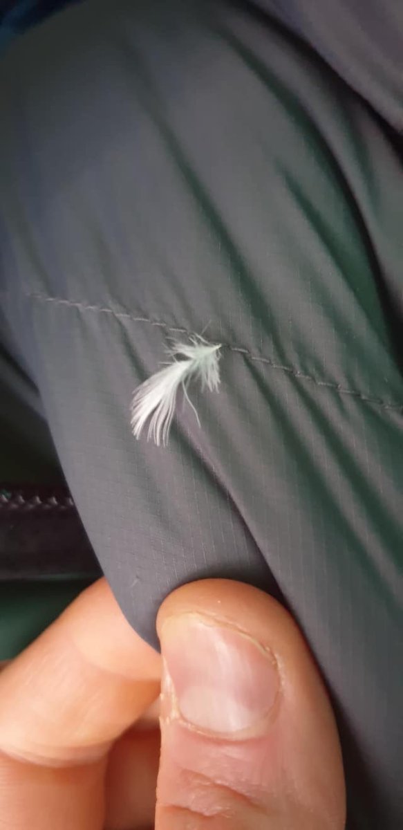 På morgenen merket jeg at flere dun hadde kommet ut av posen.