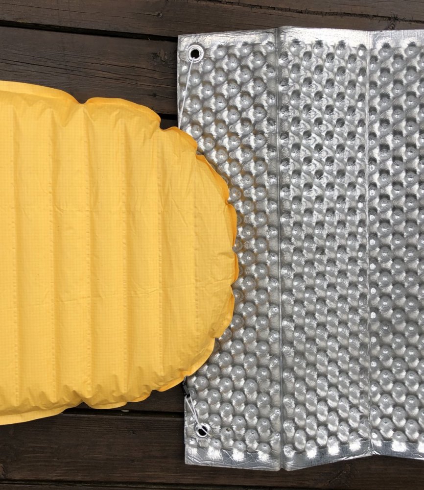 Jeg har satt sammen et opplegg med Neoair (kjøpt brukt på finn for 4-500kr) og Z-Lite (kopi fra Naturhike (eBay) i mitt tilfelle). Det blir 193 cm langt i mitt tilfelle, men du kan justere lengden med antall ledd. Har laget maljehull med et sett fra Biltema. På underlaget har jeg brukt limfester fra Zpacks og en tråd. Da kan jeg feste sammen begge underlag, slik at de ikke sklir fra hverandre. Undersiden ser slik ut. Oversiden blir slik Vekta inkl pakkpose og repsett blir 398 gram. Da har jeg 6 ledd som jeg bruker som sitteplate og ved bål. På natta kobler jeg de sammen slik at beina er på skumunderlaget. Må legge litt klær/sekken under for å få lik høyde. @Jan Erik Hansen Her har du bilder, laget en egen tråd på dette.