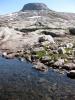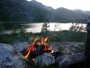 Hei! Her følger en turrapport fra Lomsdal-Visten august 2013. Rapporten ligger også i sin helhet på www.dorgerundt.com, og der kommer det også en liten filmsnutt etter hvert. Fjols til fjells: Lavvu i Lomsdal-Visten Lomsdal-Visten er landskapet der du angrer på at du ikke planla bedre, men angrer enda mer på at du ikke stoppet mer underveis - i ren ærefrykt. «Har ni varit vid Elgviddvatnet?! Ja, dit måste man ju bara åka, åtminstone en gong i livet», sa den første stemmen vi hadde hørt på to uker...utenom hverandres. Da vi ankom Storbørja og Lomsdalselvas utløp, etter å ha krysset den nedre delen av Lomsdal-Visten nasjonalpark, møtte vi nemlig to turkamerater, en svenske og en trønder, som har trasket traktene i en halv mannsalder. Jovisst, vi hadde vært ved Elgviddvatnet, i nydelig vær og mutters alene på fjellet. Men som man ofte gjør, uansett hvor vakre omgivelser man går i, trodde vi at det beste fortsatt lå foran oss, og stoppet ikke mer enn et par timer der. Det var tydeligvis et feilgrep. Eller kanskje det var et riktig grep, for det er jo nok en unnskyldning til å legge nye turer til det vi - uten forbehold - vil kalle noe av det vakreste Norge har å by på av natur. Vi har fortsatt mye ugjort i Lomsdal-Visten. Veien til helvete er brolagt med tunge sekker Solnedgang i Stavassdalen Planen vår, kokt sammen i løpet av vårparten, var å følge samme prosedyre som vi har gjort i mange år på rad; spare litt mer enn et par ærlig fortjente ferieuker, pakke sekken og komme oss så langt unna folk som det er mulig. Etter et overmodig – men tross alt vellykket - prosjekt for et par år siden, der vi gikk fra Gällivare i Nord-Sverige til like utenfor Bodø, tenkte vi at «i år skal vi ikke gå så hardt, og få mer tid til å kose oss, fiske og sånt». Og mens vårdagene rant unna, ble vi enige om at «jo, lavvuen må vi ha med, det er jo så kos», og ditto med rundbrenneren, vadebukser, brennevin, kilovis med kamerautstyr, fiskestenger og så videre. Enhver luksus vi kunne komme på ble ført opp på pakklista. Lite visste vi om at vi skulle til gramjegerens rike! Kvitfjellet sett fra Neversletta Vi landet i Mosjøen, tok buss til Trofors, og satte av gårde. Sekkene ga sikkert bagasjemannskapene på flyplassen hekseskudd, og sikret oss en beinhard start på turen. Etter tips fra lokalkjente bestemte vi oss for å gå opp Stavassdalen til Neversletta, runde Kvitfjellet og gå inn Mosskarddalen. Terrenget var så langt relativt lett (med unntak av 100 meter nesten rett opp på grensen til nasjonalparken), men klam luft, mygg, steikende sol og tung bør gjorde at etappene i starten ble ganske korte. Rapadalen i miniformat Mosskarddalen var den første strekningen som lå innenfor nasjonalparkgrensene, og den brakte umiddelbart tankene til Rapadalen i Sarek, Sverige, som vi var innom to år tidligere. I noe mindre format, riktignok, men med de samme bratte, grønne fjellsidene og den grunne, snirklende elva i bunnen. Et ordentlig eventyrlandskap. Åpningen inn til Mosskarddalen markeres dessuten av et ganske spektakulært vann, Litlskardvatnet, som ligger i en bratt skål, omhegnet av spisse fjelltopper. En elgku med kalv kom seg kjapt på trygg avstand, og det var det eneste tegnet til landlevende liv vi så, før mange dager senere. Enden av regnbuen Leir ved Litlskardvatnet Innover i Mosskarddalen skjønner man etter hvert at elva egentlig blir til underveis i dalen, og for hver bekk vi passerte, krympet elva inn. Helt innerst kom vi til turens første virkelig bratte stigning, og fulgte restene av elva opp på rundt 800 moh. Oppe på platået ligger Mosskardvatnan, en serie med vann hvor det vestligste ligger klemt inn mot fjellene, akkurat som Litlskardvatnet. Der fant vi en bitteliten grønn flekk, antagelig den eneste opplagte leirplassen i flere kilometers omkrets, med en 360 graders utsikt man kan bli religiøs av. Turlivet var herlig, og brukbare fiskefangster ble til både sushi og fiskesuppe. Leirplass ved Mosskardvatnan Noen kilometer nedenfor lå Elgviddvatnet badet i sol, og vi følte oss tvunget til å ta tidlig lunsj, prøve fiskelykken og nyte været. Ruta, som vi fant på nettet og bare omtrentlig fulgte, gikk nå hele veien rundt vannet for å følge elva som renner videre på motsatt side. Det fant vi ikke ut før dagen etter. Med det som føltes som livet som innsats, klatret vi ned fra vannet på feil side, og ble så paffe av den flotte fossen som faller sikkert femti meter rett ned, at vi kastet bort enda litt mer tid på foto, bading og posttraumatisk stress etter nedstigningen. På vei ned mot Elgviddvatnet Sti for viderekomne Det er forresten to typer feil man kan gjøre i Lomsdal-Visten: Det ene er å ikke stoppe ofte nok for å ta inn det mektige landskapet. Det andre: Å undervurdere hvor mektig utfordrende landskapet er. Ting går med andre ord ikke som planlagt når man setter sine bein der. Iallfall gjorde det ikke det for oss. Vi hadde jo fortsatt ikke møtt svensken, og reflektert over hvilket paradis vi nettopp hadde besøkt. Vi presset bare på videre. Nå som vi var nede i vassdraget som ender opp i Lomsdalselva, tenkte vi at rutevalget ville bli greit. Bare å følge elva. Kjempelett. Med store strabaser klarte vi å bakse oss ned til Grunnvatnet, men der sa det bom stopp. På vår side av elva møttes vann og fjell i nitti graders vinkel. Bare en ting å gjøre: vade over. Det gikk ganske greit for oss, vannstanden var lav, og vi hadde vadebukser i sekken. Men det er likevel fristende å rette en advarende pekefinger mot andre som skal samme veien: med så glatte, vegetasjonsfrie fjell som det er i de traktene, kan en helt vanlig regnskyll få vannstanden til å stige forbausende mye! Om du har tenkt å vade tørrskodd, må du enten stole på flaksen, vente, eller belage deg på å utsette hele vadingen til lengre ned - hvis det går. Veien videre mot Nedre Grunnvatn var omtrent akkurat like strabasiøs, men nå 