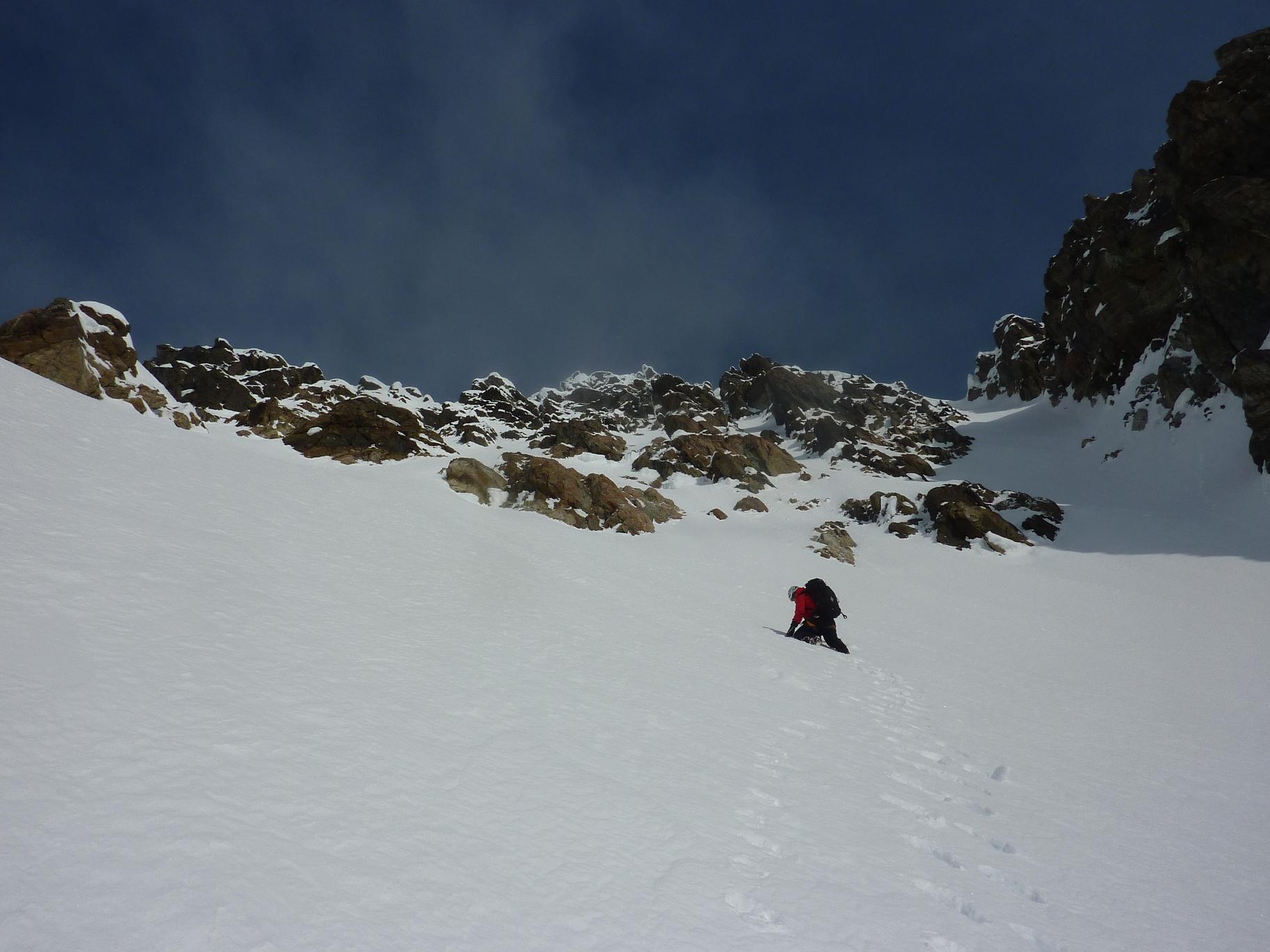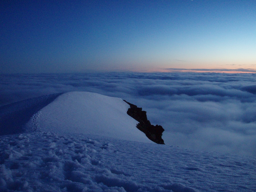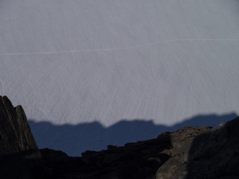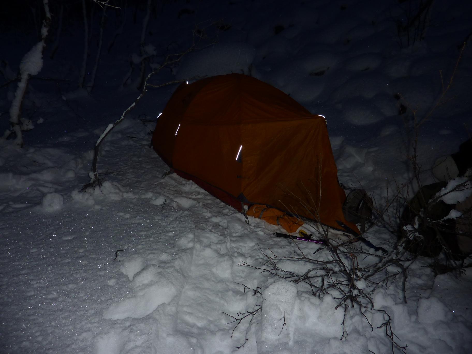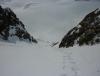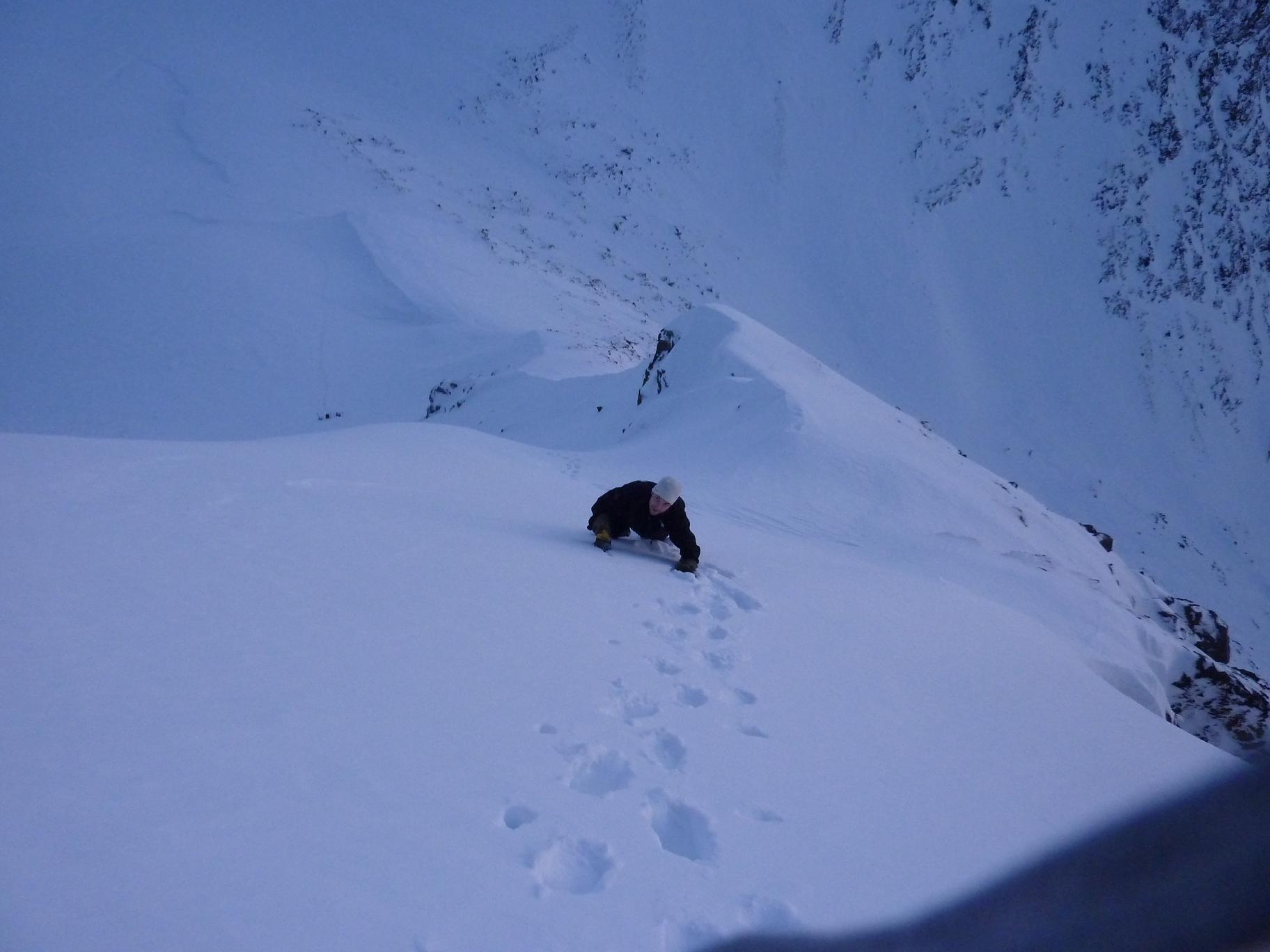 Etter litt ny info i forbindelse med rapporten fra min bomtur til Store Lenangstinden i påska fant jeg og Bjørn(annen turkamerat enn sist) ut at vi skulle prøve på nytt, denne gangen i en renne jeg ikke viste at fantes ved mitt forrige forsøk...Tusen tak Ivaaar:) Vi hadde sett på bilder at det var mulig å bytte renne noen flere ganger for å komme oss opp på eggen nærmest mulig toppen, da eggen er luftig så det holder. Såpass luftig at mitt forrige forsøk på Store Lenangstinden ble avbrutt bare med å se på eggen... Bjørn kom med et forslag om å forsøke Store Lenangstinden natt til Lørdag på torsdagskvelden etter at jeg hadde vært på Høglikka, da hadde jeg lagt planer om en liten topp i Nordreisa i forbindelse med en jobbtur i Nord Troms på fredagen, men jeg kunne ikke la sjansen til en tur til Store Lenangstinden gå ifra meg. Så da satset jeg på å kunne gjennomføre en tur på ettermiddagen, rekke hjem å sove en liten time før fotballtrening og direkte avreise til Lyngen med sisteferga. I alt stresset klarte jeg å glemme goretexbuksa mi, noe jeg oppdaget når vi skulle starte å gå… fikk lånt meg en ny bukse kl 00.45!Tusen takk, Torunn! Buksa ble hentet på Lyngseidet. Vi begge var trøtte, så vi tok oss en times powernap i bilen før vi kjørte til Koppangen igjen. Vi startet å gå ca 03.30, vi hadde valgt å gå om natt for å slippe rasnerver i den bratte sør/sørvest vendte renna. Anmarsjen opp Koppangsbreen og Strupbreen tok ca 3,5 timer før vi tok oss en lunsj og skiftepause før vi startet å gå hovedrenna oppover mot eggen. Hovedrenna var bred og oversiktelig, på godt skiføre ville den vært mulig å kjøre ned på ski. På ca 1530 meter byttet vi ut hovedrenna som var +/- 40 grader med en mye smalere renne som gikk ut til venstre på ca 50 grader, når den renna var brukt opp på 1565 moh måtte vi ta en liten rapell ned i en litt smalere og enda brattere renne som gikk helt opp på eggen. Snøen i rennene var god, bortimot null rasfare. Når vi kom på eggen var konklusjonen at det var et smart trekk av oss å prøve å komme på eggen nærmest mulig toppen, beundrer Petter som har gått den eggen på vinterlige forhold! Vi brukte ca 3 timer fra lunsjen til vi var på toppen og rundt 3 timer på nedturen inkludert en god matpause når vi kom til skiene våre. En perfekt tur, med manglende utsikt som eneste minus. Flere bilder og turbeskrivelse: http://kugo.no/2010/04/store-lenangstinden-1625-moh-3/