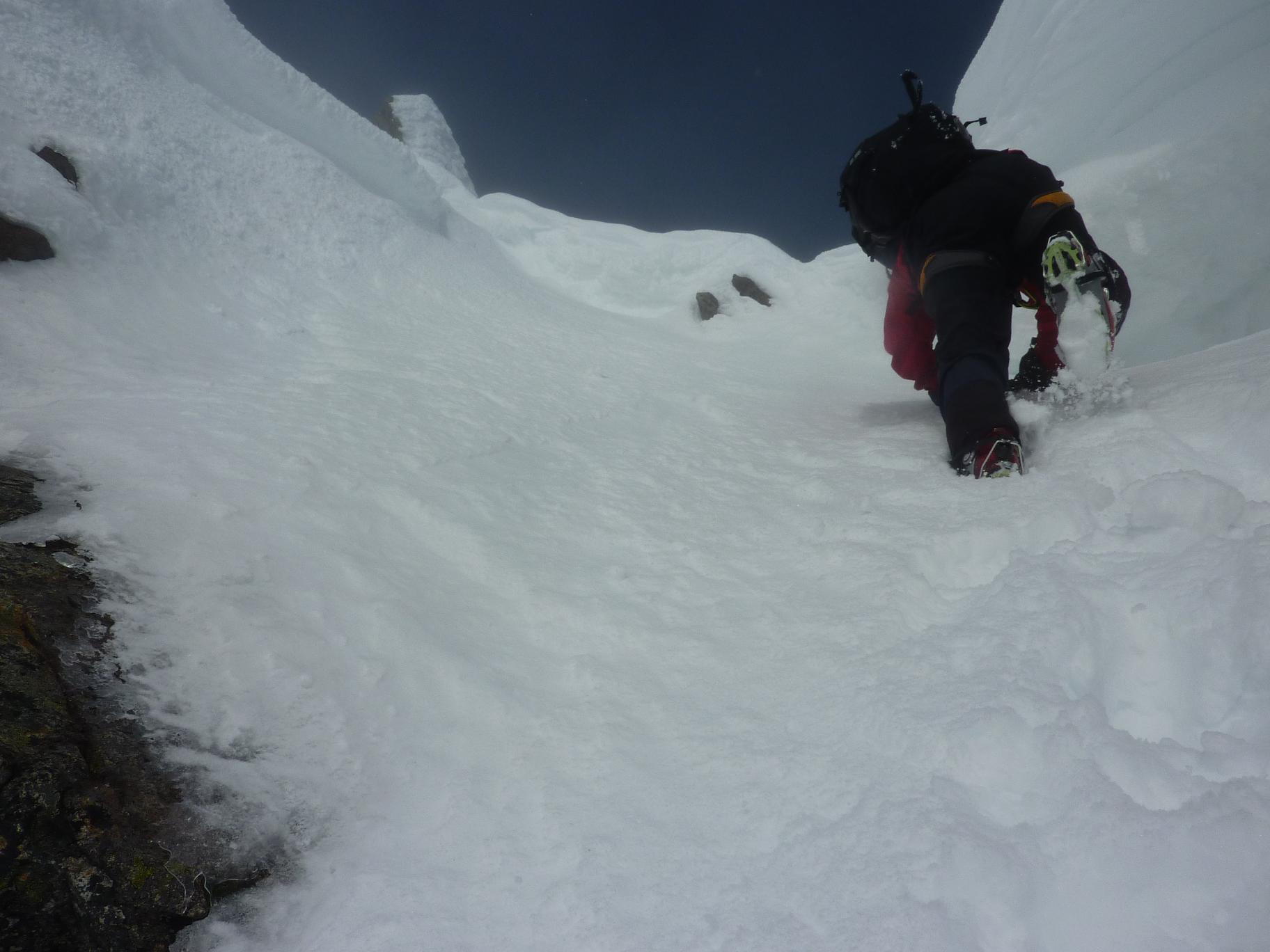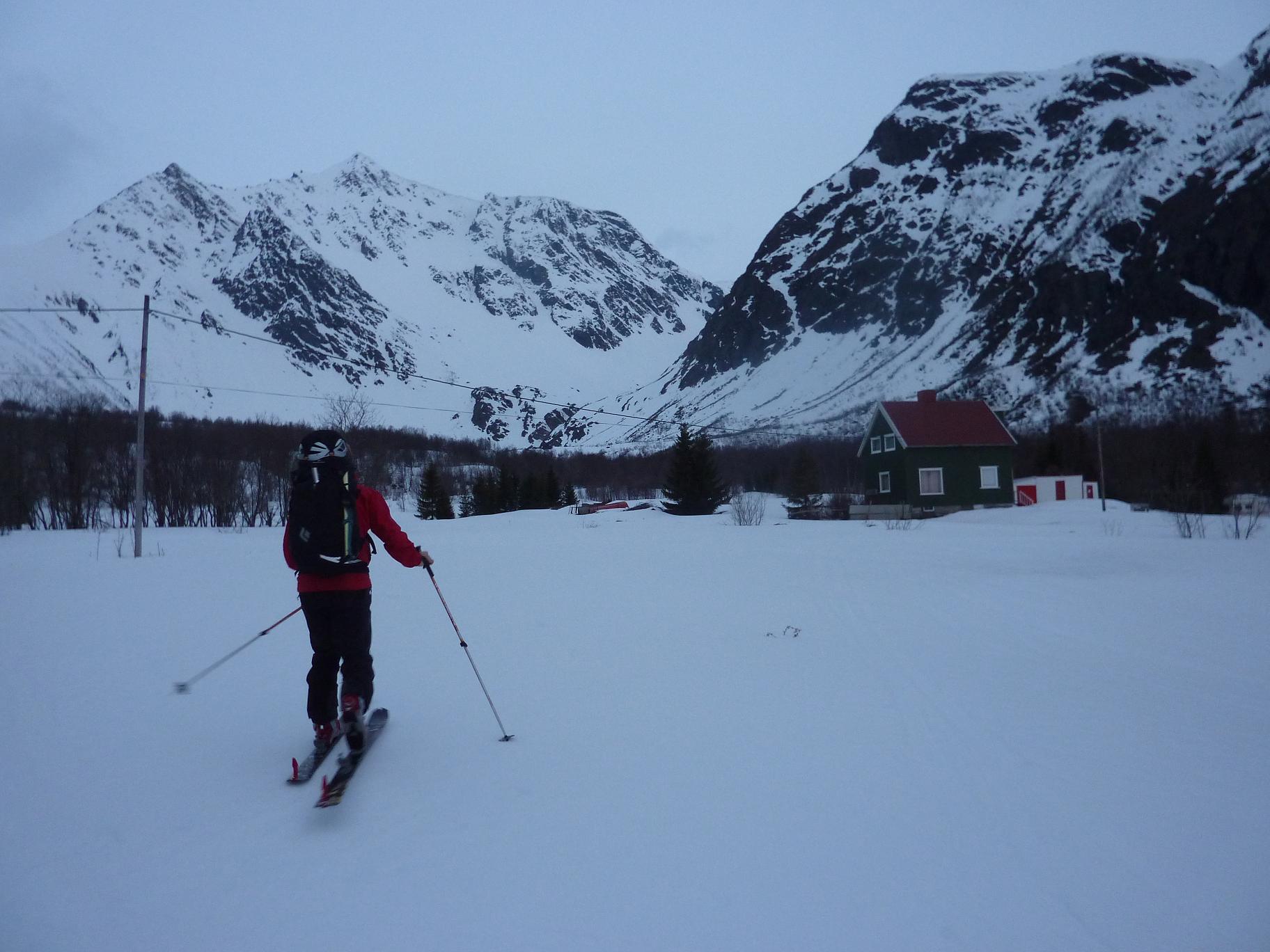 Etter en vinter med rasfare og uvær fikk jeg endelig årets første Lyngentopp. Med en turkamerat som samler på toppene på Lyngenhalvøya ble det et litt utradisjonelt valg med Nallancohkka. Nallancohkka er ganske langt unna Lyngens mest besøkte topp. Den enkleste måten å komme seg på Nallancohkka på er å gå via Steindalsbreen og gå den i snøbakker fra vest, denne turen blir noen kilometer lengre i tillegg til at Steindalsbreen krever bruk av breutstur på en såpass snøfattig vinter som i år. Her er et eksempel fra i fjor. http://www.tv2nyhetene.no/innenriks/her-blir-klatreren-reddet-opp-av-bresprekken-3241421.html Anmarsjen er på ca 7 kilometer i slakt terreng opp den fantastiske Steindalen med utsikt mot Lyngenklassikere som Steindalstindene, Gaskascohkka og Sfinxen, før det blir brattere opp mot renna . Renna starter på ca 700 moh, og ender opp litt øst for toppen på ca 1260 moh. P.g.a en del is i starten av renna satt vi igjen skiene ved innsteget, men renna var bred og ikke brattere en 35 grader i starten, så det ville absolutt vært mulig å gått deler av renna med ski på beina på den gode snøen som var under turen vår. Etterhvert blir renna smalere og brattere, den siste biten var ca 50 grader før vi kom opp på den i Lyngenmålestokk brede ryggen. Fra toppen av Nallancohkka er det fantastisk utsikt mot Steindalstindene, Imagaisi, Kveita, Nallagaisi, Gaskascohkka osv. Vi gikk turen i fantastisk vær, noen varmegrader i sola og meget gode snøforhold. Turkameraten min som har en del flere Lyngentopper av meg gikk renna uten stegjern.. Flere Bilder og turbeskrivelse: http://kugo.no/2011/03/nallancohkka-1328-moh-2/