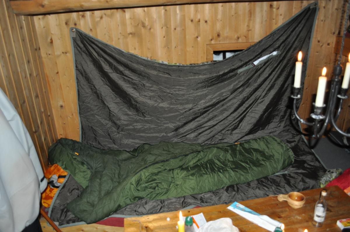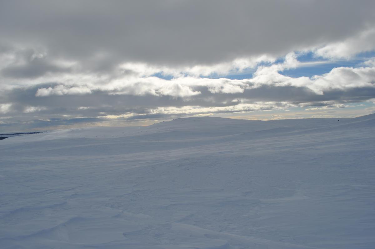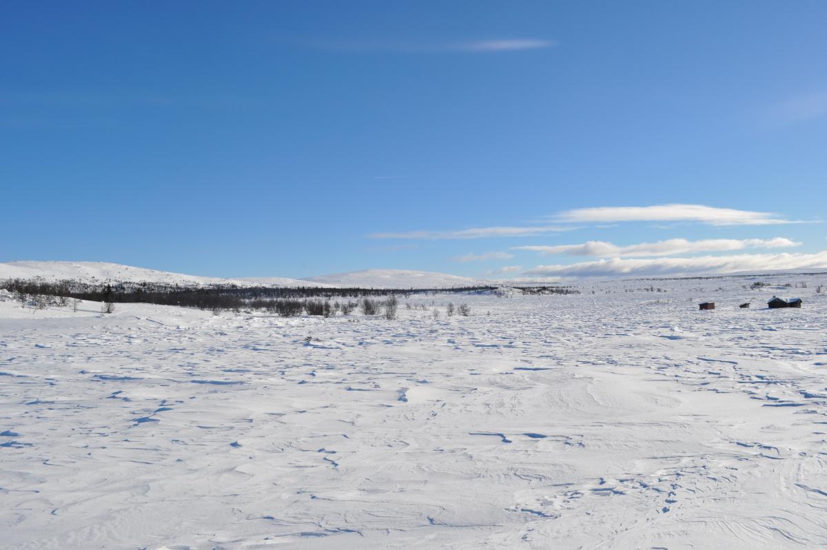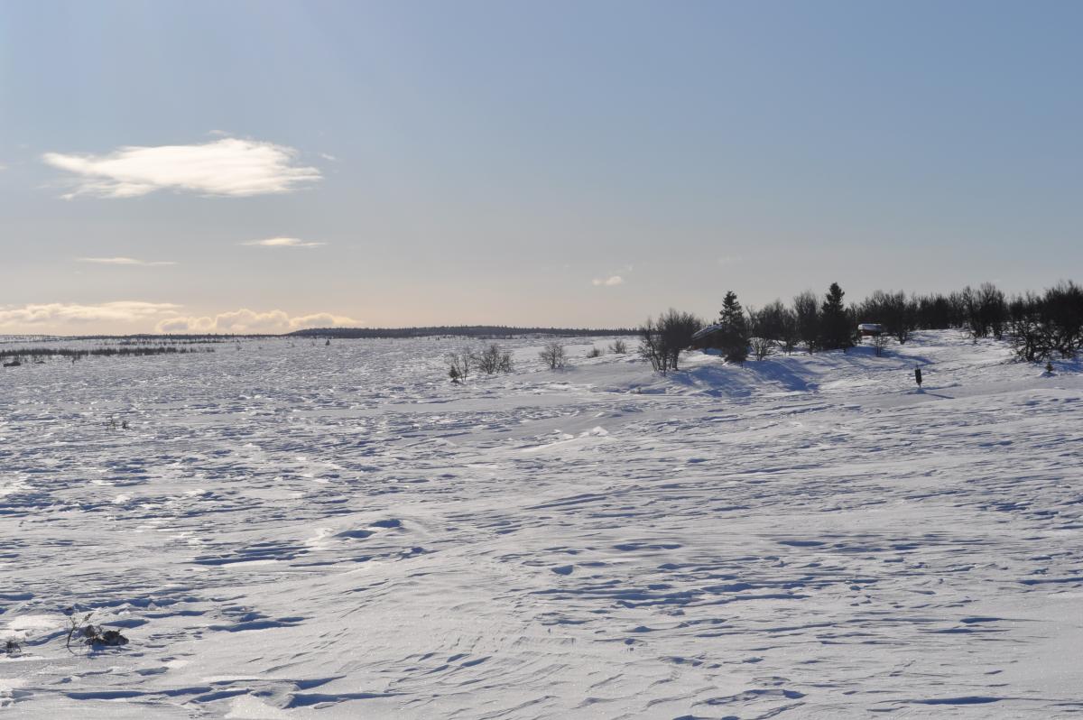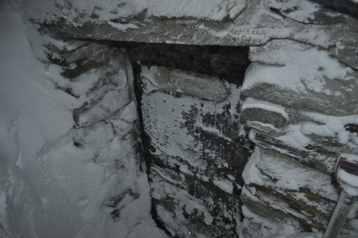 Vi var tilsammen 4 stk som skulle gå fra Teigekrysset ved Goppollen og inn mot Lyngen og overnatte på lyngbua som DNT har. Turen ble litt annerledes enn planlagt. Når vi etter hvert fikk startet var det relativt fint vær, og lite vind. Etter å ha gått bare 10 min ca, begynte vinden å øke betraktelig. Den økte jevnt opp til ca 15-17 m/s, og vi hadde heldigvis vinden i ryggen hele veien innover så alpint/ski-briller var godt å ha! Først gikk vi samme løype som jeg gikk tidligere i uka opp mellom Høgtind og Herratind, før kursen gikk i retning mot Jogrimshøgda. Etter å ha sett topografien med egne øyne, valgte vi å gå ned på sør-siden av Jogrimshøgda, forbi Tittersætra og følge Jogrimslia ned mot Skjelbua hvor vi skulle spise før vi gikk videre inn mot Lyngen. Skjelbua er en åpen bu som eies og styres av Øyer fjellstyre og er åpen for alle som ønsker å sove i eller gå innom på tur. Det er gratis å sove eller gå innom for en rast. Det er vedovn, og primus med gass som fritt kan brukes, i tillegg består den av tre senger. Etter å ha passert Tittersætra begynte vi å bli sultne, og fortsatte mot Skjelbua. Da vi endelig kom frem til skjelbua, måtte vi grave oss inn til døra. Vi hadde også med spade! Det er også spade der som kan brukes, men den stod i skålen like ved, og vi måtte grave oss inn der også. Når vi kom inn i bua, dro vi frem termosene, for å fylle opp i Real Turmaten som vi også tok med. I tillegg ble det en kopp kakao før vi skulle ut igjen. Mens vi satt inne i bua hadde vinden økt i styrke. Himmelen var imidlertid blå, det var ingen nedbør, men vinden var så kraftig at den dro opp snøkorn slik at det ble en hvit vegg på ca 5 meter, uansett hvor man så. I en slik vind var det ikke lenger noe poeng å fortsette, og vi valgte da å fyre opp i hytta og bli der over natta. Når vi gikk inn mot skjelbua var det kun snøkorn som ble dratt opp i knehøyde, og dere kan tenke dere hvor mye sterkere vinden ble når snøkornene ikke lenger var i knehøyde, men mellom ca 5 meter opp i lufta. Så var det å starte med snøsmelting og begynne å falle på plass i hytta. Vi var riktignok fire stk i en hytte med tre senger, så det ble litt trangt den kvelden. Jeg hadde riktignok god plass. Jeg dro opp Jervenduken min, og hang den opp på veggen, og ned på senga, slik at jeg slapp å få en rå vegg inn mot soveposen. På kvelden måtte også cognacen frem, men også mozellen var med på turen Og ute foran døra var det en god del snø, men det var en såpass stor vegg med snø rundt dørpartiet, slik at vi ikke var særlig bekymret for å snø inne. Døra er forresten todelt. Jeg tok desverre ingen bilder på turen inn til skjelbua, noe som igrunn var litt dumt, da jeg skulle tatt bilde av den høye veggen med snø som gjorde at vi måtte holde oss på Skjelbua. Jeg gjorde dette imidlertid på vei tilbake til bilen. Dagen derpå for Skjelbua i perfekte værforhold! Her er bilde av lyngkampen (vi skulle nesten til foten av fjellet). På vei tilbake mot Teigekrysset og bilen, valgte vi en litt annen rute. Vi valgte å gå opp ei li som kalles Skjæla, og i motvind på 5-6 m/s var det perfekt å gå tilbake på, hvor vi passerte Jogrimshøgda på innsiden. Når vi passerte Høgtind på vei tilbake, så vi det hadde gått noen mindre skred ganske så nylig. Nå var det bare nedoverbakke til bilen igjen, og jeg avsluttet med det beste bildet på hele turen! Helt perfekt!