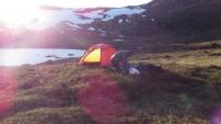 Regnet trommer lett på teltduken på mitt Ringstind 2, jeg ligger i soveposen og har det godt og varmt, klokka er midnatt. Augustnatta er varm og mørk. Jeg har nylig stekt en halvkilos ørret og spist sammen med potetmos. Jeg er alene på helgatur til favorittvannene mine. Jeg dro rett etter jobb, var innom hjemme, skiftet tøy og rasket med meg den ferdigpakkede sekken. Jeg gikk opp til vannene på halvannen time, de ligger på nesten 700 meter og er sjeldent besøkt av folk, da sambygdingene er mest opptatte med å springe på fjellene i konkurransen "4-fjell". Å delta der gir vist status på facebook, og nede på kafèen, der de skryter over hvor spreke de er. Jeg slo opp teltet, spiste et par brøskiver og gikk i gang med å fiske. Nord for vannene er det fjell og bratt ned til sidedalen, jeg ligger i posen og tenker på skjebnen til ei jente som gikk seg fast på saueleiting der for mange, mange år siden. Hun omkom. Jeg vet ikke om hun ramlet ned, eller om hun frøs eller sultet i hjel. Jeg ligger å tenker på den triste skjebnen til søvnen tar meg. Etter en stund bråvåkner jeg, sansene er skjerpet maks! Jeg setter meg opp og lytter. Det er helt stille, fjellrypene som rapet villig da jeg sovnet er nå stille... Ikke regner det lenger, det er total stillhet. Og med ett merker jeg det. Jeg regelrett kjenner det på kroppen, et nervær, en ondskap, og følelsen vokser seg bare sterkere og sterkere. Panikken griper meg og jeg stormer ut av teltet, og der.... Jeg bråvåkner i min egen seng, jeg er helt kald, jeg har gåsehud fra hårfestet og ned til tærne. Følelsen av uhygge sitter i kroppen lenge, men jeg sovner igjen etter en stund. Dette drømte jeg i natt og følelsen av uhygge sitter i kroppen enda nå, mens jeg sitter å skriver dette. Jeg skulle ønske jeg var flinkere til å skrive og fortelle, så denne "historien" kunne blitt beskrevet så uhyggelig og virkelig som den føles....