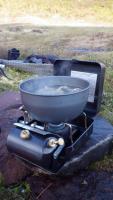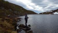 Var på ute på årets første telttur sist helg, sammen med kpl her på forumet. Vi gikk til et område i min hjemkommune hvor jeg aldri har fisket, bare gått på rypejakt. Håpet var at vannene skulle huse fin fisk... Først bratt oppstigning til Amerikavatnet på 507 moh hvor vi slo leir på fredag. Gikk dagstur på fiske og en "topptur" til Amerikabruningen 680 moh på lørdag. Fisket? Det var ikke all verden, bare småfisk. Legger ut noen bilder fra turen. På tur opp: Utsikt tilbake: Straks fremme til vannet: kpl slår leir: Hjemmet mitt: Hva passer bedre enn amerikansk gryte til middag: Kveldsfiske: Vandring: I følge kartet et lite navnløst tjern: Lillauren funket godt: Jeg nyter utsikten: Teltene kan med godvilje ses nede ved vannet: På toppen av Amerikabruningen: Glemte smøret hjemme, så det ble kokt fisk til kvelds: På tur hjem: Blir å jakte etter storørretene i andre vann neste gang