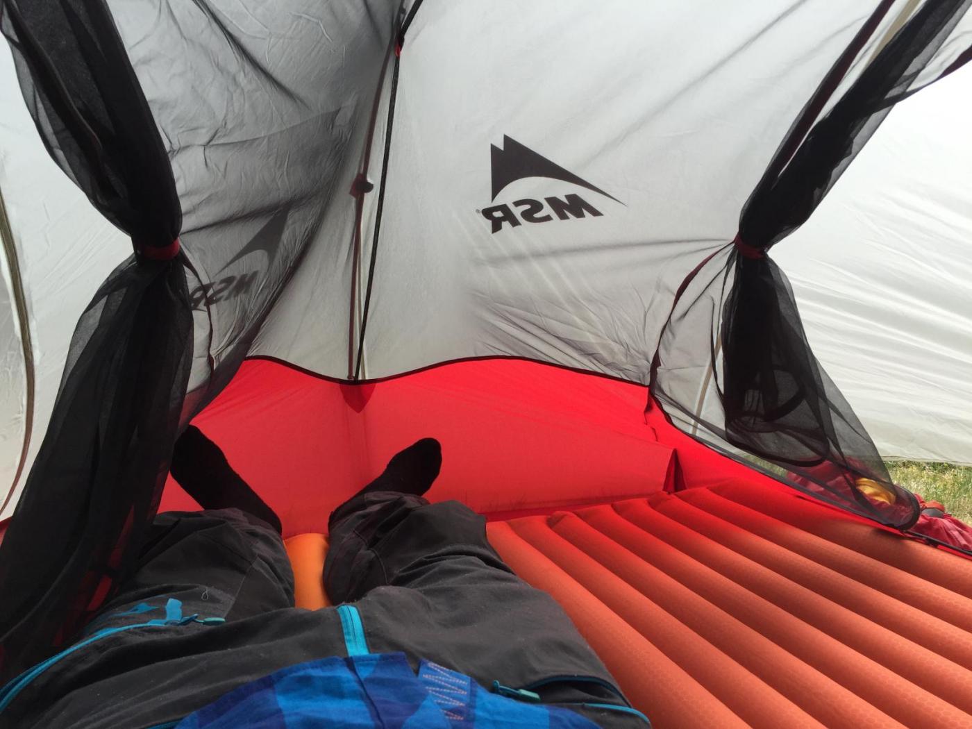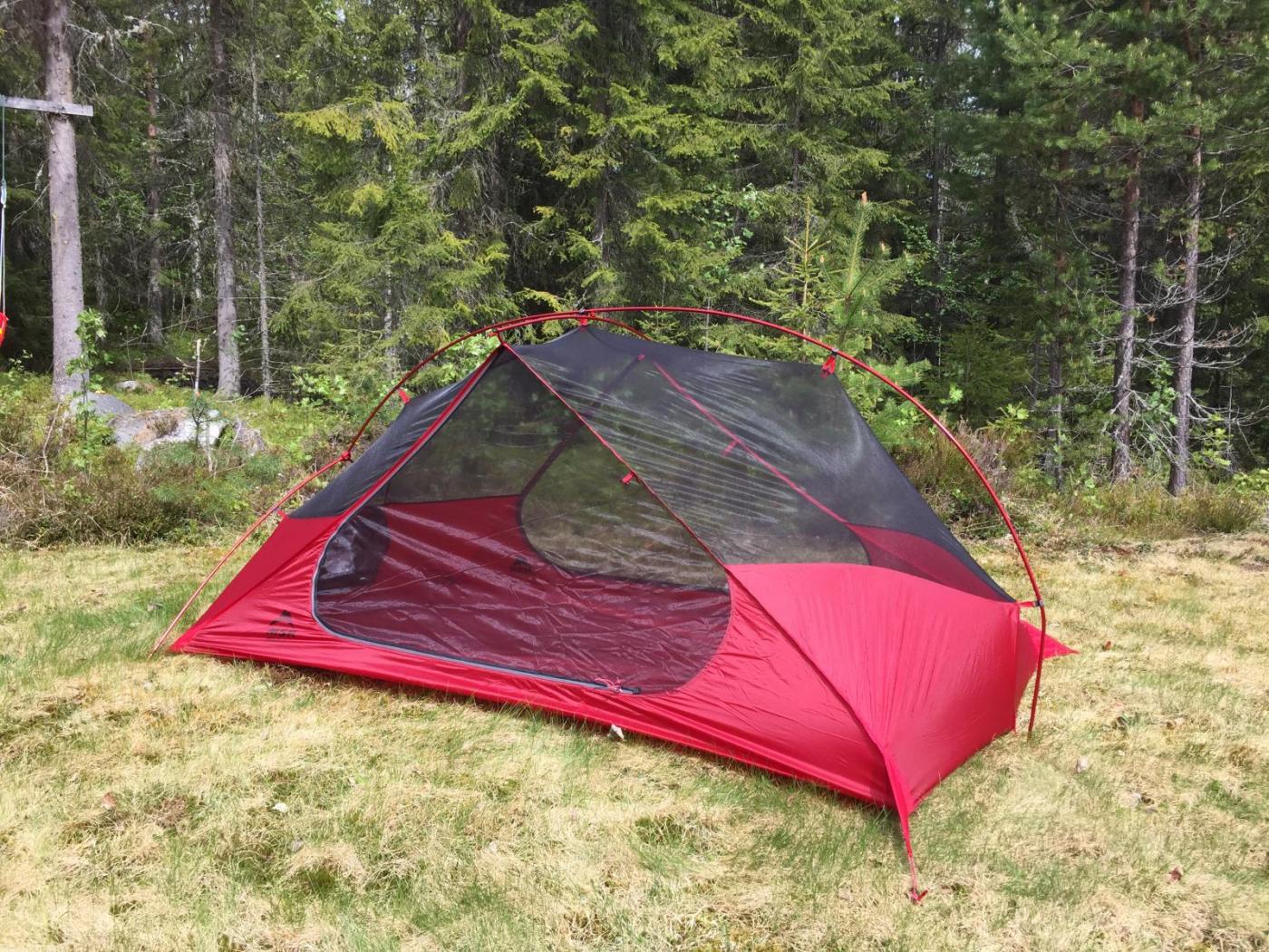 Les innlegget på bloggen - Klikk her! Jeg har en tid vært på jakt etter et enda lettere telt enn Reinsfjell 2 Superlight til solobruk, samt til brukt der vi alle fire skal på tur, slik at vi kan dele oss i to telt. Etter at jeg solgte Bergans Helium Dome teltet som skal erstattes med Hilleberg Saitaris før neste vintersesong fant jeg plutselig en ny modell fra MSR som er forholdsvis lik som Hubba Hubba, men en del lettere. Dette så perfekt ut til både solobruk og sammen med et av barna. "Selvstående" med plass til to og to romslige innganger ned mot 1 kilo virket nesten for godt til å være sant. Jeg tok sjansen på å teste det og bestilte fra en tysk nettbutikk da det ikke er tilgjengelig i Norge. Etter få dager lå det på Posten. Dette blir et typisk "godværstelt" til bruk vår, sommer og høst på turer med lett sekk. Teltet er ekstremt kompakt og lett! På tradisjonelt amerikansk vis slås innerteltet opp først og ytterteltet tres over. Ikke noe problem så lenge det er oppholdsvær, men det er klart at det blir litt stusselig om det bøtter ned. Forøvrig er oppsettet svært enkelt. Man setter en plugg i hvert av hjørnene på teltet, trer stangendene i respektive "braketter" og klipser duken på plass på stanga. Dette tar et lite minutt. Ytterteltet legges så over, klipses i hvert hjørne og festes til stengene med borrelåsfeste. Det er fire bardunfester. Duken er stram og fin og alt tyder på at dette tåler en del vind. Innvendig er plassen som ventet. Litt lavt under taket for meg på 190, men noen kompromiss må inngås når vekta skal ned. Det er plass til to oppblåsbare Exped underlag (Testet med Hyperlite 7 LW og Synmat 7 M). Det går akkurat og langsidene skrår en del mer enn Reinsfjell Superlight. Lengden er tilfredsstillende med 213 cm og forholdsvis rette vegger. Luftingen ser ut til å fungere meget bra. Det er mye mesh i innerteltet som bør sørge for minimalt med kondens. Samtidig er bunnduken trukket godt opp på sidene så jeg er ikke bekymret for at det skal bli for trekkfullt. Etter to turer i vinter med Tor-Eriks Huskytelt som har ganske lik design med mye mesh i innerteltet har jeg selv erfart at det kan bli lunt og godt og at meshen sørger for minimalt med kondens. Kommer tilbake med en mer omfattende test når teltet har fått noen turer i sommer. Planen er å ta det med både på Hardangervidda og Femundsmarka. Det skal bli spennende å se om den tynne duken holder og hvordan det oppfører seg når vinden tiltar. Les innlegget på bloggen - Klikk her!