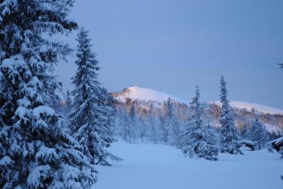 Egentlig var planen at jeg skulle gå ruta Mysusæter - Eldåbu - Venabu(Trabelia) fra lørdag til søndag. Istedenfor ble turen lagt fra søndag til mandag. På lørdag, når jeg egentlig skulle gå tok jeg et bilde av hælene mine for å se før - etter bilde av beina, og det var faktisk ikke den store forskjellen. Jeg hadde imidlertid utrolig vondt i venstre hæl de siste par kilometerne ned til Trabelia. Likevel var jeg utrolig god og varm, og frøs heller ikke noe på beina. Og noe særlig større gnagsår hadde det heller ikke blitt. Riktignok hadde hælene en god del belastning med 20 kg på ryggen, og slik at man går i variert terreng, så den belastningen kan nok sikkert være en av forklaringene til at jeg hadde så vondt de siste kilometerne. Søndag morgen stod jeg opp kl 05.40, dusjet, spiste mat og fikk alt inn i bilen og ble kjørt opp til Mysusæter. Kom på parkeringsplassen ca kl. 07.30, og begynte å gå ca 07.45. Temperaturen lå på ca 10 minus, ingen vind, og ingen andre rundt meg. Herlig! Etter start fra Mysusæter gikk jeg nedover pungdalen. Når jeg hadde kommet meg bortover et stykke, men før jeg nådde pungen tok jeg meg en 5 minutters pause, tok frem kameraet og knipset bilde av soloppgangen på Gråhøe og sekken min. Etter å ha fått av meg fleecegenseren, tatt en slurk med mozell tok jeg skiene fatt ned mot Furusjøen. På vei ned mot Furusjøen gikk jeg på utsiden av den lille dammen nord for Furusjøen og forbi Furusjøbu og videre ned til Furusjøen. Jeg fulgte da scooterspor som gikk på isen, ca 20-50 meter fra vannkanten. Passerte Glittervika og til Glitteroset hvor jeg tok meg en 10 minutters pause med mozell og bilder av soloppgangen. Hittil hadde jeg sett flere hytter hadde fyrt opp i ovnen, og jeg så også et par stk på motsatt side av Furusjøen som hadde startet dagens isfiske. Etter sekken igjen var pakket, og satt på ryggen igjen fortsatte jeg langs Trolløypa i retning Eldåbu. I overkant av en kilometer lenger inn stoppet jeg opp ved et nytt skilt i Frylia og tok bilde. Etter et kjapt stopp fortsatte jeg videre mot der løypa krysset løypa som går fra Rondablikk til Eldåbu. Satte meg ned der, for da var det en god del timer siden sist jeg spiste. Så i krysset satte jeg meg ned, fant frem primusen, kjel og forsvarets stridsrasjon. Etter å ha spist var det bare å kaste sekken på ryggen og labbe i vei videre. Jeg gikk så mot Kvamsnysætrin. Lenger nedenfor kvamsnysætrin delte løypa seg, og jeg gikk da på vei oppover. Etter å ha passert Kvamsnysætrin ble tilslutt scootersporene borte, og bare gamle skispor etter andre som har gått der var det jeg brukte for å komme meg videre frem. Endelig kunne man slippe unna disse nymotens skispor, og man endelig fikk brukt fjellskiene til noe. Deler av sporene var blåst over, i tillegg var det ca 3-5 cm med nysnø i sporene etter nattens snøfall. På vei opp siste stigningen gjennom skogen og opp mot høgfjellet begynte det å bli bratt. Da var det bare å ta av seg skiene, for å så sette på fellene. Etter fellene var påsatt, var det bare å gå rett opp, hvor andre hadde tatt av seg skiene og gått opp på beina. Når jeg så kom meg opp fra skogen og all løssnøen var det av med sekken og fellene. Etter å ha knipset noen bilder, tatt av fellene, tatt en slurk med mozell, var det bare å kaste sekken på ryggen igjen og gå videre. Etter å ha gått ca en halvtime til begynte jeg å bli sulten igjen. Så var det ut med primusen og siste del av stridsrasjonen. Etter å ha spist, lukket jeg fjellduken, la meg tilbake for å slappe av i 5 min, og plutselig kom det en danske forbi som også skulle til Eldåbu. Han var imidlertid lett kledd i motsetning til meg. Han løp i lette fjellski og staver med trinser beregnet til oppkjøre løyper, med treningssko og vanlig SNS bindinger. I tillegg gikk han i tights og en lett jakke pluss en sekk på ca 10 kg. Etter å ha slått av en prat med ham, fortsatte han videre, mens jeg la meg tilbake i 5 min til. Etter det var det bare å pakke sekken og gå det siste stykket mot Eldåbu. Jeg ankom da Eldåbu ca kl. 15.00. Når jeg kom inn da var det bare å finne sengeplass. Dansken var imidlertid ikke til å se, for han hadde valgt feil rute inn til Eldåbu. Han fortalte han hadde gått ned i juvet, og rullet ned snøen 2-3 meter. Jeg gikk også riktignok også ned i juvet, men jeg brukte en bro som ligger der til å komme meg over. Og så var det delvis traversering opp til hytta og gjennom skogen. Litt tungt, men jeg ville neppe brukt særlig mer ved å gå vinterløypa rundt hele juvet, likevel om det er anbefalt. Jeg burde kanskje valgt den veien istedenfor. Inne i hytta satt det også fire nederlendere som var ved godt mot! I tillegg var det to nordmenn der, som også var brødre. Disse hadde gått fra Mysusæter dagen før meg med 50 kg i pulken som de delte på - en time hver. Planen var at de skulle være en uke på fjellet. Men det viste seg at den ene av de hadde blitt helt utkjørt etter turen opp til Eldåbu. Røde Kors var kontaktet og de skulle bli fraktet ned med scooter senere på kvelden. Nettopp en slik hendelse minner meg på tråden om "Nordmenn gidder ikke gå ned fra fjellet selv". Ut fra hva jeg forstod hadde de heller ikke tatt noe særlig med pauser og mat under turen opp til Eldåbu, begge var slitne, og de hadde nok de samme forutsetningene, men det var kun den ene av dem som ble helt utmattet. Videre forstod jeg det også slik at han også hadde det vanskelig med å innta næring etter han ble helt utslitt fra turen. Likevel om de ble liggende inne på hytta hele dagen etter de gikk opp, var han fremdeles helt ødelagt. Ca halv 9 på kvelden kom røde kors med to scootere, og kjøre avgårde igjen mot Mysusæter. Hvor de skulle ligge over på Rondane Spa. Dansken må jeg si var sprek. Han feiret sin 58-års dag på Eldåbu, og løp som om noen var i hælene på ham. Han hadde startet ved høvringen, og skulle bruke fe