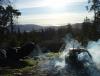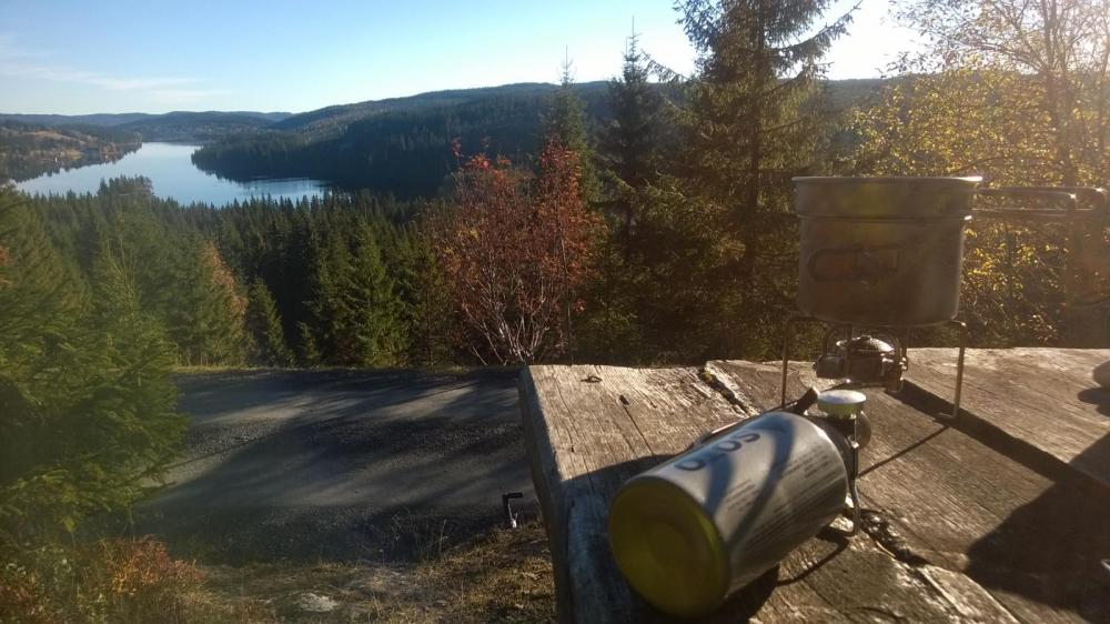 Jeg slenger meg på trenden med å dele turrapporter her på forumet. Gapahuk (Ringkollen) - 18.05.2013 Jeg starter med en liten spontan overnattingstur jeg kom hjem fra i går. Jeg var hjemme hos foreldrene mine for å feire 17. mai. Tilfeldigvis ble det nevnt at skiforeningen har satt opp en kjempeflott gapahuk på et utsiktspunkt i marka, noe som naturligvis trigget turlysten. Jeg fikk lånt litt utstyr her og der av familien da det meste av mitt eget ligger hjemme i Oslo. Reconpacken ble fylt til randen av "kjekt og ha luksus" og elghunden ble motvillig med. Da jeg kom opp svermet det med mygg, så jeg var kjapp til å fyre opp bålet - og borte ble myggen. Utsikten er ihvertfall ikke noe å klage over: Frokost og kaffe rakk jeg før jeg vendte hjemover med en dag mindre å lese til eksamen på