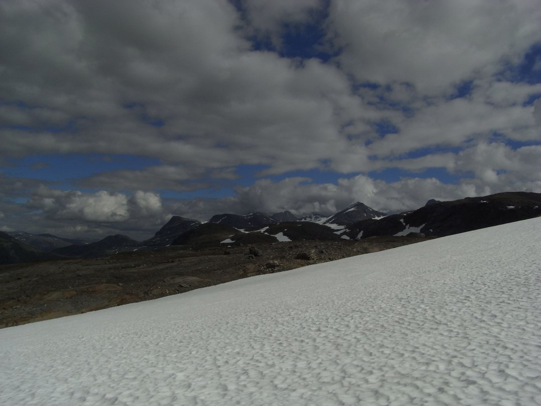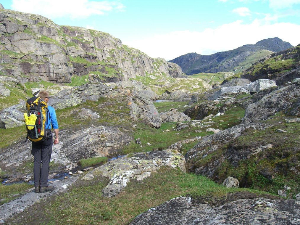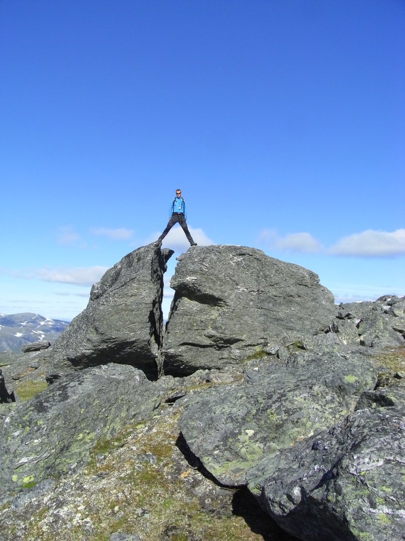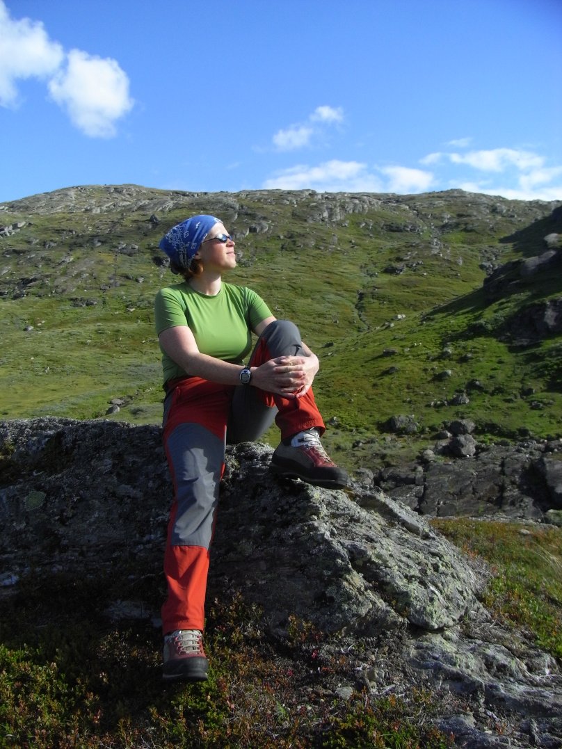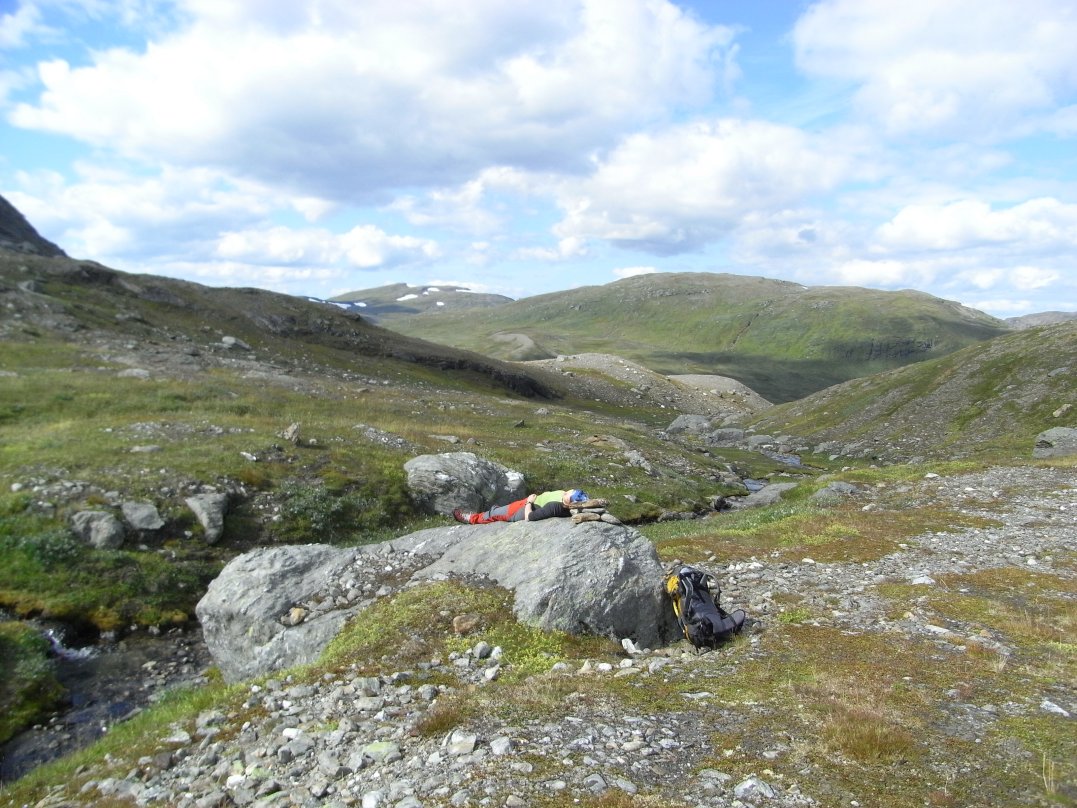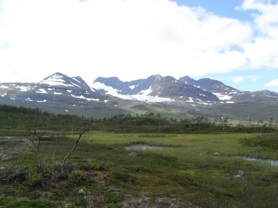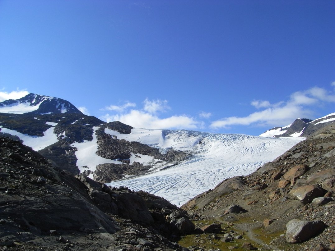 Det har vært vanskelig å få seg skikkelige fjellturer i Sør-Norge i sommer, så etter studier av værmeldingen fant Rødtopp og jeg det best å reise til fjellene i Nordland. Å bestige Nord-Norges høyeste fjell Oksskolten (1916 moh) fristet selvsagt også. Dag 1: Kjøretur Når man gjør slikt på sparket, så blir det lange kjøreturer. Vi startet tidlig på morgen og smurte niste, fylte drivstofftanken og feide nordover. Lunsj spiste vi på i Kvikne, middag i Namsskogan og etter nesten 90 mil fant vi overnatting i Mosjøen. Et overaskende hyggelig sted med koselig trehusbebyggelse i sentrum. Dag 2: Forsiktig start Vi spiste frokost uten å stresse med å komme i gang. Kjørte til Korgen og prøvde å få tak i kart. Det gikk ikke så bra, men vi regnet med at kartet på GPS'en fikk holde og at vi hadde nok batterier. Så kjørte vi inn Leirskardalen til Leirbotn hvor vi parkerte bilen. Dalen over til Kjensvatnet var frodig og grønn. Det var deilig å kunne strekke ut beina på tur igjen. Lunsj tok vi ved et stort sva ved ca 600 moh. Innerst i Leirbotnet var det ett spennde pass. Her traff vi også en enslig nordlenning på tur. Det var en vandreglad dame som testet løypa for Okstindan Fjellmaraton siden hun ikke hadde tid til å være med på selve maratonet. Naturen var vill, men terrenget lettgått, så etter ca 4 timer hadde vi unnagjort de 10 km fra bilen til Kjensvasshytta. Det går kjørevei til hytta, den har også strøm og innlagt vann. Til alt overmål var det også kjøleskap og fryser der. Rene luksusen, men som de fleste hyttene nordpå er den selvbetjent og maten må medbringes. Derfor ble det havregrøt, knekkebrød, rett i koppen og real turmat på oss. På hytta bodde det en tysk dame som hadde gjort nordlending av seg og en gjeng svenske brevandrere. Svenskene hadde vært på Oksskolten denne dagen, men hadde hatt tåke og generelt ufyselig på toppen. Dag 3: Oksskolten 1916 moh Solen lyste inn på soverommet om morgenen og ga ekstra piff. Dermed var det å hive i seg frokost og trekke seg selv opp til Austre Okstindbrean. Det går T-merket sti til brekanten, så det var enkelt å finne vei. Ved ca 835 moh var det en stor teltleir med svensker på brekurs. De var veldig opptatt og så knapt opp når vi passerte. Så var det på med stegjern og isøkser. Siden vi hadde fått rapporter om at det bare var blåis hadde vi lagt igjen bretauet ved bilen. Over breen gikk det fint og vi fulgte en snørenne opp til ca 1000 moh. Videre oppover var det mye berg i dagen som var lett å gå på opp til ca 1500 moh. Da ble det mye ur, men også denne var relativt grei å forsere. Det ble merkbart kaldere jo høyere vi kom opp og i skyggene lå det litt snø. Okstindan ligger for seg selv og på toppen av Oksskolten ga det virkelig følelesen av å stå på toppen av verden med utsikt til alle kanter. Selv om det var litt kaldt fant vi en lun grop oppe på toppen for å spise niste. Etter en stund ville ikke vinden gå med på at det skulle sitte folk så høyt oppe og fant veien ned i vår lune grop. Ned igjen gikk vi akkurat samme vei som vi hadde kommet opp og snørenna ble en artig sklibakke. I lia ned mot Austre Kjensvatnet var det mye molter. De smakte godt. Etter å ha blitt stekt av sola på vei nedover var det fristene å teste badetemperuren. Vannet var bedøvende kaldt, men det føltes veldig deilig etterpå å ha skylt av seg svetten. Dag 4: Spjeltfjelldalen Været var på vår side også denne dagen. Det var solskinn, godværsskyer og passe temperatur. Perfekt for en virkelig langtur. Målet var å gå helt til Steikvasselv langs Gressvatnet og ned Spjeltfjelldalen. Vi startet og gikk raskt på grusveien frem til demningen ved Gressvatnet. Riddaren og Gressfjellet danner en trang slukt hvor vinden fikk skikkelig fart over vannet. Stien virrer litt opp og ned langs vannet og det var litt trått å gå. Først når vi passerte reingjerdet ved Oksfjellhumpen ble det lettere å gå. Her ble det også fantasisk utsikt mot Okstindane som vi skulle se nesten hele resten av turen. Stien går litt utenom Gressvasshytta, men vi kunne skimte den mellom fjellbjørkeskogen. Da vi hadde rundet høyde 789 og gått litt inn mot Spjeltfjelldalen Naturreservat fant vi en solvarm bakke. Et perfekt lunsjsted. Videre gjennom naturreservatet var en langdryg tur i fantastiske omgivelser. Det var tungt å sige ned ryggen fra Artfjellet og slepe seg 2 km langs grusveien frem til Steikvasselv Gård (http://www.stekvasselv.com/). Der ble vi tatt godt imot av Kari og Håkon. Vi ble servert en fantstisk middag med røye fra Røssvatnet. Dag 5: Gråfjellet Håkon ga oss haik til Innerdalen dagen etter. Det var godt å korte litt ned på dagsettappen. Gårsdagens tur kjentes i beina. Været holdt seg fortsatt fint og turen opp til Gråfjellhytta var også flott. Turistforeningshytta på Gråfjellet er en av de fineste vi har vært innom. Angrer litt på at vi ikke planla å overnatta der. Vi spiste lunsj i solveggen før vi gikk videre mot bilen. Passerte brefallet på Vestisen. Oppe på kanten var det utsikt mot Oksskolten slik at vi kunne ta ett siste farvel med toppen før vi tippet ned i Leirbotn til bilen. Derfra ble det ned i lavlandet for litt hvile.