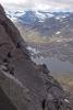 Anne Lise, Rødtopp og Langbein Rise på topptur. Turiver er en funksjon av diverse motivasjonsfaktorer: optimisme, utsiktspotensial, hvileperiode, dagsform, værmelding, rapportpotensial, bevegelsestid og vær, mm. Inkludert i rapportpotensialet er spektakulæriteten. Tåke har svært lav motivasjonsfaktor, men når optimisme og flere av de andre motivasjonsfakorene går mot uendelig blir det en bra tur allikevel. Det ble en slik tur til Olavsbu. Værmeldingen var lovende og håpet var at tåka skulle lette utover dagen når vi startet fra Eidsbugarden. Så når tåka så ut til å letne og sola kom fram mens vi spiste lunsj ved Lille Sjogholsvatnet var alt som det skulle være. Men været er ikke engang lenger hva det var, så da vi kom inn i Rauddalen la tåka seg klam og våt over landskapet. Vi sjekket inn på Olavsbu og skulte ut i tåka. I noen glipper i tåka skimtet vi Mjølkedalstind og optimismen var vekket igjen. Vi siktet på høyde 1807 innunder tinden og forserte høydemeterene raskt. Deretter opp på vestryggen inntil vi stanget i en bratt hammer. Problemet løste seg raskt da det var satt opp en masse småvarder og viste vei. Stien var også velbrukt, dermed gikk det lett å finne vei selv i tett tåke. Eggen ble smalere og luftigere jo nærmere toppen vi kom. Kombinert med at tåka gjorde steinene våte og sleipe ble det en svært spektakulær tur. På toppen sluddet det, men hva gjør man ikke for å slukke litt turiver. Ned igjen gikk vi i våre egne spor tilbake til Olavsbu. Turen tok 9 timer inkludert pauser fra Eidsbugarden. Det gjorde at selv pasta napoli med bogskinke smakte fortreffelig. Morgenen etter gikk skyene høyere og bare 2k m toppene skrapet oppi dem. I tillegg silregnet det. Hjemover måtte vi uansett, så etter å ha gjort unna morgenstellet trasket vi ut og tok Rauddalen østover mot Gjendebu. Da vi rundet innunder høyde 1586 stoppet regnet og skyene begynte å slå sprekker. Turen videre ble en kosetur blandt vakre tinder. Vi gikk av stien og siktet på vannet mellom Grøneberget og Høgdebrøtet. Ved sørenden av det var det flott å sette seg ned for å nyte lunsjen. Derfra gikk vi mot høyde 1415 og inn på stien langs Gravatjernet. Det gikk raskt ned og vi fant ut at tåka stanget i fjelltoppene langs nordsiden av Bygdin.