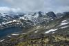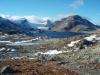 Ment som en liten statusrapport fra Midtre Jotunheimen. Etter en overnatting på Olavsbu, skulle standarveien herfra opp til Sjogholstinden prøves. Været var bra, men det lå tydelig en del snø i høyden. Jeg lar bildene tale denne gangen, bare legger til en ny og nyttig erfaring; å gå med staver var ubetinget positivt. Både hjalp det i motbakkene, ga balanse i ura og ved hopping over gjørmedammer og bekker, og var ikke minst kjempefine å ha når jeg vasset i snø på etterhvert noe smal egg. Kunne sondere underlaget med stavene. Til slutt: Ved returen avlaster stavene knærne enormt. Jeg brukte totalt 6,5 timer fra Olavsbu - til toppen av Sjogholstind - ned samme vei - Fondsbu, og var ikke særlig sliten i knærne, selv om leggene var kjørte. (Totalt 3x5 min pause, var ikke stort. Treningen det siste året har hjulpet enormt.)