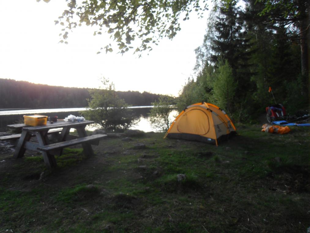 Her kommer en liten oppsummering fra min første telttur med poden på 5 år. Forsåvidt min første rapport her inn også. St. Hanskvelden kjørte vi inn til Skar i Maridalen med Øyungsvannet som mål. Poden fikk egen sekk med kosebamsen i, samt sykkel for at turen skulle bli litt lettere for hans del. Det er ca 2,5 km med flatt og motbakker inn til vannet, sykkelen gjorde de flate delene adskillig lettere. Sekken passerte 22 kg for kun en natt, men da var podens sovepose og liggeunderlag, samt mat og klær til oss begge med i min sekk. De første bakkene gikk med sukk og stønn fra poden, han var sliten og lei før 100 meter var passert. Pappa bar sykkelen litt, og så var alt bra igjen. Fint driv i motbakkene Vi fant oss en fin plass ved vannkanten, laget til med pasta og pølse til en sen middag. Poden sovnet rundt halv tolv etter eventyrstund fritt fra pappas hode (tok ikke med eventyr om store troll, da jeg merket at det ikke var stunden til det). Utover kvelden og natten kunne pappa kose seg med en fabelaktig kveldshimmel på Øyungen. Dagen etter bar det ned igjen til familien, og jeg var igjen glad for sykkelvalget på poden, fint driv nedover bakken gjorde at jeg kunne holde god fart. Poden var godt fornøyd med sin første telttur, Oppsummering for pappa: 1. Dette skal gjentas 2. Ta ikke med DS på tur, ungen blir alt for opptatt av å spille til at alt mulig annet er fristende 3. Det godt og vel 20 år gamle teltet fungerer fortsatt stårlende, men det bør impregneres før neste tur.
