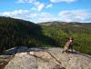 Etter å ha lest om Tjuvenborg (688) i «Kremen av topper» boka til Erik W. Thommessen samt lest navnet på flere siktskiver i Osloområdet måtte jeg bare dra dit. Lange veien fra Asker var det ikke, en drøy time tok det til Saksentjernsætra. Jeg kjente det i kroppen etter gårsdagens nattur til Styggedalstindane og Gjertvasstinden, men når været var så bra og utsiktene for uka er dårlig måtte det bli tur i dag og. Fra Saksentjernsætra jogget jeg lystig i vei opp veien og stien innover mot Flåbekksætra. Bikkja koste seg også i dette nydelige terrenget. Jeg merket at det var en stund siden jeg hadde jogget på ulendte stier siden jeg var nær å få noen stygge overtråkk. Så kom brattbakken opp sørsida til Tjuvenborg. Et lite «klyvepunkt» måtte forseres og bikkja fikk en håndsrekning her. Utsikten var helt fantastisk til alle kanter her oppe! I vest ruvet Gaustatoppen og Norefjell, sørover hadde du Drammensmarka og østover Hadelandsåsene. Nøt en skive med reker+majones (nam!) før jeg fortsatte opp til Hestebrenna (772). Bommet på stien fra Tjuvenborgkoia til Høgfjellet (1009), og var på vei nordover stien parallelt på vestsida. Bushet meg greit tilbake på rett spor. Mot Høgfjellet passerte jeg noen klukkende bekker og idylliske tjern man lett finner sjeleroen ved. Jeg merket at området ikke er hyppig besøkt siden stien delvis nesten var gjengrodd. Tok av stien litt for tidlig og nådde Høgfjellet via Gullknappen. Etter 2t 25min stod jeg på toppen av Oslos nærmeste snaufjell. Utsikten var upåklagelig i alle retninger, dette var et flott lite fjellmassiv jeg visste lite om fra før. Merket at energien begynte å forsvinne så jeg fikk dyttet i meg en skive og aprikosekake som ga meg krefter til returen. Svett og fornøyd nådde vi bilen etter 4 timer, 20 km og 950 høydemeter. Moro å utforske nye områder med topper som ikke har tilknytning til verken kommune- eller 2k-lister. -