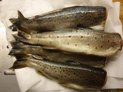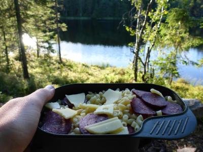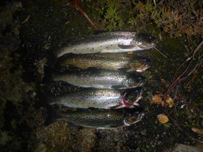 Fredag etter jobb bar det rett hjem for å hente ferdigpakket sekk. Transporten foregikk som vanlig i buss oppover i Maridalen. Tidenes vondeste teltplas To timers fiske første kvelden ga disse fiskene. Største 4 hg. Bra kvalitet. Frokost blanding med verdens beste tilbehør. Enkel middag Lørdag klarte jeg å lure en liten ørret på maur, den fikk friheten tilbake. Hjemveien tok sin tid. Oslomarka er fin!
