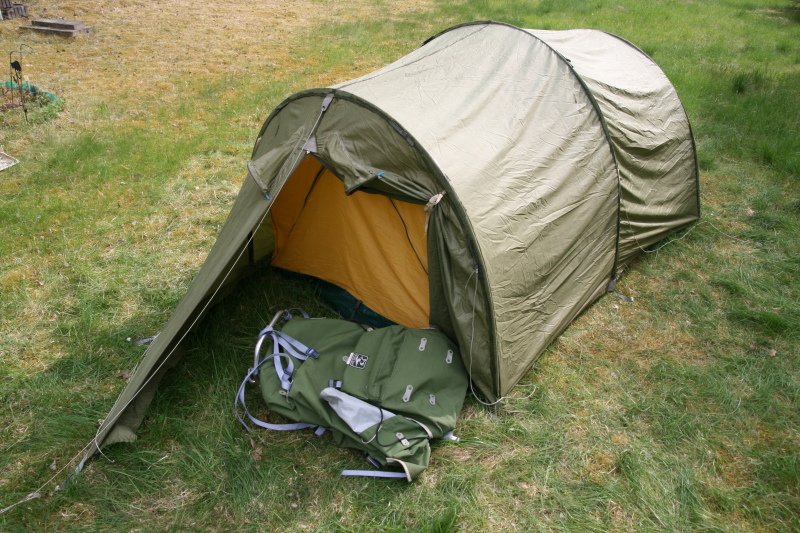 Jeg har satt opp teltet mitt i hagen for en gjennomgang før sommerens turer. Teltet er et Norrøna Ravneskar fra tidlig 70 tall - min ungdoms telt!