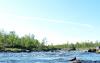 Legger ut bilder og et lite referat fra en tur med packraft ned Kirjasjåkka (Girjasjohka), Vuoktajåkka, Tertojåkka og Kaitumälven. Flere bilder kan finnes her: http://picasaweb.google.com/higesund/MedPackraftFraNikkaluoktaTilKaitum02# Jeg parkerte i Kaitum, tok toget til Kiruna og korresponderende buss til Nikkaluokta. Bussen var nesten full av folk, men alle satte kursen motsatt av meg, mot Kebnekaise og Kungsleden, og jeg så ikke et menneske igjen før et par kilometer fra Kaitum. Været var strålende, stort sett sol og temperaturer rundt 25 grader. De to første elvene er små, og faller i lange strekninger med sammenhengende stryk rundt 10 meter per kilometer. Jeg prøvde derfor å prikke inn vårflommen for å få nok vann i strykene. Etter snøforholdene i Tromsø og Narvik da jeg kjørte over til Sverige, fryktet jeg lenge at jeg var for tidlig ute, og regnet med at jeg måtte grynne i snø på de høyeste partiene (900 moh). Frykten viste seg å være grunnløs, vårløsningen var for lengst ferdig, og vannstanden i elvene var heller foruroligende lav. Det som jeg hadde håpet skulle bli frisk og utfordrende padling i rask elv, ble i stedet en roligere og intens jakt etter å finne de djupeste rennene mellom steinene slik at jeg slapp å gå ut av båten for å fløte. Dette er jo også en utfordring, og jeg følte etter hvert at jeg behersket teknikken som Roman Dial i boka ”Packrafting” betegner som ”Sjøstjerna” eller ”Tubing” til fulle. Denne går ut på å legge bein, albuer og rygg på luftkammeret slik at båten stikker minst mulig djupt, og så vifte litt med åra for å få litt framdrift. Opprinnelig hadde jeg tenkt å padle ned Kirjasjåkka til møtet med Vuoktajåkka, og så ta en gåtur oppover langs Vuoktajåkka og padle ned igjen. Pga den lave vannstanden, og etter hvert flere og flere turer ut av båten for å fløte, valgte jeg å avbryte padlingen i Kirjasjåkka halveis ned og bære over til Vuoktajåkka, som har litt mindre fall. Her slapp jeg unna fløtingen frem til de siste 3 kilometerene før sammenløpet med Kirjasjåkka, der jeg til sammen måtte fløte ca 1 kilometer. Etter sammenløpet mellom disse to elvene heter elva Tertojåkka. Herfra og helt ned til Kaitum var vannstanden høy nok til at padlingen ble slik jeg hadde sett for meg; fartsfyllt og artig. I Kaitumelva var det høy vannstand, og den steig mens jeg var der. Elva drenerer store og høytliggende områder vest for Kebnekaise, og varmen satte fart i snøsmeltinga. Partiet av Kaitumelva fra der Tertojåkka renner ut og ca 12 km oppover, er den delen som faller mest på strekningen fra Kaitumsjøene og ned til Kaitum. Her er det meste av elva klassifisert i klasse 2 og 3, et par stryk i klasse 4, og et par fosser i klasse 5 og 6. For å teste ut min nye packraft med spruttrekk, tok jeg en dagstur oppover denne strekningen, for så å padle ned. Båten svarte virkelig til forventningene. Jeg padlet hele strekningen untatt de to fossene og ett av klasse 4 strykene. Gjennomsnitthastigheten på elva var 8 km/t, toppfart var 15 km/t. Den siste dagen padlet jeg på den store Kaitumälven ned til Kaitum, i alt 32 km. Snittfart var 4,5 km i timen inkludert mange fiskepauser og en god matpause. Da jeg kom fram til Kaitum, følte jeg at jeg gjerne kunne ha fortsatt nye 32 km. Med andre ord en ideell dag med packrafting. Bæringen fra Paittasjärvi til Kirjasjåkka var på 9 km med 400 meters stigning. Fra Kirjasjåkka til Vuoktasjåkka bar jeg ca 4 km. Bæring ellers var noen få meter forbi et lite drop i Vuoktasjåkka, 200 m forbi et stryk et par km før Tertojåkka renner ut i Kaitumälven og de siste 500 m Tertojåkka. Jeg valgte også å bære første 2/3 av Pattokuoika, et av to klasse 3 stryk mellom Tertojåkka og Kaitum, delvis fordi det er et langt stryk på nesten 2 km, slik at et uhell ville kunne resultere i en lang svømmetur, og delvis for å fiske. I tillegg kom bæringen på dagsturen opp Kaitumelven. Jeg fikk mer en nok fisk til mat. Det meste av Tertojåkka er kvotert; dvs at bare et begrenset antall fiskekort selges pr år etter søknad og loddtrekning. Også Kaitumälven fra Lietek og til utløpet av Tertojåkka er kvotert. Her fisket jeg i sideelvene med godt resultat. Et variant av denne turen er å gå forbi Kirjasjåkka og til Tjuonajåkk, evt. å gå og padle via Seidejavri, Gorijavri og Tjuoltajaure til Voulep Kaitumjaure, og padle ned Kaitumelva herfra. Harald