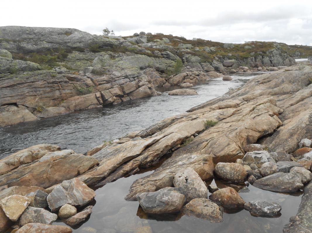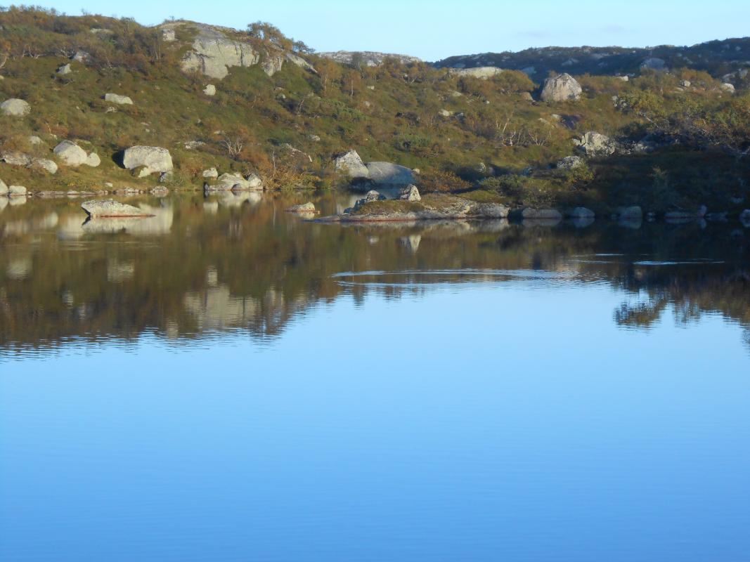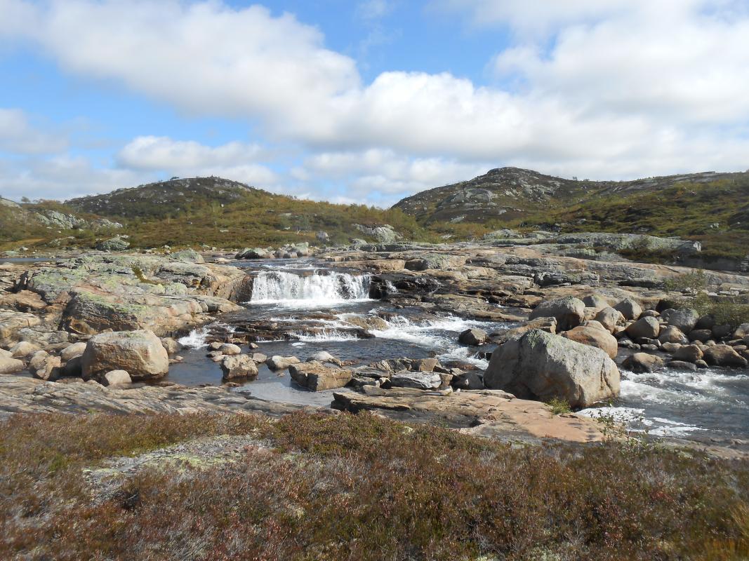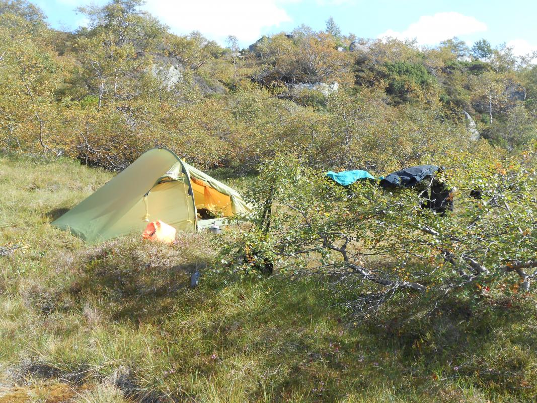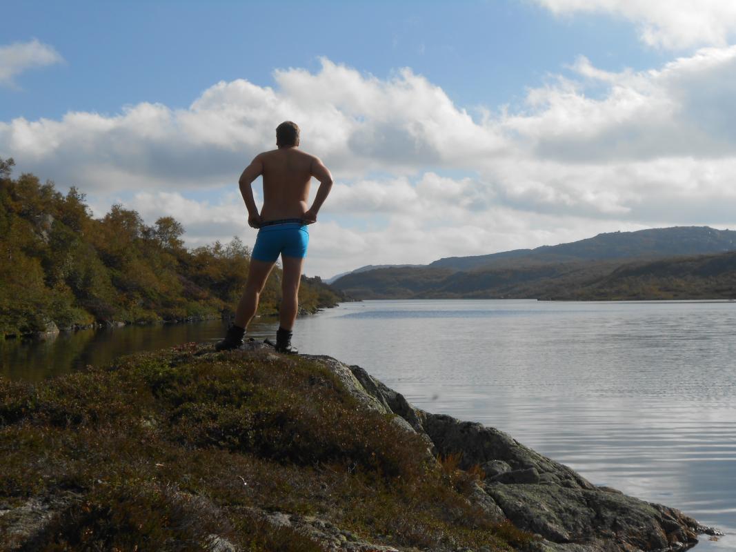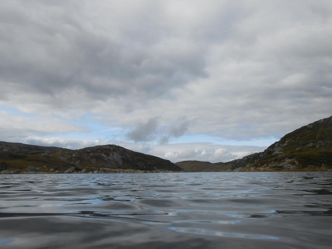 Meg og packraften min på tur.. Så var det endelig tid for alenetur. Klarsignal for avreise gitt fra mandag ettermiddag. Værmeldinga sier at jeg nok får regn iallefall den første kvelden og gjerne litt neste dag og, men så klarner det opp til å blir bare overskyet. Helt perfekt! Målet for turen har vært klart lenge nå. Jeg vil finne ut om det er mulig å padle øvre delene av Kvina eller Kvine. Start er satt til Håhellervatn. Via Rågeloni til Øyarvatn og deretter bare følga Kvina nedover til Kvifjorden. Derfra gå til Gaukhei og padle nordover mot Håhellervatn igjen, via Søra- og nordra Monsvatnet, Sandvatnet og Øyuvsvatnet. Underveis skal det selvsagt fiskes, og troa på at premiefisken biter er STOR! Klokka er blitt 18.00 innen båten er rigga og pakka å jeg vinker farvel til bilen. Parkerte på rasteplassen ved Håhellervann. Det er ganske surt og litt regn i lufta i det jeg legger utpå. Padler ganske hardt for å holde varmen, og for å i det hele tatt komme noen vei i motvinden. En sluk henges på slep i god tro. Der blir den hengende ganske så ifred! Gjør ikke lange etappen ut av dagen, og i sydenden av Håhellervatn finner jeg en fin plass å slå leir for natta. Prøver noen kast på kvelden fra land og men overaskende lite aktivitet. Sovna tidlig etter litt kveldsmat. Natta var ganske kald. Kan vel skylde på en godt brukt Helsport Alta LT og et skumplast underlag bare. Våkna grytidlig morgenen etter til tjukk tåke og lettere regn inne i teltet. Ble en slapp morgen med mye kaffe. Men etterhvert letta tåka til en fin dag. Fra Håhellervatn måtte jeg bære båten ned til Rågeloni. Det var ikke så lange stykket. Her padler man forbi flotte sandstrender og flotte innos. Angret nesten litt på at jeg ikke telta her om natta. Her var det og tid for første fisk på kroken. En liten ørret som måtte hatt selskap av mange flere for å fylle ei steikepanne. Det vaka tett og fisken tok villig på flue og. Alle jeg fikk svømte videre. Måtte bære forbi et lite stryk under ei hengebro mellom Rågeloni og Øyarvatnet. Her stod sauene å kikka dumt på meg. Skjønner ikke hvorfor? Sydover i Øyarvatnet gikk det trått. Motvind og plaskebølger. Gjorde vel og 10 bytter på hva jeg hadde i enden av snøret bak båten, for det var ikke antydning til liv her heller. I sydenden av vannet ventet en litt lenger bæring til nedsiden av demmningen. Det ble med et roligere i været når jeg kom ned i "elva" og etter ei lite stund kom sola og ut en liten tur. Det gikk ikke fort nedover resten av dagen heller, det var så fint at jeg ofte bare lå å dreiv å kikka meg rundt. Et par småbæringer til ble det og før jeg fant en fin plass i Kotådalen å bosette meg for kvelden. Morgenen etter våkna jeg til strålende SOL! Dette blir en HERLIG dag! Videre nedover måtte det en del bæring til, forbi fosser og små demmninger. Men og lange loner og vann som kunne padles. Her fant jeg og noen små stryk som kunne padles, MEGET morro for en komplett amatør. Fikk testa om packraft er så solid som det sies. Og jeg tror på det iallefall. Ble over mange stein, istedet for rundt dem. Laga en liten video med GoPro som kan ses her: https://www.youtube.com/watch?v=v6nkO50apgo Nede ved Langlona ble det igjen stillevann å padle. Her var det uhorvelige mengder meget bitevillig fisk. Ok størrelse, men desverre tynn og mager fisk. Tydeligvis overbefolket. Her tok jeg og en avgjørelse på å gjøre om på ruta mi litt. Har ikke tro på at stort mer av elva er padlbar, å velger derfor å pakke ned båt å traske østover. Målet for dagen ble dermed Skrubbhusvannet. I kulpene oppover var det plenty av fisk, og jeg fikk samla meg nok til å få ei god fiskesuppe. I fiskerus gikk tida fort og jg måtte plutselig innse at jeg måtte finne teltplass i mørket. Det var ikke i overflod av egnede plasser, så teltet ble satt på den tørreste delen av ei myr Men det var nå iallefall mykt . Morgenen etter var det igjen strålende vær og mulighet for tørking av litt utstyr og klær Båten ble blåst opp på nytt for å padle lengden av Skrubbhusvannet med sluk på slep. Atter en gang resultatløst fiske. Skylder selvfølgelig på forholdene, tilnærmet vindstille og sol er vel ikke optimalt. I enden av vannet ble båten pakket ned i sekken igjen for å "klatre" over Dansarfjellet og komme meg ned til Søra Monsvatnet. Herfra skulle jeg etter min tro kunne padle helt opp til nordre enden av Nordra Monsvatnet. Nå hadde det og blitt en liten trekk som gav meg medvind hele veien. På toppen av Dansarfjellet. Båten rigges igjen ved Søra Monsvatnet Padlinga over Monsvatna gikk som ei kule. Måtte bære opp et lite stryk mellom de bare, ellers klarte jeg å padle resten i motstrøm. Dagen ble avsluttet med en bæring opp til Sandvatn hvor jeg slo leir i herlig kveldsol. Neste morgen ble det kjapp nedpakking av leir. Litt fiske mens jeg padla over Sandvatnet, selvfølgelig resultatløst. Bæring opp til Øyuvsvatnet. padla kjapt inn i vestenden hvor det vokste helt enorme mengder fine store blåbær. Tok meg en liten time med rumpa i været å plukka meg et lite kilo. Fint å ha til pannekaker første morgenen hjemme igjen. Deretter bar jeg båten ned til Håhellervatnet og la ut på siste lille padleturen tilbake til bilen. Ganske nøyaktig 4 døgn på tur. Helt utrolig fornøyd med packraften og turen i det hele P.S Første turrapporten min...